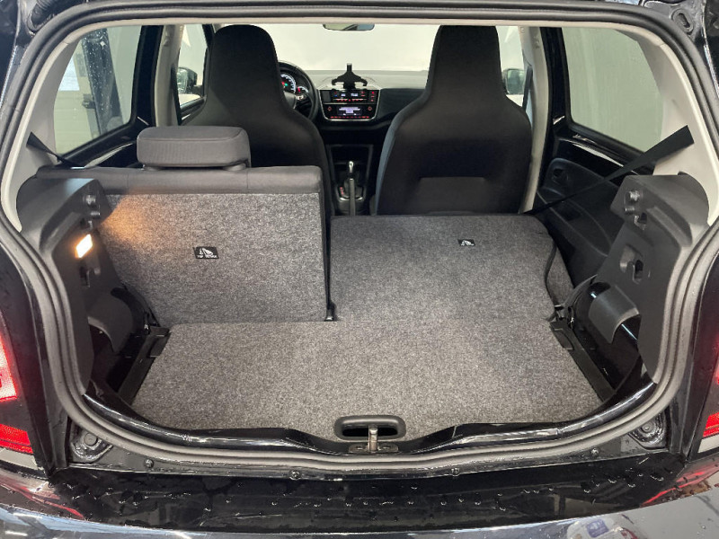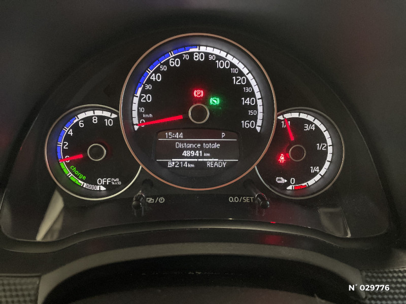 Logo "e-Up !" sur les portes AV et la malle AR / Prise de recharge compatible AC (type 2) / DC (CCS : Combined Charging System) / Banquette 2 places AR monobloc / Vitres électriques AV (entrebâillantes AR) / Eclairage du coffre à bagages / Boitiers de rétroviseurs extérieurs et poignées de portes dans la couleur carrosserie / Plafonnier à temporisation à l'AV avec contacteur de portière / Caméra de recul avec visualisation de la zone située à l'AR du véhicule sur l'écran de la radionavigation / Carte de recharge Volkswagen e-Pass avec 1 an d?abonnement et 50 de crédit offerts / Cache-bagages / Reconnaissance de l?écriture manuscrite / coaching de conduite "Think Blue Trainer" / Appus-tête (2) et ceintures de sécuritéà 3 points (2) sur la banquette AR / Appuis-tête intégrés dans les dossiers à l' AV / Feux de circulation de jour à LED en "C" (inactifs lorsque les feux du véhicule sont activés) / Troisième Feu stop blanc surélevé / Baguette AV bleue entre les projecteurs / Pare-chocs peint dans la couleur de la carrosserie / Phares halogène et feux de jour à LED / Essuie-glace AV avec commande d' intermitence et lave-glace / Volant cuir multifonctions 3 branches réglable en hauteur / Radio "Composition Phone" avec port USB / Smartphone intégration / 2 haut-parleurs / Disques de frein ventilés à l'AV / 4 jantes en alliage léger "Blade" 5J x 15" pneus 165/65 R15 / Double Airbag frontal a l'AV - Possibilité de désactiver l'Airbag passager AV / Planche de bord spécifique "Black Cube" / Pack Chrome Intérieur / Kit de dépannage en cas de crevaison (compresseur 12V et produit d'étanchéité de pneu) / Sellerie en tissu "Fushion" / Câble de recharge (8A) pour prise de courant domestique (1,8 kW) (mode 2, type 2) / Système de récupération de l'énergie en décélération (5 modes de récupétion et 3 profils de conduite "normal/eco/eco+"), pneumatiques à faible résistance au roulement / Générateur de son e-sound non désactivable / Signal d'avertissement acoustique et optique pour ceinture de sécurité conducteur non attachée AV/AR / Câble de recharge (32A) pour borne domestique ?wallbox? ou borne publique compatible (7,4kW) (mode 3, type 2) / Double plancher de coffre à bagages, amovible / Poignées de portes extérieures noires / Pommeau de levier de vitesse cuir / Affichage multifonctions Plus / Clignotants latéraux intégrés dans les rétroviseurs extérieurs / Antenne AR de pavillon / Clignotants confort (1 impulsion = 3 clignotements) / Tapis de sol AV et AR / Allumage automatique des feux avec fonctions "Coming Home - Leaving Home" / 2 accroche-sacs dans le coffre / Plancher de coffre à bagages / Park Pilot, aide au stationnement AR avec signaux d?avertissement acoustiques en cas d?obstacles / Avertisseur sonore / Double airbag latéral et de tête à l'AV et Airbag de tête AR / Poignée de frein à main en cuir / Application Volkswagen "Maps+More" / Préparation pour "e-Remote" durée 1 an / Outillage de bord / Bacs de rangement dans les portes avec porte-boisson pour bouteilles de 1 Litre à l'AV / Dossier de banquette AR asymétrique et rabattable 60/40 / Console centrale avec 1 porte-boissons à l'AV et 1 à l'AR / Correcteur électronique de trajectoire ESP, amplificateur de freinage d'urgence, système d'antiblocage de roues ABS, antipatinage électronique ASR, régulateur électronique de couple MSR et aide au démarrage en côte "Hill Hold" / Direction assistée électromécanique asservie à la vitesse / Oeillets d'arrimage ISOFIX (dispositif pour fixation de 2 sièges-enfants sur la banquette AR)