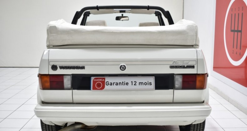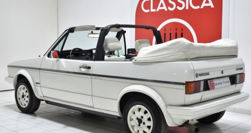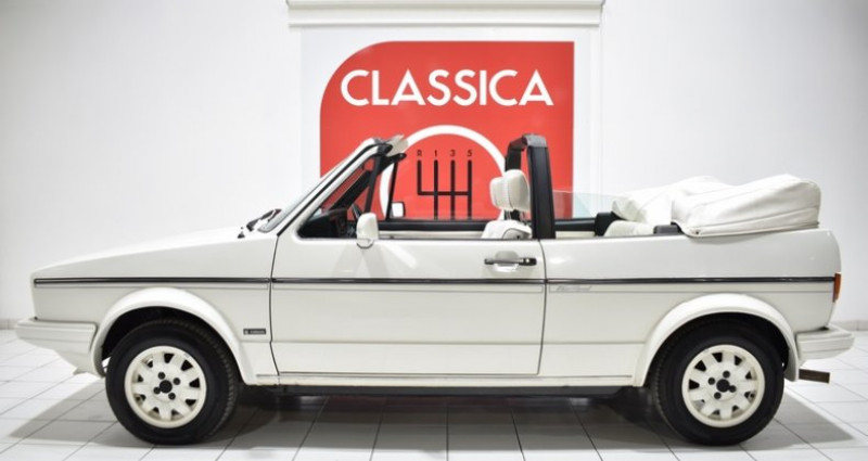 CONDUITE : à gauche CARTE GRISE : Collection NB PLACES : 4 NB CYL. : 4 en ligne PNEUMATIQUES : Usure Av 10% + Ar 10% * GARANTIE 12 MOIS incluse * REPRISES et LIVRAISON possibles * Frais de mise à la route en sus : 690 € TTC (1/4 de carburant, passage contrôle technique, préparation intérieure et extérieure) * Service « carte grise » et « carte grise collection » (dossier FFVE inclus) Golf Cabriolet (1979-1993) 16.249 ex. produits Origine Suisse Série limitée « White spécial » à 734 exemplaires Carnet d'origine Notice d'utilisateur d'origine Double des clefs Matching colors extérieur « Alpin Weiss L90E » Matching colors intérieur « Weiss » Dossier factures depuis 2018 (total :3.629 EUR.) Kit distribution remplacé en 2025 (Facture disponible) 4 amortisseurs BILSTEIN 4 pneumatiques HANKOOK 4 jantes aluminium d'origine en 14'' coloris « Weiss » Capote manuelle en simili cuir coloris « Weiss » Couvre capote en simili cuir coloris « Weiss » Coupe-vent Rétroviseurs réglages manuels Sellerie en tissu / simili cuir coloris « Weiss » Contre portes en tissu / moquettes coloris « Weiss » Casquette de bord coloris « Schwarz » Instrumentation de bord d'origine Autoradio CD ALPINE Volant VOLSKWAGEN 4 branches d'origine coloris « Schwarz » Pommeau de levier de vitesse en simili cuir coloris « Schwarz » Moquettes coloris « Schwarz » Sur tapis coloris « Schwarz » passepoil « Weiss » Extincteur Roue de secours d'origine Manivelle Cric Historique du modèle : Née en 1974 sous les traits de crayon du designer Italien Gorgietto Giugiaro, la Golf se voit confier la mission quasi impossible de remplacer le modèle phare et fondateur de Volkswagen: la coccinelle le tout en pleine crise pétrolière. Initialement commercialisée en version berline 3 et 5 portes, la Golf 1 sera déclinée en cabriolet à partir de 1979 en proposant les motorisations les plus puissantes disponibles à l'époque et terminera sa carrière avec l'injection de sa mythique cousine la GTI. Surnommée par ses concepteurs ?le panier de fraises? à cause de son arceau fixe, la Golf Cabriolet Mk1 poursuivra sa carrière jusqu'en 1994, soit près de 15 ans. Fabriquée sous licence VW chez Karmann, la Golf Mk1 Cabriolet ne connaîtra que très peu d'évolutions esthétiques, la plus marquante étant l'abandon des pare chocs chromés au profit de boucliers enveloppants plus modernes à partir de 1987. Carrosserie / Extérieur : Le modèle présenté ici est une GOLF Cabriolet Mk1 GLI de Juin 1985 dans son coloris « Alpin Weiss L90E» d'origine (matching colors). La peinture est en très bon état, affichant une teinte uniforme ainsi qu'une excellente brillance. Après un lustrage pro réalisé à l'orbitale par notre atelier, nous avons noté la présence d'un petit coup sur l'aile avant gauche et sur l'aile arrière droite ainsi que sur la malle de coffre. Les pare chocs sont parfaitement positionnés et en excellent état, sans trace de déformation ni fissure. La capote en simili cuir coloris « Weiss » est en excellent état. Cette dernière fonctionne parfaitement et son étanchéité reste conforme aux normes de l'époque. La lunette arrière est en bon état. Cet exemplaire dispose de son couvre capote coloris «Weiss » en excellent état. Les 4 jantes aluminium d'origine en 14'' coloris « Weiss » sont en très bon état, sans coups ni déformations. Nous avons noté quelques petites griffures et traces de frottements usuelles sur les déports extérieurs. Cet exemplaire dispose d'un coupe-vent, celui-ci augmente nettement le confort de conduite capote ouverte. L'ensemble est monté en pneumatiques HANKOOK affichant une usure de 10% à l'avant et de 10% à l'arrière. Cet exemplaire a conservé son cric, sa manivelle et sa roue de secours. Parmi les équipements et options carrosseries intéressantes dont cet exemplaire est doté, nous avons relevé : Les 4 jantes aluminium d'origine en 14'' coloris « Weiss », le couvre capote coloris « Weiss » et le coupe vent. Habitacle : L'intérieur a conservé sa stricte configuration d'origine et apparaît en très bel état de présentation. La sellerie en tissu /simili cuir coloris « Weiss » est en excellent état. Les sièges avant ont été refaits à neuf conformément à l'origine il y a quelques années. Les contre portes assorties sont en très bon état d'origine. Le tableau de bord est en excellent état et ne présentent aucune fissure ni décoloration. L'ensemble de l'instrumentation de bord ainsi que l'horloge sont parfaitement fonctionnels. Le volant d'origine 4 branches ainsi que le pommeau du levier de vitesse sont en bon état. Les moquettes coloris « Schwarz » sont en parfait état. L'ensemble est protégé par des sur-tapis « Schwarz » passepoil « Weiss » sur mesure. Cet exemplaire est également équipé d'un autoradio cd ALPINE parfaitement fonctionnel. Parmi les équipements et options Habitacle dont cet exemplaire est doté, nous avons relevé : La sellerie en tissu / simili cuir coloris « Weiss » et l'autoradio cd ALPINE. Châssis : La mise sur le pont confirme une caisse saine sans trace de corrosion structurelle apparente. Les fondamentaux: planchers, longerons, bas de caisse, et passages de roues sont en excellent état. Réserve d'usage: par principe nous ne pouvons garantir la perfection des alignements au delà de leur bon état visuel et fonctionnel, validés par notre atelier lors de l'essai sur route et de la mise sur le pont. Lors de l'essai dynamique, nous n'avons relevé aucun bruit parasite anormal au niveau de la caisse ou des trains roulants (rotules, silentblocs...). La tenue de route est améliorée par le montage de 4 amortisseurs BILSTEIN. Le freinage est équilibré, stable et mordant, sans vibrations ni bruits anormaux. Les disques de frein avant affichent une usure inférieure à 20% et leurs plaquettes une usure inférieure à 20%. Les tambours arrière sont parfaitement fonctionnels 