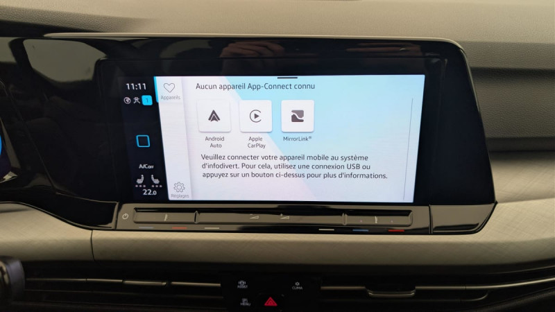Climatiseur "Air Care Climatronic" 1 zone / Fatigue Detection : système de détection de fatigue du conducteur qui analyse le comportement du conducteur et recommande un temps de repos par l'apparition d'un message visuel et sonore / Prise 12 V dans le coffre / Système Start/Stop avec récupération d'énergie au freinage / Oeillets d'arrimage ISOFIX (dispositif pour fixation de 2 sièges-enfants sur la banquette AR) / Rétroviseur intérieur à réglage jour/nuit automatique / Projecteurs AV à LED avec feux de jour à LED / Lane Assist: Assistant de maintien dans la voie / Essuie-glace AR intermittent avec lave-glace / App-Connect sans fil, affichage et contrôle via l'écran tactile de la voiture du contenu, des fonctions et des applications compatibles présents sur le Smartphone (compatibilité avec les systèmes Apple CarPlay et Android Auto). Fonction sans fil uniquement disponible avec Apple CarPlay / Frein de stationnement électromécanique avec fonction d'immobilisation en pente "Auto Hold" et assistant de démarrage en côte / Régulateur de vitesse adaptatif et prédictif ACC avec limiteur de vitesse / Front Asisst avec détecteur des piétons / Sellerie en tissu "Maze" / Airbags de tête pour passagers AV/AR / Jantes alliage léger "Norfolk" 7Jx16" avec pneumatiques 205/55 R16 / Rangement et prise 12 V à l'AV / 2 interfaces USB-C à l'AV et 2 prises de chargement USB-C derrière laccoudoir pour les passagers AR / Appuis lombaires réglables à l'AV / Contrôle vocal intuitif / Eclairage d'ambiance - 10 couleurs / Système Navigation & Infotainment "Discover Media" / Digital Cockpit Pro : combiné d'instruments digital avec écran digital haute résolution de 10.25" / Allumage automatique des feux avec fonctions "Coming Home - Leaving Home" / Rampes de pavillon noires /