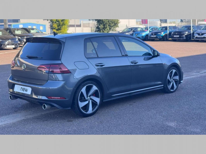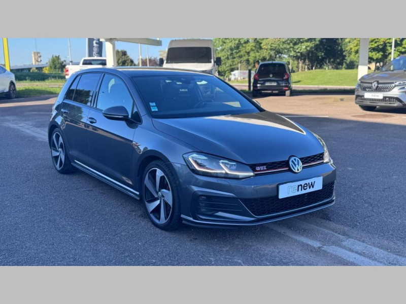 2 spots de lecture AV et 2 spots AR / Cache-bagages amovible / Essuie-glace AR intermittent avec lave-glace / Boîte à gants réfrigérée / Ceintures de sécurité AV 3 points à enrouleur réglables en hauteur avec prétensionneurs / Vitres athermiques teintées vertes / Tapis de sol AV et AR / Miroir de courtoisie éclairé sur les pare-soleil / Verrouillage centralisé avec télécommande à fréquence radio par clé rétractable / Compartiment de rangement au centre des 2 sièges / Catadioptre dans la partie inférieure des portières / ATTENTION - Equipements en cours de saisie / Cerclage chromé des instruments de bord et des aérateurs / Filtre anti pollen à charbon actif / dégivrants et asphérique côté conducteur / Boutons de lève-glace et de réglage de rétroviseurs avec filet chromé / blocage électronique de différentiel EDS / régulateur électronique de couple MSR et assistance au contrebraquage / Fatigue Détection système de détection de fatigue du conducteur / Vitres AR et lunette AR surteintées à 65% / Console de pavillon avec 1 compartiment de rangement fermé / Appuis-tête à sécurité optimisée réglables en hauteur sur les sièges conducteur et passager AV / Eclairage diurne à LED / Antenne AR de toit intégrée / Peinture unie Blanc Pur / Kit de dépannage : compresseur 12V et produit d'étanchéité de pneu / XDS : Système agissant comme un différentiel autobloquant électronique permettant une meilleure motricité en courbe grâce à une répartition optimale de la puissance et du couple sur les roues AV / Volant 3 branches en cuir et pommeau de levier de vitesses cuir / Poignées de portes et rétroviseurs extérieurs dans la teinte de la carrosserie / Aumônières au dos des sièges conducteur et passager AV / Banquette AR rabattable 2/3-1/3 avec accoudoir central et trappe à skis / Boutons d'allumage des phares avec filet chromé / Prise 12V dans le coffre / Rétroviseur extérieur côté passager avec mémoire / Compartiment de rangement dans le coffre / Keyless Access: Système de verrouillage/déverrouillage sans clé et démarrage avec bouton start/stop / Accoudoir central AV avec compartiment de rangement / 2 porte-gobelets intégrés et 2 bouches d'aération derrière l'accoudoir pour les passagers AR / Etriers de frein rouge à l'AV et à l'AR / Jantes en alliage léger Brooklyn 7Jx17 et pneumatiques 225/45 R17 avec écrous antivol et châssis sport / Logo GTIécrit en blanc sur les étriers de frein rouge à l'AV / Pare-chocs AV et AR spécifiques GTI / Surpiqûres rouge sur le cuir du volant et sur le soufflet du levier de vitesse / Porte-boissons à l'AR escamotables / Pre Safe Assist - Système proactif de protection des passagers / Eclairage à LED de la plaque / Oeillets d'arrimage ISOFIX / Système de freinage anti multicollision : ce dispositif freine automatiquement le véhicule après un premier choc afin de limiter le risque de multicollision / Frein de stationnement électromécanique avec fonction d'immobilisation en pente Auto Hold Le véhicule se maintien automatiquement en pente et une simple action qur l'accélérateur suffit à désactiver le frein / Système Start/Stop automatique et dispositif de récupération de l'énergie de freinage / Ciel de pavillon Noir / Sorties d'echappements chromées à droite et à gauche / Eclairage d'ambiance rouge dans les portières AV / Active Info Display : combiné d'instruments entièrement digital haute résolution couleur / Disques de frein 17à l'AV et à l'AR / Disques de frein ventilés à l'AR / Caméra de recul avec visualisation de la zone située à l'AR du véhicule sur l'écran de la radio ou de la radionavigation / Protection antidémarrage / Ordinateur de bord couleur avec affichage multifonction / Abonnement aux Services Mobiles en ligne Car-Net Guide & Inform 36 mois pour Discover Media / Sélection du profil de conduite / Pédales et repose-pied en acier inoxydable brossé / Prise USB compatible Apple / Système Navigation & Infotainment Discover Media / Climatisation automatique Climatronic bi-zone avec filtre anti-allergène / réglable séparément pour conducteur et passager AV / Pack Visibilité / Aide au stationnement AV/AR avec signaux sonores et visualisation de la distance des obstacles sur l'écran / incluant fonction mémoire pour le rétroviseur extérieur droit / Appuis-tête AR à 3 points d'ancrage / Interface téléphone Bluetooth / Feux AR sombres à LED avec clignotants défilants / Applications décoratives Piano noir laqué pour tableau de bord du côté conducteur ainsi que pour console centrale / Applications décoratives Honeycombed Black pour tableau de bord du côté passager AV ainsi que pour revêtement de portes / Avertisseur sonore 2 tons et témoin de non bouclage des ceintures de sécurité / Car-Net App-Connect En combinaison avec Discover Media / Système Front Assist avec fonction de secours en ville et détection des piétons / Volkswagen Media Control / Front Assist avec detecteur de piétons système de freinage automatique en cas de détection d?obstacle / Seuils de porte AV éclairés GTI / Sellerie spécifique tissu Clark / Blocage de différentiel d?essieu AV VAQ / Liseré rouge dans la calandre et les phares / Volant Sport cuir multifonction avec applications aluminium / Car-Net Security & Service 36 mois / Rétroviseur extérieur côté conducteur avec mémoire / Projecteurs AV à LED avec feux de jour à LED / App-Connect En combinaison avec Discover Media