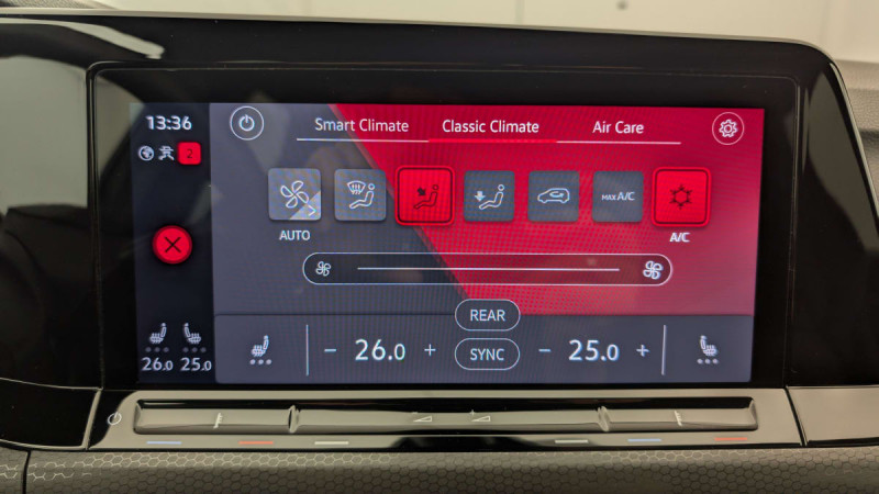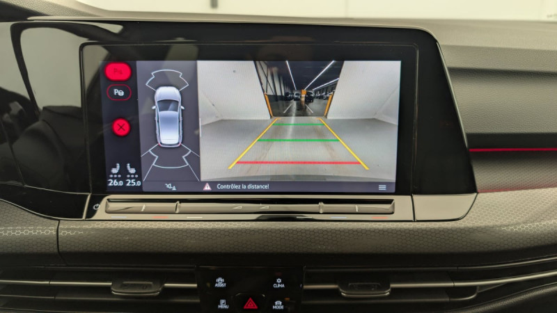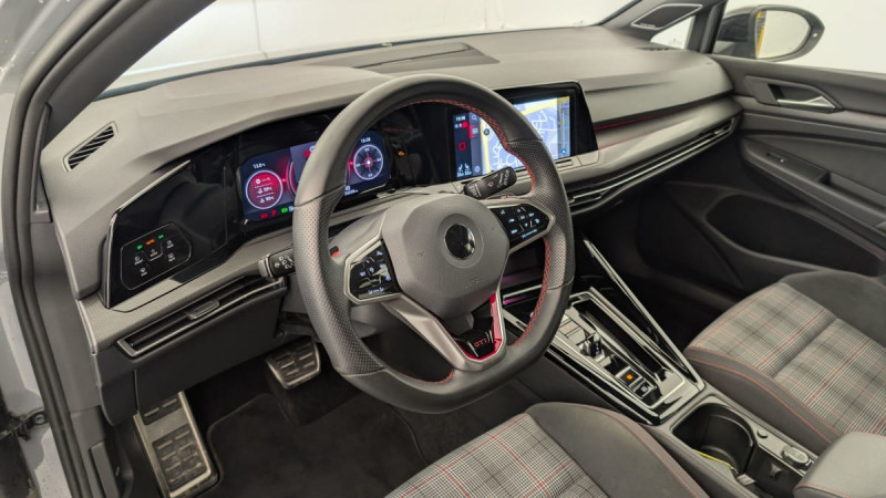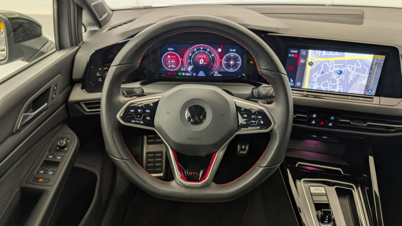Fatigue Detection : système de détection de fatigue du conducteur qui analyse le comportement du conducteur et recommande un temps de repos par l'apparition d'un message visuel et sonore / Prise 12 V dans le coffre / Etriers de frein rouge à l'AV et à l'AR / Système Start/Stop avec récupération d'énergie au freinage / Oeillets d'arrimage ISOFIX (dispositif pour fixation de 2 sièges-enfants sur la banquette AR) / Pédalier et repose-pied en acier inoxydable brossé / Sélection du profil de conduite / Rétroviseur intérieur à réglage jour/nuit automatique / Lane Assist: Assistant de maintien dans la voie / App-Connect sans fil, affichage et contrôle via l'écran tactile de la voiture du contenu, des fonctions et des applications compatibles présents sur le Smartphone (compatibilité avec les systèmes Apple CarPlay et Android Auto). Fonction sans fil uniquement disponible avec Apple CarPlay / Frein de stationnement électromécanique avec fonction d'immobilisation en pente "Auto Hold" et assistant de démarrage en côte / Feux AR à LED avec clignotants AR défilants / Régulateur de vitesse adaptatif et prédictif ACC avec limiteur de vitesse / Front Asisst avec détecteur des piétons / Airbags de tête pour passagers AV/AR / Rangement et prise 12 V à l'AV / Climatiseur "Air Care Climatronic" 3 zones et filtre anti-allergène et éléments de commandes à l'AR / Park Assist: Système d'assistance au stationnement en créneauet et en bataille / Airbags frontaux AV conducteur et passager (Airbag passager désactivable) / Eclairage d'ambiance 30 couleurs / 2 interfaces USB-C à l'AV / Baguette lumineuse entre les projecteurs / Ciel de pavillon Noir Soul / Sièges AV sports specifique GTI, appui-tetes intégrés, appuis lombaires AV / Digital Cockpit Pro : combiné d'instruments digital avec écran digital haute résolution de 10,25" / Volant sport multifonction en cuir spécifiqque "GTI" palettes au volant, commades tactiles et retour haptique / 2 prises de chargement USB-C derrière l'accoudoir pour les passagers AR / Projecteurs IQ.Light, Matrix LED / Assistant de conduite "Travel Assist" avec "Emergency Assist" / Pack Visibilité : Allumage automatique des feux avec fonctions "Coming Home - Leaving Home" Capteur de pluie avec essuie-glace automatique / Système de Navigation & Infotainment "Discover Media" avec écran tactile 10" / Rétroviseurs extérieurs à réglage, rabattement et dégivrage électriques, avec fonction mémoire /