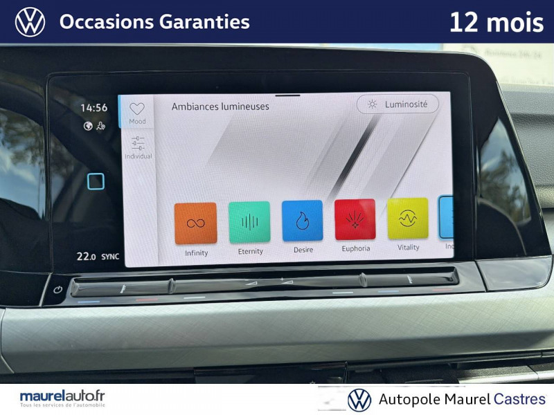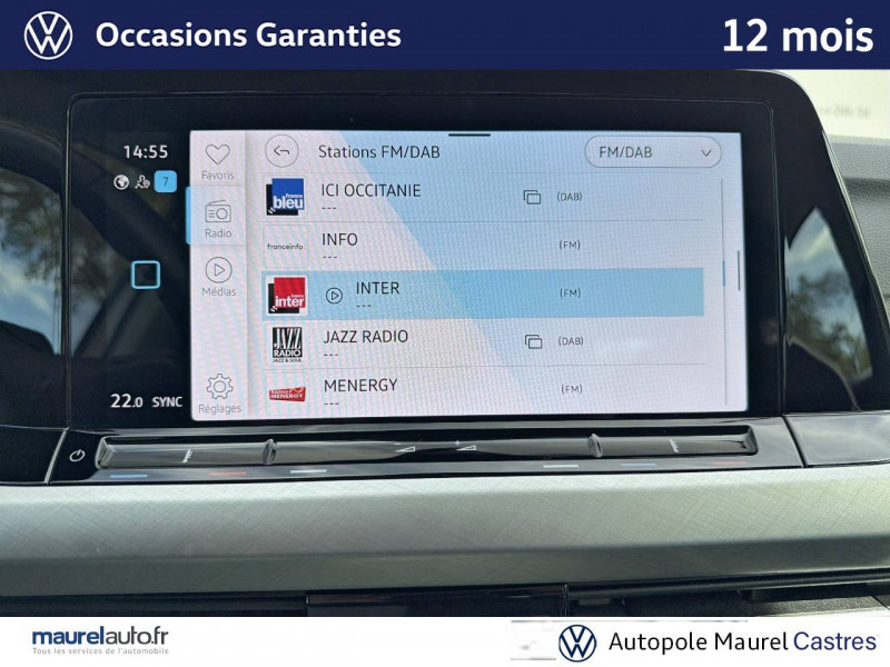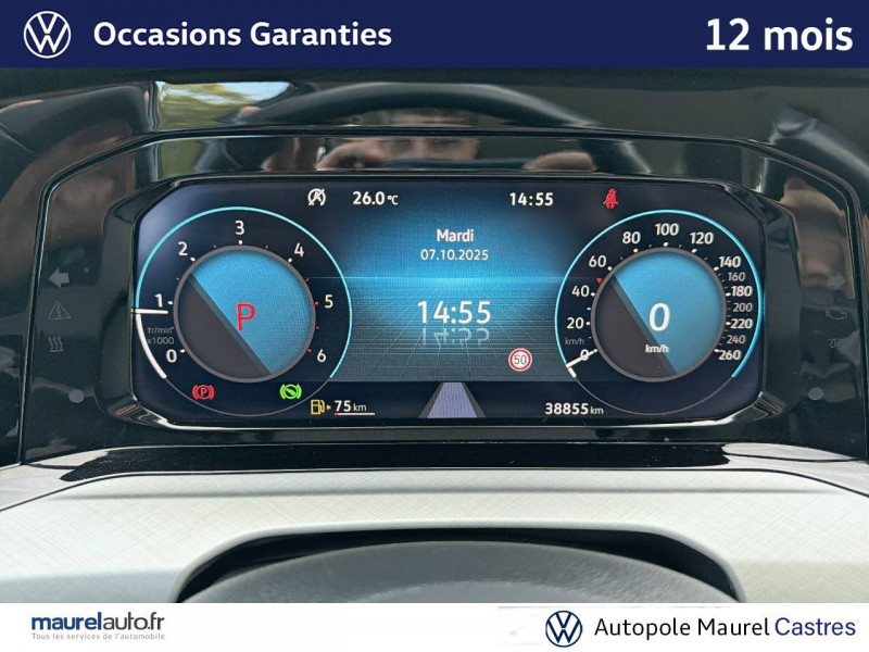 Activation automatique du signal de détresse en cas de freinage d'urgence / Ceintures de sécurité automatiques AV 3 points à enrouleur, réglables en hauteur, avec prétentionneurs / E-call service: Appel d'urgence manuel ou automatique / Eclairage à LED de la plaque d'immatriculation AR / Frein de stationnement électromécanique avec fonction d'immobilisation en pente "Auto Hold" et assistant de démarrage en côte / Jantes alliage léger "Norfolk" 7Jx16" avec pneumatiques 205/55 R16 avec écrous antivol / Pack Visibilité / Projecteurs AV à LED avec feux de jour à LED / Rétroviseur intérieur à réglage jour/nuit automatique / Side Assist (assistance changement de voie et de sortie de stationnement) / Système de freinage anti multicollision: ce dispositif freine automatiquement le véhicule après un premier choc afin de limiter le risque de multicollision / Système de Navigation & Infotainment "Discover Media" avec écran tactile 10" / Volant multifonction cuir avec palettes au volant / 2 interfaces USB-C à l'AV / 2 prises de chargement USB-C derrière l'accoudoir pour les passagers AR / 2 spots de lecture AV et 2 spots AR / Accoudoir central AR rabattable avec 2 portes-boissons / Accoudoir central AV réglable en hauteur et en profondeur avec compartiment de rangement / Airbag central entre les sièges AV / Airbags de tête pour passagers AV/AR / Airbags frontaux AV conducteur et passager (Airbag passager désactivable) / App-Connect sans fil, affichage et contrôle via l'écran tactile de la voiture du contenu, des fonctions et des applications compatibles présents sur le Smartphone (compatibilité avec les systèmes Apple CarPlay et Android Auto). Fonction sans fil uniquement disponible avec Apple CarPlay / Applications décoratives "Nature Crossed Brushed" sur tableau de bord et revêtements de portes / Appuis lombaires réglables à l'AV / Avertisseur sonore et lumineux pour ceintures non attachées AV et AR / Cache-bagages amovible / Cerclage chromé des commandes des vitres, de réglage des rétroviseurs et des aérateurs / Climatiseur "Air Care Climatronic" 3 zones et filtre anti-allergène et éléments de commandes à l'AR / Correcteur électronique de trajectoire ESP, amplificateur de freinage d'urgence, antiblocage des roues ABS, blocage électronique de différentiel EDS, répartiteur électronique de freinage EBV, antipatinage électronique ASR, régulateur électronique de couple MSR et assistance au contrebraquage / Digital Cockpit Pro : combiné d'instruments digital avec écran digital haute résolution de 10,25" / Eclairage d'ambiance - 10 couleurs / Eclairage d'ambiance extérieur poignées de portes éclairées et éclairage périmétrique avec projection du logo / Essuie-glace AR intermittent avec lave-glace / Fatigue Detection : système de détection de fatigue du conducteur qui analyse le comportement du conducteur et recommande un temps de repos par l'apparition d'un message visuel et sonore / Feu AR de brouillard d'un côté, feux de recul des deux côtés / Front Asisst avec détecteur des piétons / Indicateur de température extérieure avec avertisseur de gel / Interface téléphone Bluetooth / Lane Assist: Assistant de maintien dans la voie / Mesures supplémentaires de protection des piétons / Miroirs de courtoisie éclairés dans les pare-soleils / Oeillets d'arrimage ISOFIX (dispositif pour fixation de 2 sièges-enfants sur la banquette AR) / Pare-chocs, boîtiers de rétroviseurs extérieurs et poignées de portes dans la couleur carrosserie / Prise 12 V dans le coffre / Préparation pour "VW Connect" et "VW Connect Plus" vous permet d'obtenir des informations sur votre véhicule directement sur votre smartphone. Application totalement gratuite et facile à utiliser. Produit 100% compatible avec votre Volkswagen et garantie constructeur préservée. Aperçu de toutes les données de votre véhicule et des prochaines maintenances à effectuer. Sécurité totale des données grâce à un cryptage / Rangement et prise 12 V à l'AV / Revêtement de porte et latéral en feuille de mousse et tissu / Roue de secours à encombrement réduit avec cric / Réglage du site des phares, manuel / Régulateur de vitesse adaptatif et prédictif ACC avec limiteur de vitesse / Rétroviseurs extérieurs à réglage, rabattement et dégivrage électriques, avec fonction mémoire / Service d'appel d'urgence / Système Start/Stop avec dispositif de récupération de l'énergie au freinage / Tapis de sol AV/AR / Technologie Car2X Technologie de communication entre véhicules et avec les infrastructures routières / Verrouillage centralisé avec télécommande à fréquence radio par clé rétractable / Vitres athermiques teintées vertes / XDS : Système agissant comme un différentiel autobloquant électronique permettant une meilleure motricité en courbe grâce à une répartition optimale de la puissance et du couple sur les roues AV