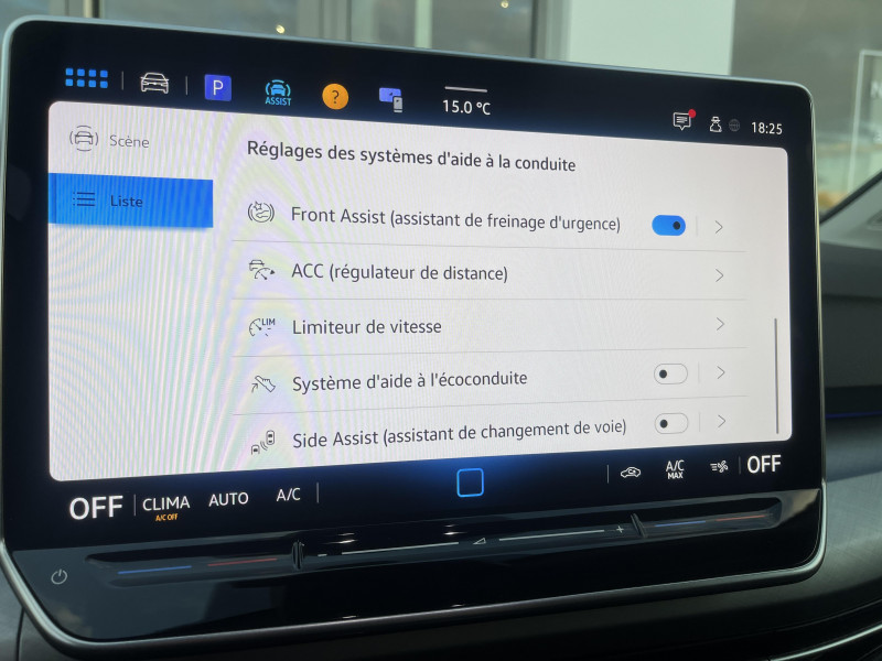 Activation automatique du signal de détresse en cas de freinage d'urgence / Caméra de recul "Rear View" caméra de recul avec visualisation de la zone située AR du véhicule sur l'écran de la radio ou de la radionavigation / Ceintures de sécurité automatiques AV 3 points à enrouleur, réglables en hauteur, avec prétentionneurs / Climatisation "Air Care Climatronic" 3 zones et filtre anti-allergène et éléments de commandes à l'AR / eCall : Appel d'urgence manuel ou automatique / Eclairage à LED de la plaque d'immatriculation AR / Frein de stationnement électromécanique avec fonction d'immobilisation en pente "Auto Hold" et assistant de démarrage en côte / Jantes en alliage léger 17" "Nottingham" avec pneumatiques 225/45 R17 / Park Pilot : Système d'aide au stationnement AV/AR avec signaux sonores et visualisation de la distance des obstacles sur l'écran / Pommeau du levier de vitesse cuir / Projecteurs 100% LED (projecteurs, feux de jour AV, feux AR) / Régulateur de vitesse adaptatif et prédictif ACC avec limiteur de vitesse détecte dans les limites du système et à l'aide d'un capteur radar les véhicules qui précèdent et maintient la distance en intervenant sur les freins et l'accélérateur (régulation active, de 30 à 210 km/h). Le conducteur peut calibrer la distance souhaitée par rapport aux autres automobilistes / Régulation automatique des feux de route "Light Assist" / Rétroviseur intérieur à réglage jour/nuit automatique / Side Assist (assistance changement de voie et de sortie de stationnement) / Sign Assist: Reconnaissance des panneaux de signalisation et affichage sur le 'Digital Cockpit' et l'écran du système de radionavigation / Système de freinage anti multicollision: ce dispositif freine automatiquement le véhicule après un premier choc afin de limiter le risque de multicollision / Système de Navigation & Infotainment "Discover" avec "Services de streaming et radio via Internet" via carte eSIM intégrée, Radio 7 HP et écran couleur tactile 12,9" avec projection de la cartographie dans l'écran du "Digital Cockpit Pro" / 2 interfaces USB-C à l'AV / 2 prises de chargement USB-C derrière l'accoudoir pour les passagers AR / 2 spots de lecture à l'AV et à l'AR / Accoudoir central AR rabattable avec 2 portes-boissons / Accoudoir central AV réglable en hauteur et en profondeur avec compartiment de rangement / Airbags de tête pour passagers AV/AR / Airbags frontaux AV conducteur et passager (Airbag passager désactivable) / App-Connect sans fil affichage et contrôle via l'écran tactile du véhicule, du contenu, des fonctions et des applications compatibles présents sur le Smartphone (compatibilité avec les systèmes Apple CarPlay et Android Auto) / Application décorative "Nature Cross Brushed" pour tableau de bord et les revêtements de portes / Appuis lombaires réglables à l'AV / Avertisseur sonore et lumineux pour ceintures non attachées AV/AR / Cache-bagages amovible / Cerclage chromé des commandes des vitres, de réglage des rétroviseurs et des aérateurs / Commande vocale (IDA) avec amplificateur de voix électronique / Correcteur électronique de trajectoire ESP, amplificateur de freinage d'urgence, système d'antiblocage de roues ABS, blocage électronique de différentiel EDS, répartiteur électronique EBV, antipatinage électronique ASR, régulateur de couple MSR et assistance au contrebraquage / Câble adaptateur USB-C vers USB-A / Digital Cockpit Pro : combiné d'instruments digital avec écran digital haute résolution de 10,25" / Eclairage d'ambiance 10 couleurs / Eclairage d'ambiance extérieur poignées de portes éclairées et éclairage périmétrique avec projection du logo / Ecrous antivol / Essuie-glace AR intermittent avec lave-glace / Fatigue Détection : système de détection de fatigue du conducteur qui analyse le comportement du conducteur et recommande un temps de repos par l'apparition d'un message visuel et sonore / Feu AR de brouillard d'un côté, feux de recul des deux côtés / Front Assist - Système de surveillance périmétrique avec fonctions de freinage d'urgence en ville et détection des piétons / Indicateur de température extérieure avec avertisseur de gel / Interface téléphone Bluetooth / Lane Assist: Assistant de maintien dans la voie / Mesures de protection des piétons supplémentaires / Miroirs de courtoisie éclairés dans les pare-soleils / Oeillets d'arrimage ISOFIX (dispositif pour fixation de 2 sièges-enfants sur la banquette AR) / Pare-chocs, boîtiers de rétroviseurs extérieurs et poignées de portes dans la couleur carrosserie / Prise 12 V dans le coffre / Préparation pour "VW Connect" et "VW Connect Plus" / Revêtement de porte et latéral en feuille de mousse et tissu / Roue de secours à encombrement réduit avec cric / Réglage du site des phares / Rétroviseurs extérieurs à réglage, rabattement et dégivrage électriques, avec fonction mémoire / Service d'appel d'urgence (inclus 10 ans et disponible indépendamment de l'inscription dans le système d'infotainment) / Système de verrouillage et de démarrage sans clé "Keyless Access" / Système Start/Stop avec dispositif de récupération de l'énergie au freinage / Tapis de sol AV/AR / Verrouillage centralisé avec télécommande à fréquence radio par clé rétractable / XDS : Système agissant comme un différentiel autobloquant électronique permettant une meilleure motricité en courbe grâce à une répartition optimale de la puissance et du couple sur les roues AV