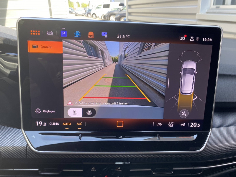 Activation automatique du signal de détresse en cas de freinage d'urgence / Caméra de recul "Rear View" caméra de recul avec visualisation de la zone située AR du véhicule sur l'écran de la radio ou de la radionavigation / Ceintures de sécurité automatiques AV 3 points à enrouleur, réglables en hauteur, avec prétentionneurs / Climatisation "Air Care Climatronic" 3 zones et filtre anti-allergène et éléments de commandes à l'AR / eCall : Appel d'urgence manuel ou automatique / Eclairage à LED de la plaque d'immatriculation AR / Frein de stationnement électromécanique avec fonction d'immobilisation en pente "Auto Hold" et assistant de démarrage en côte / Jantes en alliage léger 17" " Coventry" avec pneumatiques 225/45 R17 / Pack Ambiance - Eclairage d'ambiance 30 couleurs - Eclairage de plancher à LED à l'AV personnalisable / Pack Confort avec Park Assist Pro - Système de verrouillage et de démarrage sans clé?Keyless Access' avec safelock, - Alarme antivol - Assistant aux manoeuvres de stationnement ?Park Assist Pro' - Techologie Car2x / Pack Visibilité - Allumage automatique des feux avec fonctions "Coming home" et "Leaving home" - Capteur de pluie avec essuie-glace automatique / Park Pilot : Système d'aide au stationnement AV/AR avec signaux sonores et visualisation de la distance des obstacles sur l'écran / Pommeau du levier de vitesse cuir / Projecteurs LED Plus Feux de braquage et éclairage tous temps, Logo Volkswagen éclairé AV, bandeau lumineux AV entre les projecteurs et poignées concaves de porte éclairées, Pack 'Eclairage & Visibilité' avec régulation automatique des feux 'Light Assist', Projecteurs LED Plus / Régulateur de vitesse adaptatif et prédictif ACC avec limiteur de vitesse détecte dans les limites du système et à l'aide d'un capteur radar les véhicules qui précèdent et maintient la distance en intervenant sur les freins et l'accélérateur (régulation active, de 0 à 210 km/h ; jusqu'à l'arrêt du véhicule). Le conducteur peut calibrer la distance souhaitée par rapport aux autres automobilistes / Régulation automatique des feux de route "Light Assist" / Rétroviseur intérieur à réglage jour/nuit automatique / Side Assist (assistance changement de voie et de sortie de stationnement) / Sign Assist: Reconnaissance des panneaux de signalisation et affichage sur le 'Digital Cockpit' et l'écran du système de radionavigation / Système de freinage anti multicollision: ce dispositif freine automatiquement le véhicule après un premier choc afin de limiter le risque de multicollision / Système de Navigation & Infotainment "Discover" avec "Services de streaming et radio via Internet" via carte eSIM intégrée, Radio 7 HP et écran couleur tactile 12,9" avec projection de la cartographie dans l'écran du "Digital Cockpit Pro" / 2 interfaces USB-C à l'AV / 2 prises de chargement USB-C derrière l'accoudoir pour les passagers AR / 2 spots de lecture à l'AV et à l'AR / Accoudoir central AR rabattable avec 2 portes-boissons / Accoudoir central AV réglable en hauteur et en profondeur avec compartiment de rangement / Airbags de tête pour passagers AV et AR / Airbags frontaux AV conducteur et passager (Airbag passager désactivable) / App-Connect sans fil affichage et contrôle via l'écran tactile du véhicule, du contenu, des fonctions et des applications compatibles présents sur le Smartphone (compatibilité avec les systèmes Apple CarPlay et Android Auto) / Application décorative "Carbon Grey" pour tableau de bord et les revêtements de porte AV / Appuis lombaires réglables à l'AV / Assistant d'urgence "Emergency Assist " / Assistant de conduite semi-autonome "Travel Assist" qui combine le régulateur de distance "ACC", l'assistant de maintien dans la voie "Lane Assist", l'assistant au changement de voie "Side Assist" et l'Emergency Assist. Dans les limites inhérentes au système, le véhicule peut ainsi maintenir la distance que vous avez sélectionnée par rapport aux véhicules qui vous précèdent et maintenir sur la position au centre de la voie / Avertisseur sonore et lumineux pour ceintures non attachées AV/AR / Baguette lumineuse entre les projecteurs / Bas de caisse et spoiler spécifiques R-Line / Cache-bagages amovible / Calandre spécifique R-Line laquée noire avec Monogramme "R" / Cerclage chromé des commandes des vitres, de réglage des rétroviseurs et des aérateurs / Commande vocale (IDA) avec amplificateur de voix électronique / Correcteur électronique de trajectoire ESP, amplificateur de freinage d'urgence, système d'antiblocage de roues ABS, blocage électronique de différentiel EDS, répartiteur électronique EBV, antipatinage électronique ASR, régulateur de couple MSR et assistance au contrebraquage / Câble adaptateur USB-C vers USB-A / Digital Cockpit Pro : combiné d'instruments digital avec écran digital haute résolution de 10,25" / Eclairage d'ambiance extérieur poignées de portes éclairées et éclairage périmétrique avec projection du logo / Ecrous antivol / Essuie-glace AR intermittent avec lave-glace / Fatigue Détection : système de détection de fatigue du conducteur qui analyse le comportement du conducteur et recommande un temps de repos par l'apparition d'un message visuel et sonore / Feu AR de brouillard d'un côté, feux de recul des deux côtés / Fonction antibrouillard intégrée et éclairage statique d'intersection / Front Assist - Système de surveillance périmétrique avec fonctions de freinage d'urgence en ville et détection des piétons / Indicateur de température extérieure avec avertisseur de gel / Interface téléphone Bluetooth / Kit de dépannage : compresseur 12 V et produit d'étanchéité de pneu / Lane Assist: Assistant de maintien dans la voie / Logo VW éclairé AV / Lunette AR surteintée / Mesures de protection des piétons supplémentaires / Miroirs de courtoisie éclairés dans les pare-soleils / Oeillets d'arrimage ISOFIX (dispositif p