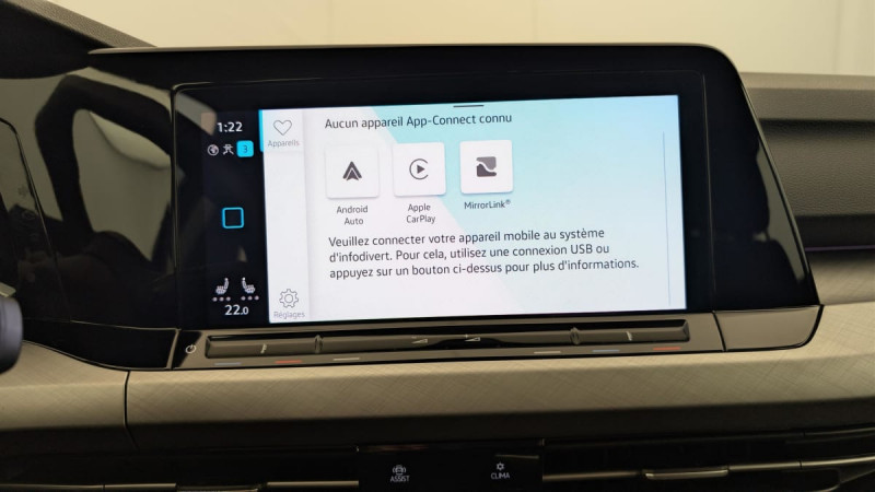 Climatiseur "Air Care Climatronic" 1 zone / Fatigue Detection : système de détection de fatigue du conducteur qui analyse le comportement du conducteur et recommande un temps de repos par l'apparition d'un message visuel et sonore / Kit de dépannage : compresseur 12 V et produit d'étanchéité de pneu / Prise 12 V dans le coffre / Système Start/Stop avec récupération d'énergie au freinage / Oeillets d'arrimage ISOFIX (dispositif pour fixation de 2 sièges-enfants sur la banquette AR) / Projecteurs AV à LED avec feux de jour à LED / Lane Assist: Assistant de maintien dans la voie / App-Connect sans fil, affichage et contrôle via l'écran tactile de la voiture du contenu, des fonctions et des applications compatibles présents sur le Smartphone (compatibilité avec les systèmes Apple CarPlay et Android Auto). Fonction sans fil uniquement disponible avec Apple CarPlay / Frein de stationnement électromécanique avec fonction d'immobilisation en pente "Auto Hold" et assistant de démarrage en côte / Régulateur de vitesse adaptatif et prédictif ACC avec limiteur de vitesse / Front Asisst avec détecteur des piétons / Sellerie en tissu "Maze" / Jantes alliage léger "Norfolk" 7Jx16" avec pneumatiques 205/55 R16 / Rangement et prise 12 V à l'AV / 2 interfaces USB-C à l'AV et 2 prises de chargement USB-C derrière laccoudoir pour les passagers AR / Appuis lombaires réglables à l'AV / Eclairage d'ambiance - 10 couleurs / Airbags frontaux AV conducteur et passager (Airbag passager désactivable) / Digital Cockpit Pro : combiné d'instruments digital avec écran digital haute résolution de 10,25" / Allumage automatique des feux avec fonctions "Coming Home - Leaving Home" /