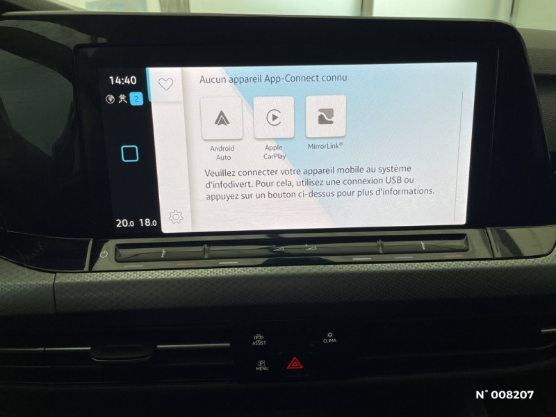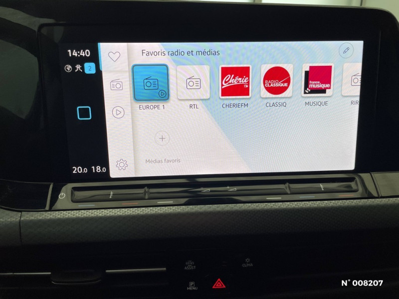 Réglage du site des phares, manuel / Rétroviseurs extérieurs avec fonction mémoire / Sellerie en tissu "Waveform" / Rangement et prise 12 V à l'AV / Rétroviseur intérieur à réglage jour/nuit automatique / Service d'appel d'urgence / Side Assist (assistance changement de voie et de sortie de stationnement) / Allumage automatique des feux avec fonctions "Coming Home - Leaving Home" / Peinture unie Gris Urano / Préparation pour "VW Connect" et "VW Connect Plus" vous permet d'obtenir des informations sur votre véhicule directement sur votre smartphone. Application totalement gratuite et facile à utiliser. Produit 100% compatible avec votre Volkswagen et garantie constructeur préservée. Aperà§u de toutes les données de votre véhicule et des prochaines maintenances à effectuer. Sécurité totale des données grâce à un cryptage / Projecteurs LED Plus avec fonction antibrouillard intégrée et éclairage statique d'intersection / Pare-chocs, boîtiers de rétroviseurs extérieurs et poignées de portes dans la couleur carrosserie / Pédalier et repose-pied en acier inoxydable brossé / Prise 12 V dans le coffre / 2 interfaces USB-C à l'AV / Accoudoir central AR rabattable avec 2 portes-boissons / 2 spots de lecture AV et 2 spots AR / 2 prises de chargement USB-C derrière l'accoudoir pour les passagers AR / Airbag central entre les sièges AV / Activation automatique du signal de détresse en cas de freinage d'urgence / Accoudoir central AV réglable en hauteur et en profondeur avec compartiment de rangement / Climatiseur "Air Care Climatronic" 3 zones et filtre anti-allergène et éléments de commandes à l'AR / Digital Cockpit Pro : combiné d'instruments digital avec écran digital haute résolution de 10,25" / Cerclage chromé des commandes des vitres, de réglage des rétroviseurs et des aérateurs / Correcteur électronique de trajectoire ESP, amplificateur de freinage d'urgence, antiblocage des roues ABS, blocage électronique de différentiel EDS, répartiteur électronique de freinage EBV, antipatinage électronique ASR, régulateur électronique de couple MSR et assistance au contrebraquage / Eclairage à LED de la plaque d'immatriculation AR / Eclairage de plancher à LED à l'AV avec possibilité de sélectionner la couleur d'éclairage / Appuis lombaires réglables à l'AV / Avertisseur sonore et lumineux pour ceintures non attachées AV et AR / Banquette AR rabattable 2/3-1/3 avec trappe à skis / Ceintures de sécurité automatiques AV 3 points à enrouleur, réglables en hauteur, avec prétentionneurs / Cache-bagages amovible / Airbags frontaux AV conducteur et passager (Airbag passager désactivable) / Airbags de tête pour passagers AV et AR / Applications décoratives spécifiques pour le tableau de bord et les revêtements de porte AV / App-Connect sans fil, affichage et contrôle via l'écran tactile de la voiture du contenu, des fonctions et des applications compatibles présents sur le Smartphone / Badges spécifiques "ACTIVE" / Jantes alliage léger "Galway" 7Jx16" avec pneumatiques 205/55 R16 avec écrous antivol / Mesures supplémentaires de protection des piétons / Oeillets d'arrimage ISOFIX (dispositif pour fixation de 2 sièges-enfants sur la banquette AR) / Keyless Access Advanced sans alarme : Système de verrouillage/déverrouillage et de démarrage sans clé / Light Assist : Régulation automatique des feux de route / Eclairage d'ambiance extérieur poignées de portes éclairées et éclairage périmétrique avec projection du logo / Essuie-glace AR intermittent avec lave-glace / Front Asisst avec détecteur des piétons / Indicateur de température extérieure avec avertisseur de gel / Miroirs de courtoisie éclairés dans les pare-soleils / Lane Assist: Assistant de maintien dans la voie / Interface téléphone Bluetooth / Chrome sur le bouclier AV et le pare-choc AR / Eclairage d'ambiance 30 couleurs / E-call service: Appel d'urgence manuel ou automatique / Fatigue Détection : système de détection de fatigue du conducteur / Feu AR de brouillard d'un côté, feux de recul des deux côtés / Frein de stationnement électromécanique avec fonction d'immobilisation en pente "Auto Hold" et assistant de démarrage en côte / Revêtement de porte et latéral en feuille de mousse et tissu / Volant multifonction cuir avec palettes au volant / Verrouillage centralisé avec télécommande à fréquence radio par clé rétractable / XDS : Système agissant comme un différentiel autobloquant électronique permettant une meilleure motricité en courbe grâce à une répartition optimale de la puissance et du couple sur les roues AV / Technologie Car2X Technologie de communication entre véhicules et avec les infrastructures routières / Système de Navigation & Infotainment "Discover Media" avec écran tactile 10" / Système Start/Stop avec dispositif de récupération de l'énergie au freinage / Vitres athermiques teintées vertes / Tapis de sol AV/AR / Système de freinage anti multicollision : ce dispositif freine automatiquement le véhicule après un premier choc afin de limiter le risque de multicollision / Régulateur de vitesse adaptatif et prédictif ACC avec limiteur de vitesse