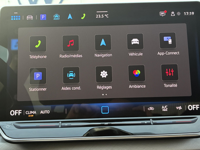 Activation automatique du signal de détresse en cas de freinage d'urgence / Caméra de recul "Rear View" caméra de recul avec visualisation de la zone située AR du véhicule sur l'écran de la radio ou de la radionavigation / Ceintures de sécurité automatiques AV 3 points à enrouleur, réglables en hauteur, avec prétentionneurs / Climatisation "Air Care Climatronic" 3 zones et filtre anti-allergène et éléments de commandes à l'AR / eCall : Appel d'urgence manuel ou automatique / Eclairage à LED de la plaque d'immatriculation AR / Frein de stationnement électromécanique avec fonction d'immobilisation en pente "Auto Hold" et assistant de démarrage en côte / Jantes en alliage léger 17" "Nottingham" avec pneumatiques 225/45 R17 / Park Pilot : Système d'aide au stationnement AV/AR avec signaux sonores et visualisation de la distance des obstacles sur l'écran / Pommeau du levier de vitesse cuir / Projecteurs 100% LED (projecteurs, feux de jour AV, feux AR) / Régulateur de vitesse adaptatif et prédictif ACC avec limiteur de vitesse détecte dans les limites du système et à l'aide d'un capteur radar les véhicules qui précèdent et maintient la distance en intervenant sur les freins et l'accélérateur (régulation active, de 30 à 210 km/h). Le conducteur peut calibrer la distance souhaitée par rapport aux autres automobilistes / Régulation automatique des feux de route "Light Assist" / Rétroviseur intérieur à réglage jour/nuit automatique / Side Assist (assistance changement de voie et de sortie de stationnement) / Sign Assist: Reconnaissance des panneaux de signalisation et affichage sur le 'Digital Cockpit' et l'écran du système de radionavigation / Système de freinage anti multicollision: ce dispositif freine automatiquement le véhicule après un premier choc afin de limiter le risque de multicollision / Système de Navigation & Infotainment "Discover" avec "Services de streaming et radio via Internet" via carte eSIM intégrée, Radio 7 HP et écran couleur tactile 12,9" avec projection de la cartographie dans l'écran du "Digital Cockpit Pro" / 2 interfaces USB-C à l'AV / 2 prises de chargement USB-C derrière l'accoudoir pour les passagers AR / 2 spots de lecture à l'AV et à l'AR / Accoudoir central AR rabattable avec 2 portes-boissons / Accoudoir central AV réglable en hauteur et en profondeur avec compartiment de rangement / Airbags de tête pour passagers AV/AR / Airbags frontaux AV conducteur et passager (Airbag passager désactivable) / App-Connect sans fil affichage et contrôle via l'écran tactile du véhicule, du contenu, des fonctions et des applications compatibles présents sur le Smartphone (compatibilité avec les systèmes Apple CarPlay et Android Auto) / Application décorative "Nature Cross Brushed" pour tableau de bord et les revêtements de portes / Appuis lombaires réglables à l'AV / Avertisseur sonore et lumineux pour ceintures non attachées AV/AR / Cache-bagages amovible / Cerclage chromé des commandes des vitres, de réglage des rétroviseurs et des aérateurs / Commande vocale (IDA) avec amplificateur de voix électronique / Correcteur électronique de trajectoire ESP, amplificateur de freinage d'urgence, système d'antiblocage de roues ABS, blocage électronique de différentiel EDS, répartiteur électronique EBV, antipatinage électronique ASR, régulateur de couple MSR et assistance au contrebraquage / Câble adaptateur USB-C vers USB-A / Digital Cockpit Pro : combiné d'instruments digital avec écran digital haute résolution de 10,25" / Eclairage d'ambiance 10 couleurs / Eclairage d'ambiance extérieur poignées de portes éclairées et éclairage périmétrique avec projection du logo / Ecrous antivol / Essuie-glace AR intermittent avec lave-glace / Fatigue Détection : système de détection de fatigue du conducteur qui analyse le comportement du conducteur et recommande un temps de repos par l'apparition d'un message visuel et sonore / Feu AR de brouillard d'un côté, feux de recul des deux côtés / Front Assist - Système de surveillance périmétrique avec fonctions de freinage d'urgence en ville et détection des piétons / Indicateur de température extérieure avec avertisseur de gel / Interface téléphone Bluetooth / Lane Assist: Assistant de maintien dans la voie / Mesures de protection des piétons supplémentaires / Miroirs de courtoisie éclairés dans les pare-soleils / Oeillets d'arrimage ISOFIX (dispositif pour fixation de 2 sièges-enfants sur la banquette AR) / Pare-chocs, boîtiers de rétroviseurs extérieurs et poignées de portes dans la couleur carrosserie / Prise 12 V dans le coffre / Préparation pour "VW Connect" et "VW Connect Plus" / Revêtement de porte et latéral en feuille de mousse et tissu / Roue de secours à encombrement réduit avec cric / Réglage du site des phares / Rétroviseurs extérieurs à réglage, rabattement et dégivrage électriques, avec fonction mémoire / Service d'appel d'urgence (inclus 10 ans et disponible indépendamment de l'inscription dans le système d'infotainment) / Système de verrouillage et de démarrage sans clé "Keyless Access" / Système Start/Stop avec dispositif de récupération de l'énergie au freinage / Tapis de sol AV/AR / Verrouillage centralisé avec télécommande à fréquence radio par clé rétractable / XDS : Système agissant comme un différentiel autobloquant électronique permettant une meilleure motricité en courbe grâce à une répartition optimale de la puissance et du couple sur les roues AV