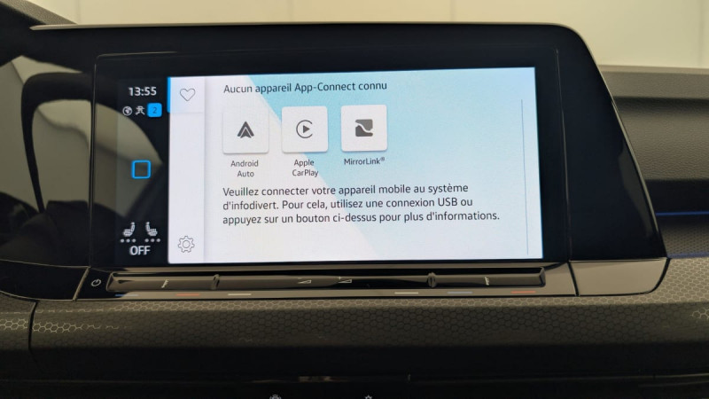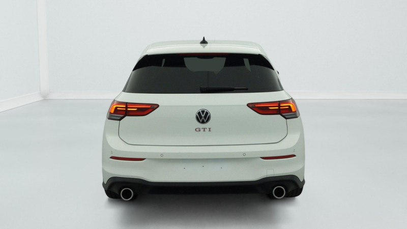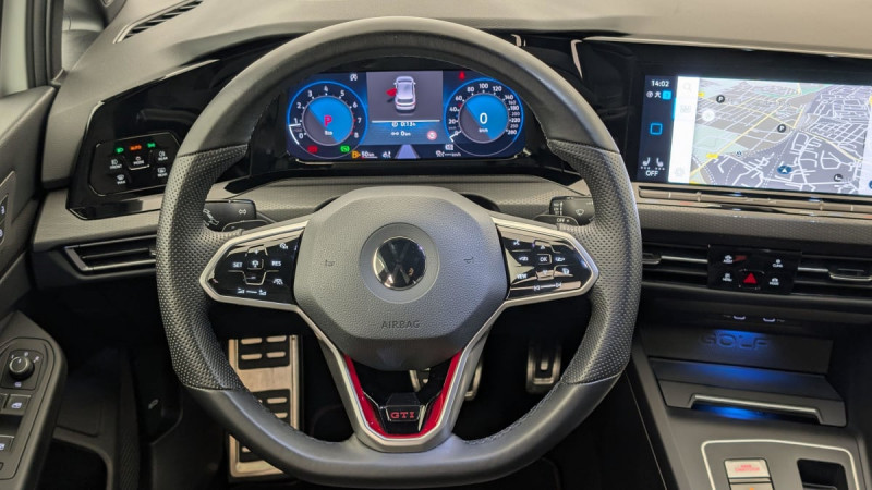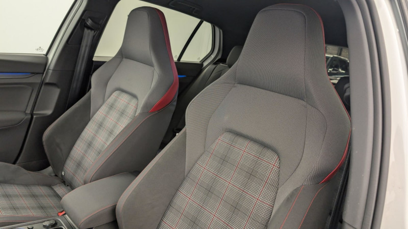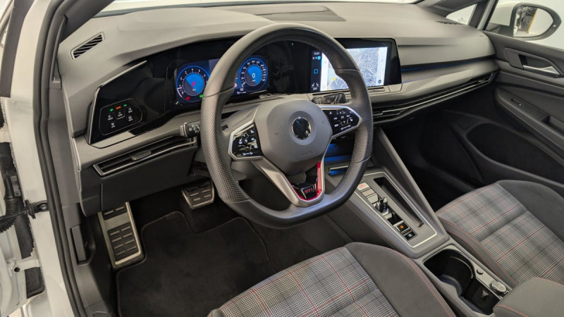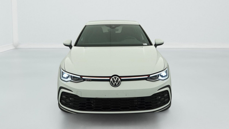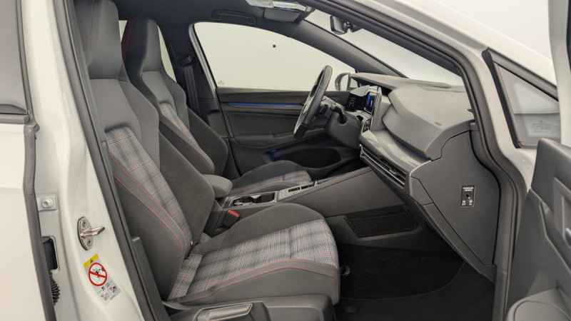 Projecteurs LED Plus haute performance avec éclairage de jour à LED / Fatigue Detection : système de détection de fatigue du conducteur qui analyse le comportement du conducteur et recommande un temps de repos par l'apparition d'un message visuel et sonore / Peinture unie Blanc Pur / Prise 12 V dans le coffre / Etriers de frein rouge à l'AV et à l'AR / Système Start/Stop avec récupération d'énergie au freinage / Oeillets d'arrimage ISOFIX (dispositif pour fixation de 2 sièges-enfants sur la banquette AR) / Sélection du profil de conduite / Liseré rouge dans la calandre / Interface téléphone Bluetooth / Rétroviseur intérieur à réglage jour/nuit automatique / Réglage du site des phares, manuel / Lane Assist: Assistant de maintien dans la voie / App-Connect sans fil, affichage et contrôle via l'écran tactile de la voiture du contenu, des fonctions et des applications compatibles présents sur le Smartphone (compatibilité avec les systèmes Apple CarPlay et Android Auto). Fonction sans fil uniquement disponible avec Apple CarPlay / Frein de stationnement électromécanique avec fonction d'immobilisation en pente "Auto Hold" et assistant de démarrage en côte / Régulateur de vitesse adaptatif et prédictif ACC avec limiteur de vitesse / Front Asisst avec détecteur des piétons / Rangement et prise 12 V à l'AV / Climatiseur "Air Care Climatronic" 3 zones et filtre anti-allergène et éléments de commandes à l'AR / Airbags frontaux AV conducteur et passager (Airbag passager désactivable) / Eclairage d'ambiance 30 couleurs / 2 interfaces USB-C à l'AV / Ciel de pavillon Noir Soul / Sièges AV sports specifique GTI, appui-tetes intégrés, appuis lombaires AV / Baguette LED / Digital Cockpit Pro : combiné d'instruments digital avec écran digital haute résolution de 10,25" / Volant sport multifonction en cuir spécifiqque "GTI" palettes au volant, commades tactiles et retour haptique / 2 prises de chargement USB-C derrière l'accoudoir pour les passagers AR / Assistant de conduite "Travel Assist" avec "Emergency Assist" / Pack Visibilité : Allumage automatique des feux avec fonctions "Coming Home - Leaving Home" Capteur de pluie avec essuie-glace automatique / Système de Navigation & Infotainment "Discover Media" avec écran tactile 10" /