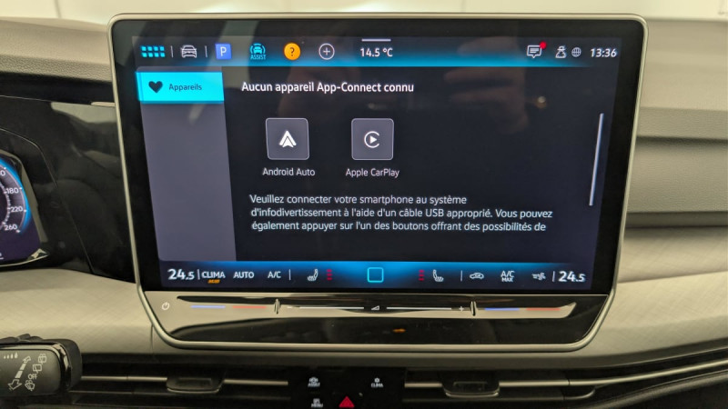 Prise 12 V dans le coffre / Oeillets d'arrimage ISOFIX (dispositif pour fixation de 2 sièges-enfants sur la banquette AR) / Interface téléphone Bluetooth / Lane Assist: Assistant de maintien dans la voie / Frein de stationnement électromécanique avec fonction d'immobilisation en pente "Auto Hold" et assistant de démarrage en côte / Sellerie en tissu "Maze" / Allumage automatique des feux avec fonctions "Coming Home - Leaving Home" / Appuis lombaires réglables à l'AV / Airbags frontaux AV conducteur et passager (Airbag passager désactivable) / Park Pilot : Système d'aide au stationnement AV/AR avec signaux sonores et visualisation de la distance des obstacles sur l'écran / 2 interfaces USB-C à l'AV / Front Assist - Système de surveillance périmétrique avec fonctions de freinage d'urgence en ville et détection des piétons / 2 prises de chargement USB-C derrière l'accoudoir pour les passagers AR / Système Start/Stop avec dispositif de récupération de l'énergie au freinage / Sign Assist: Reconnaissance des panneaux de signalisation et affichage sur le 'Digital Cockpit' et l'écran du système de radionavigation / App-Connect sans fil affichage et contrôle via l'écran tactile du véhicule, du contenu, des fonctions et des applications compatibles présents sur le Smartphone (compatibilité avec les systèmes Apple CarPlay et Android Auto) / Pommeau du levier de vitesse cuir / Eclairage d'ambiance 10 couleurs / Fatigue Détection : système de détection de fatigue du conducteur qui analyse le comportement du conducteur et recommande un temps de repos par l'apparition d'un message visuel et sonore / Système de Navigation & Infotainment "Discover" avec commande vocale (IDA) avec amplificateur de voix électronique / Application décorative "Nature Cross Brushed" pour tableau de bord et les revêtements de portes / Projecteurs 100% LED (projecteurs, feux de jour AV, feux AR) / Régulateur de vitesse adaptatif et prédictif ACC avec limiteur de vitesse détecte dans les limites du système et à l'aide d'un capteur radar les véhicules qui précèdent et maintient la distance en intervenant sur les freins et l'accélérateur (régulation active, de 30 à 210 km/h). Le conducteur peut calibrer la distance souhaitée par rapport aux autres automobilistes / Digital Cockpit Pro : combiné d'instruments digital avec écran digital haute résolution de 10,25" / Jantes en alliage 16'' "Norfolk" pneumatiques 205/55 R16 / Climatisation "Air Care Climatronic" 3 zones et filtre anti-allergène et éléments de commandes à l'AR / Verrouillage centralisé avec télécommande à fréquence radio par clé rétractable / Rétroviseurs extérieurs à réglage, rabattement et dégivrage électriques, avec fonction mémoire /