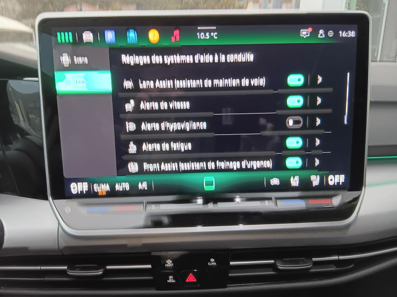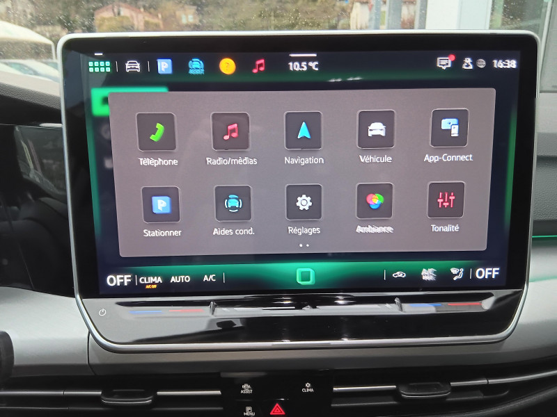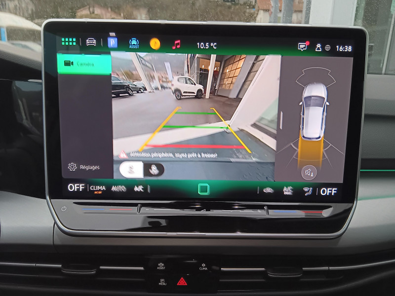 Activation automatique du signal de détresse en cas de freinage d'urgence / Caméra de recul "Rear View" caméra de recul avec visualisation de la zone située AR du véhicule sur l'écran de la radio ou de la radionavigation / Ceintures de sécurité automatiques AV 3 points à enrouleur, réglables en hauteur, avec prétentionneurs / Climatisation "Air Care Climatronic" 3 zones et filtre anti-allergène et éléments de commandes à l'AR / Cross Traffic Alert?: assistant d?intersection qui détecte les véhicules circulant en sens perpendiculaire et vous avertit par un signal visuel et sonore. Il peut déclencher un freinage d?urgence pour atténuer l?impact d?une collision ou même mieux, l?éviter, (Les outils d?aide à la conduite automobile ne dispensent pas le conducteur d?être vigilant.) / eCall : Appel d'urgence manuel ou automatique / Eclairage à LED de la plaque d'immatriculation AR / Frein de stationnement électromécanique avec fonction d'immobilisation en pente "Auto Hold" et assistant de démarrage en côte / Jantes en alliage 16'' "Norfolk" avec pneumatiques 205/55 R16 à résistance au roulement optimisée / Park Pilot : Système d'aide au stationnement AV/AR avec signaux sonores et visualisation de la distance des obstacles sur l'écran / Pommeau du levier de vitesse cuir / Projecteurs 100% LED (projecteurs, feux de jour AV, feux AR) / Régulateur de vitesse adaptatif et prédictif ACC avec limiteur de vitesse détecte dans les limites du système et à l'aide d'un capteur radar les véhicules qui précèdent et maintient la distance en intervenant sur les freins et l'accélérateur (régulation active, de 30 à 210 km/h). Le conducteur peut calibrer la distance souhaitée par rapport aux autres automobilistes / Rétroviseur intérieur à réglage jour/nuit automatique / Sign Assist: Reconnaissance des panneaux de signalisation et affichage sur le 'Digital Cockpit' et l'écran du système de radionavigation / Système de freinage anti multicollision: ce dispositif freine automatiquement le véhicule après un premier choc afin de limiter le risque de multicollision / Système Navigation "Discover" avec "Services de streaming et radio via Internet" via carte eSIM intégrée, Radio 7 HP et écran couleur tactile 12,9" avec projection de la cartographie dans l'écran du "Digital Cockpit Pro" / 2 interfaces USB-C à l'AV / 2 lampes de lecture à l'AV et à l'AR / 2 prises de chargement USB-C derrière l'accoudoir pour les passagers AR / Accoudoir central AR rabattable avec 2 portes-boissons / Accoudoir central AV réglable en hauteur et en profondeur avec compartiment de rangement / Airbags de tête pour passagers AV/AR / Airbags frontaux AV conducteur et passager (Airbag passager désactivable) / App-Connect sans fil affichage et contrôle via l'écran tactile du véhicule, du contenu, des fonctions et des applications compatibles présents sur le Smartphone (compatibilité avec les systèmes Apple CarPlay et Android Auto) / Application décorative "Nature Cross Brushed" pour tableau de bord et les revêtements de portes AV / Appuis lombaires réglables à l'AV / Assistant de changement de voie avec détecteurs d?angle mort 'Side Assist' / Avertisseur sonore et lumineux pour ceintures non attachées AV/AR / Boîte de vitesse manuelle 6 rapports / Cache-bagages amovible / Cerclage chromé des commandes des vitres, de réglage des rétroviseurs et des aérateurs / Commande vocale (IDA) avec amplificateur de voix électronique / Contrôle de la traction (TCS) / Coques de rétroviseurs extérieurs couleur carrosserie / Correcteur électronique de trajectoire ESP, amplificateur de freinage d'urgence, antiblocage des roues ABS, blocage électronique de différentiel EDS, répartiteur électronique de freinage EBV, antipatinage électronique ASR, régulateur électronique de couple MSR et assistance au contrebraquage / Câble adaptateur USB-C vers USB-A / Digital Cockpit Pro : combiné d'instruments digital avec écran digital haute résolution de 10,25" / Eclairage d'ambiance 10 couleurs / Eclairage d'ambiance extérieur poignées de portes éclairées et éclairage périmétrique avec projection du logo / Ecrous antivol / Essuie-glace AR intermittent avec lave-glace / Fatigue Détection : système de détection de fatigue du conducteur qui analyse le comportement du conducteur et recommande un temps de repos par l'apparition d'un message visuel et sonore / Feu AR de brouillard d'un côté, feux de recul des deux côtés / Front Assist - Système de surveillance périmétrique avec fonctions de freinage d'urgence en ville et détection des piétons / Indicateur de température extérieure avec avertisseur de gel / Interface téléphone Bluetooth / Lane Assist: Assistant de maintien dans la voie / Mesures de protection des piétons supplémentaires / Miroirs de courtoisie éclairés dans les pare-soleils / Oeillets d'arrimage ISOFIX (dispositif pour fixation de 2 sièges-enfants sur la banquette AR) / Pare-chocs et poignées de portes dans la couleur carrosserie / Prise 12 V dans le coffre / Préparation pour "VW Connect" et "VW Connect Plus" / Revêtement de porte et latéral en feuille de mousse et tissu / Roue de secours à encombrement réduit avec cric / Réglage du site des phares / Rétroviseurs extérieurs avec fonction mémoire, rabattables/réglables électriquement et dégivrage séparé / Service d'appel d'urgence (inclus 10 ans et disponible indépendamment de l'inscription dans le système d'infotainment) / Système Start/Stop avec dispositif de récupération de l'énergie au freinage / Tapis de sol AV/AR / Verrouillage centralisé avec télécommande à fréquence radio par clé rétractable / XDS : Système agissant comme un différentiel autobloquant électronique permettant une meilleure motricité en courbe grâce à une répartition optimale de la puissance et du couple sur les roues AV