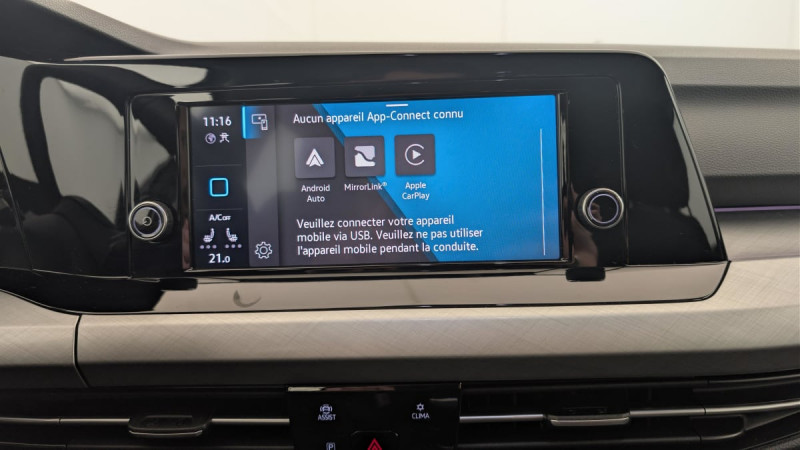 Climatiseur "Air Care Climatronic" 1 zone / Radio composition, 7 haut-parleurs et écran 8?? / Fatigue Detection : système de détection de fatigue du conducteur qui analyse le comportement du conducteur et recommande un temps de repos par l'apparition d'un message visuel et sonore / Kit de dépannage : compresseur 12 V et produit d'étanchéité de pneu / Prise 12 V dans le coffre / Système Start/Stop avec récupération d'énergie au freinage / Oeillets d'arrimage ISOFIX (dispositif pour fixation de 2 sièges-enfants sur la banquette AR) / Pare-chocs, boîtiers de rétroviseurs extérieurs et poignées de portes dans la couleur carrosserie / Rétroviseur intérieur à réglage jour/nuit automatique / Projecteurs AV à LED avec feux de jour à LED / Lane Assist: Assistant de maintien dans la voie / App-Connect sans fil, affichage et contrôle via l'écran tactile de la voiture du contenu, des fonctions et des applications compatibles présents sur le Smartphone (compatibilité avec les systèmes Apple CarPlay et Android Auto). Fonction sans fil uniquement disponible avec Apple CarPlay / Frein de stationnement électromécanique avec fonction d'immobilisation en pente "Auto Hold" et assistant de démarrage en côte / Régulateur de vitesse adaptatif et prédictif ACC avec limiteur de vitesse / Front Asisst avec détecteur des piétons / Sellerie en tissu "Maze" / Jantes alliage léger "Norfolk" 7Jx16" avec pneumatiques 205/55 R16 / Rangement et prise 12 V à l'AV / 2 interfaces USB-C à l'AV et 2 prises de chargement USB-C derrière laccoudoir pour les passagers AR / Appuis lombaires réglables à l'AV / Interface téléphonique avec fonction de charge inductive / Digital Cockpit : combiné d'instruments digital avec écran digital haute résolution de 10" / Eclairage d'ambiance - 10 couleurs / Airbags frontaux AV conducteur et passager (Airbag passager désactivable) / Spots de lecture (2) à l'AV / Pack Visibilité : Allumage automatique des feux avec fonctions "Coming Home - Leaving Home" Capteur de pluie avec essuie-glace automatique / Indicateur de température extérieure avec avertisseur de gel /