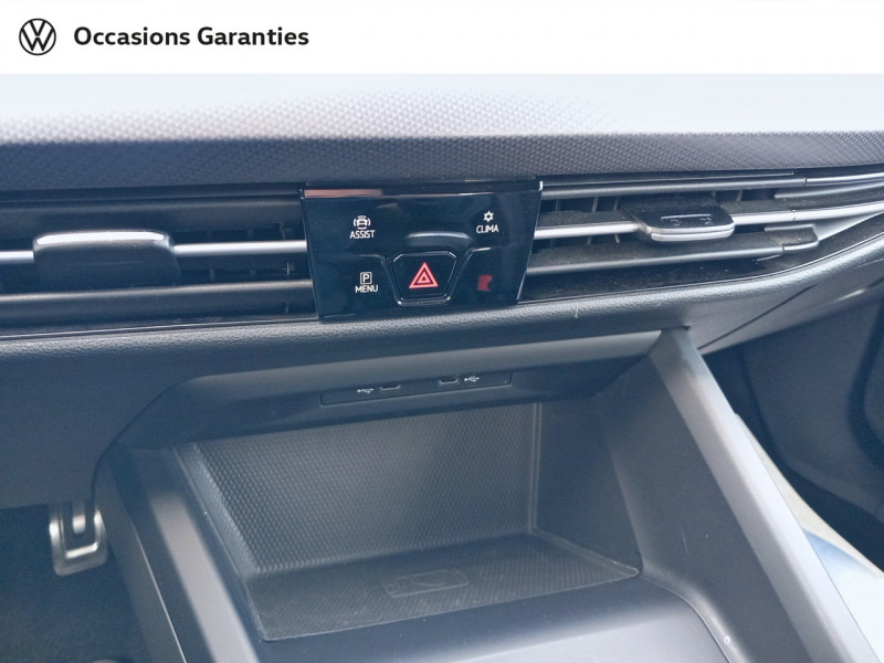 Activation automatique du signal de détresse en cas de freinage d'urgence / Ceintures de sécurité automatiques AV 3 points à enrouleur, réglables en hauteur, avec prétentionneurs / E-call service: Appel d'urgence manuel ou automatique / Eclairage de plancher à LED à l'AV avec possibilité de sélectionner la couleur d'éclairage / Eclairage à LED de la plaque d'immatriculation AR / Frein de stationnement électromécanique avec fonction d'immobilisation en pente "Auto Hold" et assistant de démarrage en côte / Jantes alliage léger "Galway" 7Jx16" avec pneumatiques 205/55 R16 avec écrous antivol / Light Assist : Régulation automatique des feux de route / Pommeau du levier de vitesse cuir / Projecteurs LED Plus avec fonction antibrouillard intégrée et éclairage statique d'intersection / Rétroviseur intérieur à réglage jour/nuit automatique / Side Assist (assistance changement de voie et de sortie de stationnement) / Système de freinage anti multicollision: ce dispositif freine automatiquement le véhicule après un premier choc afin de limiter le risque de multicollision / Système Navigation & Infotainment "Discover Media" avec Services de streaming et radio via Internet via carte eSIM intégreé, reprenant les fonctionnalités du ?Ready 2 Discover?, avec en plus Système de navigation, Affichage de la carte en 2D, Trois calculs d'itinéraire possible, Affichage des logos des Points d'intérets choisis, des limitations de vitesse, des zones de danger et du panneau de sortie d'autoroute arrivant, Affichage des limitations spécifiques applicables dans un pays étranger, Préparation pour ?We Connect? et ?We Connect Plus? / 2 interfaces USB-C à l'AV / 2 prises de chargement USB-C derrière l'accoudoir pour les passagers AR / 2 spots de lecture AV et 2 spots AR / Accoudoir central AR rabattable avec 2 portes-boissons / Accoudoir central AV réglable en hauteur et en longueur avec compartiment de rangement / Airbags de tête pour passagers AV/AR / Airbags frontaux AV conducteur et passager (Airbag passager désactivable) / App-Connect sans fil, affichage et contrôle via l'écran tactile de la voiture du contenu, des fonctions et des applications compatibles présents sur le Smartphone (compatibilité avec les systèmes Apple CarPlay et Android Auto). Fonction sans fil uniquement disponible avec Apple CarPlay / Applications décoratives spécifiques pour le tableau de bord et les revêtements de porte AV / Appuis lombaires réglables à l'AV / Avertisseur sonore et témoin d'oubli du port de la ceinture de sécuritéà l'AV et à l'AR / Badges et seuils de porte spécifiques "ACTIVE" / Cache-bagages amovible / Cerclage chromé des commandes des vitres, de réglage des rétroviseurs et des aérateurs / Chrome sur le bouclier AV et le pare-choc AR / Climatiseur "Air Care Climatronic" 3 zones et filtre anti-allergène et éléments de commandes à l'AR / Correcteur électronique de trajectoire ESP, amplificateur de freinage d'urgence, antiblocage des roues ABS, blocage électronique de différentiel EDS, répartiteur électronique de freinage EBV, antipatinage électronique ASR, régulateur électronique de couple MSR et assistance au contrebraquage / Câble adaptateur USB-C vers USB-A / Digital Cockpit Pro : combiné d'instruments digital avec écran digital haute résolution de 10,25" / Eclairage d'ambiance 30 couleurs / Eclairage d'ambiance extérieur poignées de portes éclairées et éclairage périmétrique avec projection du logo / Essuie-glace AR intermittent avec lave-glace / Fatigue Detection : système de détection de fatigue du conducteur qui analyse le comportement du conducteur et recommande un temps de repos par l'apparition d'un message visuel et sonore / Feu AR de brouillard d'un côté, feux de recul des deux côtés / Front Asisst avec détecteur des piétons / Indicateur de température extérieure avec avertisseur de gel / Interface téléphone Bluetooth / Keyless Access Advanced sans alarme : Système de verrouillage/déverrouillage et de démarrage sans clé / Kit de dépannage : compresseur 12 V et produit d'étanchéité de pneu / Lane Assist: Assistant de maintien dans la voie / Mesures supplémentaires de protection des piétons / Miroirs de courtoisie éclairés dans les pare-soleils / Oeillets d'arrimage ISOFIX (dispositif pour fixation de 2 sièges-enfants sur la banquette AR) / Pare-chocs, boîtiers de rétroviseurs extérieurs et poignées de portes dans la couleur carrosserie / Prise 12 V dans le coffre / Préparation pour "VW Connect" et "VW Connect Plus" vous permet d'obtenir des informations sur votre véhicule directement sur votre smartphone. Application totalement gratuite et facile à utiliser. Produit 100% compatible avec votre Volkswagen et garantie constructeur préservée. Aperçu de toutes les données de votre véhicule et des prochaines maintenances à effectuer. Sécurité totale des données grâce à un cryptage / Pédalier et repose-pied en acier inoxydable brossé / Rangement et prise 12 V à l'AV / Rear Assist: Caméra de recul avec visualisation de la zone située à l'AR du véhicule / Revêtement de porte et latéral en feuille de mousse et tissu / Réglage du site des phares, manuel / Régulateur de vitesse adaptatif et prédictif ACC avec limiteur de vitesse / Rétroviseurs extérieurs à réglage, rabattement et dégivrage électriques, avec fonction mémoire / Service d'appel d'urgence (inclus 10 ans et disponible indépendamment de l?inscription dans le système d?infotainment) / Système Start/Stop avec récupération d'énergie au freinage / Tapis de sol AV/AR / Technologie Car2X Technologie de communication entre véhicules et avec les infrastructures routières / Vitres athermiques teintées vertes / XDS : Système agissant comme un différentiel autobloquant électronique permettant une meilleure motricité en courbe grâce à une répartition optimale de la puissance et du couple sur les roues AV