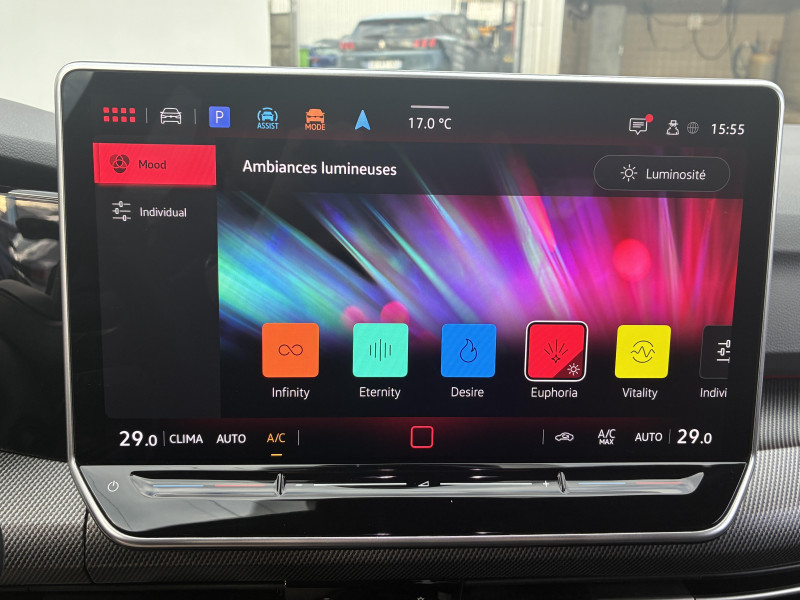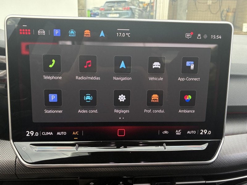 Activation automatique du signal de détresse en cas de freinage d'urgence / Caméra de recul "Rear View" caméra de recul avec visualisation de la zone située AR du véhicule sur l'écran de la radio ou de la radionavigation / Ceintures de sécurité automatiques AV 3 points à enrouleur, réglables en hauteur, avec prétentionneurs / Climatisation "Air Care Climatronic" 3 zones et filtre anti-allergène et éléments de commandes à l'AR / eCall : Appel d'urgence manuel ou automatique / Eclairage à LED de la plaque d'immatriculation AR / Frein de stationnement électromécanique avec fonction d'immobilisation en pente "Auto Hold" et assistant de démarrage en côte / Jantes alliage léger 18" 'York' avec pneumatiques 225/40 R18 / Park Pilot : Système d'aide au stationnement AV/AR avec signaux sonores et visualisation de la distance des obstacles sur l'écran / Pommeau du levier de vitesse cuir / Projecteurs LED Plus Feux de braquage et éclairage tous temps, Logo Volkswagen éclairé AV, bandeau lumineux AV entre les projecteurs et poignées concaves de porte éclairées, Pack 'Eclairage & Visibilité' avec régulation automatique des feux 'Light Assist', Projecteurs LED Plus / Régulateur de vitesse adaptatif et prédictif ACC avec limiteur de vitesse détecte dans les limites du système et à l'aide d'un capteur radar les véhicules qui précèdent et maintient la distance en intervenant sur les freins et l'accélérateur (régulation active, de 0 à 210 km/h ; jusqu'à l'arrêt du véhicule). Le conducteur peut calibrer la distance souhaitée par rapport aux autres automobilistes / Régulation automatique des feux de route "Light Assist" / Rétroviseur intérieur à réglage jour/nuit automatique / Sign Assist: Reconnaissance des panneaux de signalisation et affichage sur le 'Digital Cockpit' et l'écran du système de radionavigation / Système de freinage anti multicollision: ce dispositif freine automatiquement le véhicule après un premier choc afin de limiter le risque de multicollision / Système de Navigation & Infotainment "Discover" avec "Services de streaming et radio via Internet" via carte eSIM intégrée, Radio 7 HP et écran couleur tactile 12,9" avec projection de la cartographie dans l'écran du "Digital Cockpit Pro" / 2 interfaces USB-C à l'AV / 2 lampes de lecture à l'AV et à l'AR / 2 prises de chargement USB-C derrière l'accoudoir pour les passagers AR / Accoudoir central AR rabattable avec 2 portes-boissons / Accoudoir central AV réglable en hauteur et en profondeur avec compartiment de rangement / Airbags de tête pour passagers AV/AR / Airbags frontaux AV conducteur et passager (Airbag passager désactivable) / App-Connect sans fil affichage et contrôle via l'écran tactile du véhicule, du contenu, des fonctions et des applications compatibles présents sur le Smartphone (compatibilité avec les systèmes Apple CarPlay et Android Auto) / Application décorative "Carbon Grey" pour tableau de bord et les revêtements de porte AV / Appuis lombaires réglables à l'AV / Assistant d'urgence "Emergency Assist " / Assistant de changement de voie avec détecteurs d?angle mort 'Side Assist' / Assistant de conduite semi-autonome "Travel Assist" qui combine le régulateur de distance "ACC", l'assistant de maintien dans la voie "Lane Assist", l'assistant au changement de voie "Side Assist" et l'Emergency Assist. Dans les limites inhérentes au système, le véhicule peut ainsi maintenir la distance que vous avez sélectionnée par rapport aux véhicules qui vous précèdent et maintenir sur la position au centre de la voie / Avertisseur sonore et lumineux pour ceintures non attachées AV/AR / Baguette lumineuse entre les projecteurs / Bas de caisse et spoiler spécifiques R-Line / Cache-bagages amovible / Calandre spécifique R-Line laquée noire avec Monogramme "R" / Cerclage chromé des commandes des vitres, de réglage des rétroviseurs et des aérateurs / Commande vocale (IDA) avec amplificateur de voix électronique / Correcteur électronique de trajectoire ESP, amplificateur de freinage d'urgence, antiblocage des roues ABS, blocage électronique de différentiel EDS, répartiteur électronique de freinage EBV, antipatinage électronique ASR, régulateur électronique de couple MSR et assistance au contrebraquage / Câble adaptateur USB-C vers USB-A / Digital Cockpit Pro : combiné d'instruments digital avec écran digital haute résolution de 10,25" / Eclairage d'ambiance extérieur poignées de portes éclairées et éclairage périmétrique avec projection du logo / Ecrous antivol / Essuie-glace AR intermittent avec lave-glace / Fatigue Détection : système de détection de fatigue du conducteur qui analyse le comportement du conducteur et recommande un temps de repos par l'apparition d'un message visuel et sonore / Feu AR de brouillard d'un côté, feux de recul des deux côtés / Fonction antibrouillard intégrée et éclairage statique d'intersection / Front Assist - Système de surveillance périmétrique avec fonctions de freinage d'urgence en ville et détection des piétons / Indicateur de température extérieure avec avertisseur de gel / Interface téléphone Bluetooth / Kit de dépannage : compresseur 12 V et produit d'étanchéité de pneu / Lane Assist: Assistant de maintien dans la voie / Logo VW éclairé AV / Lunette AR surteintée / Mesures de protection des piétons supplémentaires / Miroirs de courtoisie éclairés dans les pare-soleils / Oeillets d'arrimage ISOFIX (dispositif pour fixation de 2 sièges-enfants sur la banquette AR) / Pare-chocs AV et AR spécifiques R-Line / Pare-chocs, boîtiers de rétroviseurs extérieurs et poignées de portes dans la couleur carrosserie / Prise 12 V dans le coffre / Préparation pour "VW Connect" et "VW Connect Plus" / Pédalier et repose-pied en acier inoxydable brossé / Revêtement de porte et latéral en feuille de mousse et tissu / Réglage du site des phares / Rétroviseurs extérieurs à 