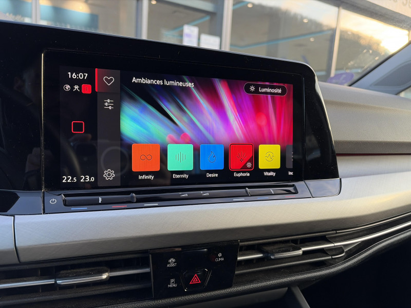Activation automatique du signal de détresse en cas de freinage d'urgence / E-call service: Appel d'urgence manuel ou automatique / Eclairage à LED de la plaque d'immatriculation AR / Frein de stationnement électromécanique avec fonction d'immobilisation en pente "Auto Hold" et assistant de démarrage en côte / Jantes alliage léger "Norfolk" 7Jx16" avec pneumatiques 205/55 R16 avec écrous antivol / Pommeau du levier de vitesse cuir / Projecteurs AV à LED avec feux de jour à LED / Rétroviseur intérieur à réglage jour/nuit automatique / Side Assist (assistance changement de voie et de sortie de stationnement) / Système Audio & Infotainment 'Ready 2 Discover' avec Services de streaming et radio via Internet App-Connect sans fil - Ecran couleur tactile 10?? haute résolution, Préparation pour We Connect + We Connect Plus, Visualisation des informations relatives au véhicule à l?aide d?images (consommation, état du moteur, climatisation...) Affichage de l?état de chargement du téléphone, Préparation pour activation ultérieure de la Navigation ?Discover Media? / Système de freinage anti multicollision: ce dispositif freine automatiquement le véhicule après un premier choc afin de limiter le risque de multicollision / 2 interfaces USB-C à l'AV / 2 prises de chargement USB-C derrière l'accoudoir pour les passagers AR / 2 spots de lecture AV et 2 spots AR / Accoudoir central AR rabattable avec 2 portes-boissons / Accoudoir central AV réglable en hauteur et en longueur avec compartiment de rangement / Airbags de tête pour passagers AV/AR / Airbags frontaux AV conducteur et passager (Airbag passager désactivable) / App-Connect sans fil, affichage et contrôle via l'écran tactile de la voiture du contenu, des fonctions et des applications compatibles présents sur le Smartphone (compatibilité avec les systèmes Apple CarPlay et Android Auto). Fonction sans fil uniquement disponible avec Apple CarPlay / Applications décoratives "Nature Crossed Brushed" sur tableau de bord et revêtements de portes / Appuis lombaires réglables à l'AV / Avertisseur sonore et témoin d'oubli du port de la ceinture de sécuritéà l'AV et à l'AR / Cache-bagages amovible / Cerclage chromé des commandes des vitres, de réglage des rétroviseurs et des aérateurs / Climatiseur "Air Care Climatronic" 3 zones et filtre anti-allergène et éléments de commandes à l'AR / Correcteur électronique de trajectoire ESP, amplificateur de freinage d'urgence, antiblocage des roues ABS, blocage électronique de différentiel EDS, répartiteur électronique de freinage EBV, antipatinage électronique ASR, régulateur électronique de couple MSR et assistance au contrebraquage / Câble adaptateur USB-C vers USB-A / Digital Cockpit Pro : combiné d'instruments digital avec écran digital haute résolution de 10,25" / Eclairage d'ambiance - 10 couleurs / Eclairage d'ambiance extérieur poignées de portes éclairées et éclairage périmétrique avec projection du logo / Ecrous antivol / Essuie-glace AR intermittent avec lave-glace / Fatigue Detection : système de détection de fatigue du conducteur qui analyse le comportement du conducteur et recommande un temps de repos par l'apparition d'un message visuel et sonore / Feu AR de brouillard d'un côté, feux de recul des deux côtés / Front Asisst avec détecteur des piétons / Indicateur de température extérieure avec avertisseur de gel / Interface téléphone Bluetooth / Kit de dépannage : compresseur 12 V et produit d'étanchéité de pneu / Lane Assist: Assistant de maintien dans la voie / Mesures supplémentaires de protection des piétons / Miroirs de courtoisie éclairés dans les pare-soleils / Oeillets d'arrimage ISOFIX (dispositif pour fixation de 2 sièges-enfants sur la banquette AR) / Pare-chocs, boîtiers de rétroviseurs extérieurs et poignées de portes dans la couleur carrosserie / Prise 12 V dans le coffre / Préparation pour "VW Connect" et "VW Connect Plus" vous permet d'obtenir des informations sur votre véhicule directement sur votre smartphone. Application totalement gratuite et facile à utiliser. Produit 100% compatible avec votre Volkswagen et garantie constructeur préservée. Aperçu de toutes les données de votre véhicule et des prochaines maintenances à effectuer. Sécurité totale des données grâce à un cryptage / Radio Composition, 7 HP et écran 8?? / Rangement et prise 12 V à l'AV / Revêtement de porte et latéral en feuille de mousse et tissu / Réglage du site des phares, manuel / Régulateur de vitesse adaptatif et prédictif ACC avec limiteur de vitesse / Rétroviseurs extérieurs à réglage, rabattement et dégivrage électriques, avec fonction mémoire / Service d'appel d'urgence (inclus 10 ans et disponible indépendamment de l?inscription dans le système d?infotainment) / Système Start/Stop avec récupération d'énergie au freinage / Tapis de sol AV/AR / Technologie Car2X Technologie de communication entre véhicules et avec les infrastructures routières / Verrouillage centralisé avec télécommande à fréquence radio par clé rétractable / Vitres athermiques teintées vertes / XDS : Système agissant comme un différentiel autobloquant électronique permettant une meilleure motricité en courbe grâce à une répartition optimale de la puissance et du couple sur les roues AV