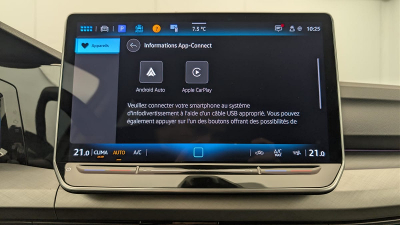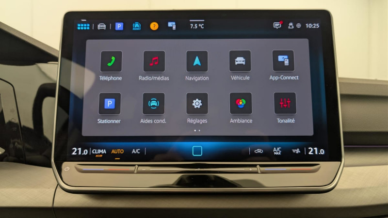 Oeillets d'arrimage ISOFIX (dispositif pour fixation de 2 sièges-enfants sur la banquette AR) / Interface téléphone Bluetooth / Rétroviseur intérieur à réglage jour/nuit automatique / Lane Assist: Assistant de maintien dans la voie / Frein de stationnement électromécanique avec fonction d'immobilisation en pente "Auto Hold" et assistant de démarrage en côte / Sellerie en tissu "Maze" / Pack Visibilité : Allumage automatique des feux avec fonctions "Coming Home - Leaving Home" Capteur de pluie avec essuie-glace automatique / Appuis lombaires réglables à l'AV / Airbags frontaux AV conducteur et passager (Airbag passager désactivable) / Park Pilot : Système d'aide au stationnement AV/AR avec signaux sonores et visualisation de la distance des obstacles sur l'écran / Front Assist - Système de surveillance périmétrique avec fonctions de freinage d'urgence en ville et détection des piétons / Side Assist (assistance changement de voie et de sortie de stationnement) / Système Start/Stop avec dispositif de récupération de l'énergie au freinage / Sign Assist: Reconnaissance des panneaux de signalisation et affichage sur le 'Digital Cockpit' et l'écran du système de radionavigation / App-Connect sans fil affichage et contrôle via l'écran tactile du véhicule, du contenu, des fonctions et des applications compatibles présents sur le Smartphone (compatibilité avec les systèmes Apple CarPlay et Android Auto) / Fatigue Détection : système de détection de fatigue du conducteur qui analyse le comportement du conducteur et recommande un temps de repos par l'apparition d'un message visuel et sonore / Projecteurs 100% LED (projecteurs, feux de jour AV, feux AR) / Régulateur de vitesse adaptatif et prédictif ACC avec limiteur de vitesse détecte dans les limites du système et à l'aide d'un capteur radar les véhicules qui précèdent et maintient la distance en intervenant sur les freins et l'accélérateur (régulation active, de 30 à 210 km/h). Le conducteur peut calibrer la distance souhaitée par rapport aux autres automobilistes / Digital Cockpit Pro : combiné d'instruments digital avec écran digital haute résolution de 10,25" / Jantes en alliage 16'' "Norfolk" pneumatiques 205/55 R16 / Climatisation "Air Care Climatronic" 3 zones et filtre anti-allergène et éléments de commandes à l'AR / Rétroviseurs extérieurs à réglage, rabattement et dégivrage électriques, avec fonction mémoire /