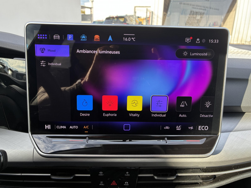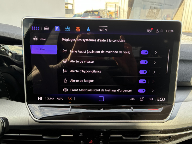 Activation automatique du signal de détresse en cas de freinage d'urgence / Caméra de recul "Rear View" caméra de recul avec visualisation de la zone située AR du véhicule sur l'écran de la radio ou de la radionavigation / Ceintures de sécurité automatiques AV 3 points à enrouleur, réglables en hauteur, avec prétentionneurs / Climatisation "Air Care Climatronic" 3 zones et filtre anti-allergène et éléments de commandes à l'AR / eCall : Appel d'urgence manuel ou automatique / Eclairage à LED de la plaque d'immatriculation AR / Frein de stationnement électromécanique avec fonction d'immobilisation en pente "Auto Hold" et assistant de démarrage en côte / Jantes en alliage léger 17" 'Nottingham' avec pneumatiques 225/45 R17 94W XL à résistance au roulement optimisée / Park Pilot : Système d'aide au stationnement AV/AR avec signaux sonores et visualisation de la distance des obstacles sur l'écran / Pommeau du levier de vitesse cuir / Projecteurs 100% LED (projecteurs, feux de jour AV, feux AR) / Régulateur de vitesse adaptatif et prédictif ACC avec limiteur de vitesse détecte dans les limites du système et à l'aide d'un capteur radar les véhicules qui précèdent et maintient la distance en intervenant sur les freins et l'accélérateur (régulation active, de 0 à 210 km/h ; jusqu'à l'arrêt du véhicule). Le conducteur peut calibrer la distance souhaitée par rapport aux autres automobilistes / Rétroviseur intérieur à réglage jour/nuit automatique / Sign Assist: Reconnaissance des panneaux de signalisation et affichage sur le 'Digital Cockpit' et l'écran du système de radionavigation / Système de freinage anti multicollision: ce dispositif freine automatiquement le véhicule après un premier choc afin de limiter le risque de multicollision / Système de Navigation & Infotainment "Discover" avec "Services de streaming et radio via Internet" via carte eSIM intégrée, Radio 7 HP et écran couleur tactile 12,9" avec projection de la cartographie dans l'écran du "Digital Cockpit Pro" / 2 interfaces USB-C à l'AV / 2 lampes de lecture à l'AV et à l'AR / 2 prises de chargement USB-C derrière l'accoudoir pour les passagers AR / Accoudoir central AR rabattable avec 2 portes-boissons / Accoudoir central AV réglable en hauteur et en profondeur avec compartiment de rangement / Airbags de tête pour passagers AV/AR / Airbags frontaux AV conducteur et passager (Airbag passager désactivable) / App-Connect sans fil affichage et contrôle via l'écran tactile du véhicule, du contenu, des fonctions et des applications compatibles présents sur le Smartphone (compatibilité avec les systèmes Apple CarPlay et Android Auto) / Application décorative "Nature Cross Brushed" pour tableau de bord et les revêtements de portes AV / Appuis lombaires réglables à l'AV / Assistant de changement de voie avec détecteurs d?angle mort 'Side Assist' / Avertisseur sonore et lumineux pour ceintures non attachées AV/AR / Cache-bagages amovible / Cerclage chromé des commandes des vitres, de réglage des rétroviseurs et des aérateurs / Commande vocale (IDA) avec amplificateur de voix électronique / Correcteur électronique de trajectoire ESP, amplificateur de freinage d'urgence, antiblocage des roues ABS, blocage électronique de différentiel EDS, répartiteur électronique de freinage EBV, antipatinage électronique ASR, régulateur électronique de couple MSR et assistance au contrebraquage / Câble adaptateur USB-C vers USB-A / Digital Cockpit Pro : combiné d'instruments digital avec écran digital haute résolution de 10,25" / Eclairage d'ambiance 10 couleurs / Eclairage d'ambiance extérieur poignées de portes éclairées et éclairage périmétrique avec projection du logo / Ecrous antivol / Essuie-glace AR intermittent avec lave-glace / Fatigue Détection : système de détection de fatigue du conducteur qui analyse le comportement du conducteur et recommande un temps de repos par l'apparition d'un message visuel et sonore / Feu AR de brouillard d'un côté, feux de recul des deux côtés / Front Assist - Système de surveillance périmétrique avec fonctions de freinage d'urgence en ville et détection des piétons / Indicateur de température extérieure avec avertisseur de gel / Interface téléphone Bluetooth / Kit de dépannage : compresseur 12 V et produit d'étanchéité de pneu / Lane Assist: Assistant de maintien dans la voie / Mesures de protection des piétons supplémentaires / Miroirs de courtoisie éclairés dans les pare-soleils / Oeillets d'arrimage ISOFIX (dispositif pour fixation de 2 sièges-enfants sur la banquette AR) / Pare-chocs, boîtiers de rétroviseurs extérieurs et poignées de portes dans la couleur carrosserie / Prise 12 V dans le coffre / Préparation pour "VW Connect" et "VW Connect Plus" / Revêtement de porte et latéral en feuille de mousse et tissu / Réglage du site des phares / Rétroviseurs extérieurs à réglage, rabattement et dégivrage électriques, avec fonction mémoire / Service d'appel d'urgence (inclus 10 ans et disponible indépendamment de l'inscription dans le système d'infotainment) / Système Start/Stop avec dispositif de récupération de l'énergie au freinage / Tapis de sol AV/AR / Verrouillage centralisé avec télécommande à fréquence radio par clé rétractable / XDS : Système agissant comme un différentiel autobloquant électronique permettant une meilleure motricité en courbe grâce à une répartition optimale de la puissance et du couple sur les roues AV