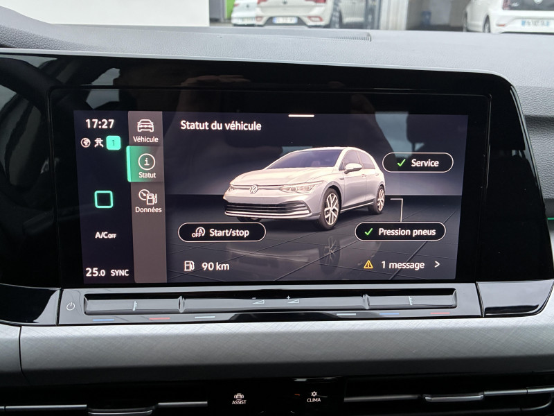 Activation automatique du signal de détresse en cas de freinage d'urgence / Ceintures de sécurité automatiques AV 3 points à enrouleur, réglables en hauteur, avec prétentionneurs / E-call service: Appel d'urgence manuel ou automatique / Eclairage à LED de la plaque d'immatriculation AR / Frein de stationnement électromécanique avec fonction d'immobilisation en pente "Auto Hold" et assistant de démarrage en côte / Jantes alliage léger "Norfolk" 7Jx16" avec pneumatiques 205/55 R16 avec écrous antivol / Pommeau du levier de vitesse cuir / Projecteurs AV à LED avec feux de jour à LED / Rétroviseur intérieur à réglage jour/nuit automatique / Side Assist (assistance changement de voie et de sortie de stationnement) / Système de freinage anti multicollision: ce dispositif freine automatiquement le véhicule après un premier choc afin de limiter le risque de multicollision / Système Navigation & Infotainment "Discover Media" avec Services de streaming et radio via Internet via carte eSIM intégreé, reprenant les fonctionnalités du ?Ready 2 Discover?, avec en plus Système de navigation, Affichage de la carte en 2D, Trois calculs d'itinéraire possible, Affichage des logos des Points d'intérets choisis, des limitations de vitesse, des zones de danger et du panneau de sortie d'autoroute arrivant, Affichage des limitations spécifiques applicables dans un pays étranger, Préparation pour ?We Connect? et ?We Connect Plus? / 2 interfaces USB-C à l'AV / 2 prises de chargement USB-C derrière l'accoudoir pour les passagers AR / 2 spots de lecture AV et 2 spots AR / Accoudoir central AR rabattable avec 2 portes-boissons / Accoudoir central AV réglable en hauteur et en longueur avec compartiment de rangement / Airbags de tête pour passagers AV/AR / Airbags frontaux AV conducteur et passager (Airbag passager désactivable) / App-Connect sans fil: affichage et contrôle via l'écran tactile de la voiture, du contenu, des fonctions et des applications compatibles présents sur le Smartphone (compatibilité avec les systèmes Apple CarPlay et Android Auto). Fonction sans fil uniquement disponible avec Apple CarPlay / Applications décoratives "Nature Crossed Brushed" sur tableau de bord et revêtements de portes / Appuis lombaires réglables à l'AV / Avertisseur sonore et témoin d'oubli du port de la ceinture de sécuritéà l'AV et à l'AR / Cache-bagages amovible / Cerclage chromé des commandes des vitres, de réglage des rétroviseurs et des aérateurs / Climatiseur "Air Care Climatronic" 3 zones et filtre anti-allergène et éléments de commandes à l'AR / Correcteur électronique de trajectoire ESP, amplificateur de freinage d'urgence, antiblocage des roues ABS, blocage électronique de différentiel EDS, répartiteur électronique de freinage EBV, antipatinage électronique ASR, régulateur électronique de couple MSR et assistance au contrebraquage / Câble adaptateur USB-C vers USB-A / Digital Cockpit Pro : combiné d'instruments digital avec écran digital haute résolution de 10,25" / Eclairage d'ambiance - 10 couleurs / Eclairage d'ambiance extérieur poignées de portes éclairées et éclairage périmétrique avec projection du logo / Ecrous antivol / Essuie-glace AR intermittent avec lave-glace / Fatigue Detection : système de détection de fatigue du conducteur qui analyse le comportement du conducteur et recommande un temps de repos par l'apparition d'un message visuel et sonore / Feu AR de brouillard d'un côté, feux de recul des 2 côtés / Front Asisst avec détecteur des piétons / Indicateur de température extérieure avec avertisseur de gel / Interface téléphone Bluetooth / Lane Assist: Assistant de maintien dans la voie / Mesures supplémentaires de protection des piétons / Miroirs de courtoisie éclairés dans les pare-soleils / Oeillets d'arrimage ISOFIX (dispositif pour fixation de 2 sièges-enfants sur la banquette AR) / Pare-chocs, boîtiers de rétroviseurs extérieurs et poignées de portes dans la couleur carrosserie / Prise 12 V dans le coffre / Préparation pour "VW Connect" et "VW Connect Plus" vous permet d'obtenir des informations sur votre véhicule directement sur votre smartphone. Application totalement gratuite et facile à utiliser. Produit 100% compatible avec votre Volkswagen et garantie constructeur préservée. Aperçu de toutes les données de votre véhicule et des prochaines maintenances à effectuer. Sécurité totale des données grâce à un cryptage / Rangement et prise 12 V à l'AV / Revêtement de porte et latéral en feuille de mousse et tissu / Roue de secours à encombrement réduit / Réglage du site des phares, manuel / Régulateur de vitesse adaptatif et prédictif ACC avec limiteur de vitesse / Rétroviseurs extérieurs à réglage, rabattement et dégivrage électriques, avec fonction mémoire / Service d'appel d'urgence (inclus 10 ans et disponible indépendamment de l?inscription dans le système d?infotainment) / Système Start/Stop avec récupération d'énergie au freinage / Tapis de sol AV/AR / Technologie Car2X Technologie de communication entre véhicules et avec les infrastructures routières / Verrouillage centralisé avec télécommande à fréquence radio par clé rétractable / Vitres athermiques teintées vertes / XDS : Système agissant comme un différentiel autobloquant électronique permettant une meilleure motricité en courbe grâce à une répartition optimale de la puissance et du couple sur les roues AV