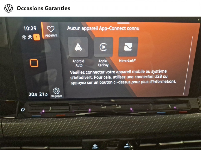 Activation automatique du signal de détresse en cas de freinage d'urgence / Ceintures de sécurité automatiques AV 3 points à enrouleur, réglables en hauteur, avec prétentionneurs / E-call service: Appel d'urgence manuel ou automatique / Eclairage de plancher à LED à l'AV avec possibilité de sélectionner la couleur d'éclairage / Eclairage à LED de la plaque d'immatriculation AR / Frein de stationnement électromécanique avec fonction d'immobilisation en pente "Auto Hold" et assistant de démarrage en côte / Jantes alliage "Valencia" 7Jx17" avec écrous antivol et pneus 225/45 R17 / Light Assist : Régulation automatique des feux de route / Projecteurs LED Plus avec fonction antibrouillard intégrée et éclairage statique d'intersection / Rear Assist: Caméra de recul avec visualisation de la zone située à l'AR du véhicule sur l?écran de la radio ou de la radionavigation / Rétroviseur intérieur à réglage jour/nuit automatique / Système de freinage anti multicollision: ce dispositif freine automatiquement le véhicule après un premier choc afin de limiter le risque de multicollision / Système de Navigation & Infotainment "Discover Media" avec écran tactile 10" / Volant sport multifonctions cuir avec retour haptique / 2 interfaces USB-C à l'AV / 2 prises de chargement USB-C derrière l'accoudoir pour les passagers AR / 2 spots de lecture AV et 2 spots AR / Accoudoir central AR rabattable avec 2 portes-boissons / Accoudoir central AV réglable en hauteur et en profondeur avec compartiment de rangement / Airbags de tête pour passagers AV/AR / Airbags frontaux AV conducteur et passager (Airbag passager désactivable) / App-Connect sans fil, affichage et contrôle via l'écran tactile de la voiture du contenu, des fonctions et des applications compatibles présents sur le Smartphone (compatibilité avec les systèmes Apple CarPlay et Android Auto). Fonction sans fil uniquement disponible avec Apple CarPlay / Applications décoratives "Carbon Grey" pour le tableau de bord et les revêtements de porte à l'AV / Assistant de conduite "Travel Assist" avec "Emergency Assist" / Avertisseur sonore et lumineux pour ceintures non attachées AV et AR / Baguette lumineuse entre les projecteurs / Bas de caisse et spoiler spécifiques R-Line / Cache-bagages amovible / Calandre spécifique R-Line laquée noir avec Logo R / Cerclage chromé des commandes des vitres, de réglage des rétroviseurs et des aérateurs / Climatiseur "Air Care Climatronic" 3 zones et filtre anti-allergène et éléments de commandes à l'AR / Correcteur électronique de trajectoire ESP, amplificateur de freinage d'urgence, antiblocage des roues ABS, blocage électronique de différentiel EDS, répartiteur électronique de freinage EBV, antipatinage électronique ASR, régulateur électronique de couple MSR et assistance au contrebraquage / Câble adaptateur USB-C vers USB-A / Digital Cockpit Pro : combiné d'instruments digital avec écran digital haute résolution de 10,25" / Eclairage d'ambiance 30 couleurs / Eclairage d'ambiance extérieur poignées de portes éclairées et éclairage périmétrique avec projection du logo / Essuie-glace AR intermittent avec lave-glace / Fatigue Detection : système de détection de fatigue du conducteur qui analyse le comportement du conducteur et recommande un temps de repos par l'apparition d'un message visuel et sonore / Feu AR de brouillard d'un côté, feux de recul des deux côtés / Front Asisst avec détecteur des piétons / Indicateur de température extérieure avec avertisseur de gel / Interface téléphone Bluetooth / Keyless Access Advanced sans alarme : Système de verrouillage/déverrouillage et de démarrage sans clé / Kit de dépannage : compresseur 12 V et produit d'étanchéité de pneu / Mesures supplémentaires de protection des piétons / Miroirs de courtoisie éclairés dans les pare-soleils / Oeillets d'arrimage ISOFIX (dispositif pour fixation de 2 sièges-enfants sur la banquette AR) / Pare chocs AV/AR spécifique R-Line / Pare-chocs, boîtiers de rétroviseurs extérieurs et poignées de portes dans la couleur carrosserie / Prise 12 V dans le coffre / Préparation pour "VW Connect" et "VW Connect Plus" vous permet d'obtenir des informations sur votre véhicule directement sur votre smartphone. Application totalement gratuite et facile à utiliser. Produit 100% compatible avec votre Volkswagen et garantie constructeur préservée. Aperçu de toutes les données de votre véhicule et des prochaines maintenances à effectuer. Sécurité totale des données grâce à un cryptage / Pédalier et repose-pied en acier inoxydable brossé / Rangement et prise 12 V à l'AV / Revêtement de porte et latéral en feuille de mousse et tissu / Réglage du site des phares / Régulateur de vitesse adaptatif et prédictif ACC avec limiteur de vitesse / Rétroviseurs extérieurs à réglage, rabattement et dégivrage électriques, avec fonction mémoire / Service d'appel d'urgence / Sièges AV sports specifique R-Line, appui-tetes intégrés, appuis lombaires AV / Système Start/Stop avec dispositif de récupération de l'énergie au freinage / Sélection du profil de conduite / Tapis de sol AV/AR / Technologie Car2X Technologie de communication entre véhicules et avec les infrastructures routières / Trains roulants sport / Verrouillage centralisé avec télécommande à fréquence radio par clé rétractable / Vitres athermiques teintées vertes / XDS : Système agissant comme un différentiel autobloquant électronique permettant une meilleure motricité en courbe grâce à une répartition optimale de la puissance et du couple sur les roues AV