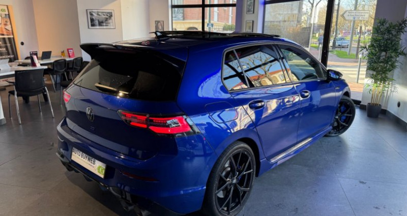 Cylindrée : 1984 cm3 EQUIPEMENTS DE SERIE ========================= 2 interfaces USB-C a l'AV 2 prises de chargement USB-C derriere l'accoudoir pour les passagers AR 2 profils de conduite supplementaires: Drift et Special 2 spots de lecture AV et 2 spots AR Accoudoir central AR rabattable avec 2 portes-boissons Accoudoir central AV reglable en hauteur et en longueur avec compartiment de rangement Accoudoir central AV reglable en hauteur et en profondeur avec compartiment de rangement Acoustique de lechappement optimisee Activation automatique du signal de detresse en cas de freinage d'urgence Airbag central entre les sieges AV Airbags de tete pour passagers AV/AR Airbags frontaux AV conducteur et passager (Airbag passager desactivable) Airbags lateraux AV Alerte de perte de pression des pneus App-Connect sans fil, affichage et controle via l'ecran tactile de la voiture du contenu, Application decorative en carbone veritable Appuis-tete AR reglables en hauteur Assistant de conduite Travel Assist avec Emergency Assist Avertisseur sonore et lumineux pour ceintures non attachees AV et AR Avertisseur sonore et temoin d'oubli du port de la ceinture de securite a l'AV et a l'AR Badges GTI sur les ailes AV et inscription GTI sur le hayon Baguette LED Baguette lumineuse entre les projecteurs Banquette AR rabattable 2/3-1/3 avec trappe a skis Becquet AR de pavillon 'R-performance' Blocage electronique du differentiel XDS Cable adaptateur USB-C vers USB-A Cache-bagages amovible Cache-moyeu dynamique avec logo R Camera de recul Rear View Ceintures de securite automatiques AV 3 points a enrouleur, reglables en hauteur, Cerclage chrome des commandes des vitres, de reglage des retroviseurs et des aerateurs Chargeur induction Chassis sport specifique R Ciel de pavillon Noir Soul Cle avec logo R en bleu Climatiseur Air Care Climatronic 3 zones et filtre anti-allergene et elements de commandes a l'AR Coques de retroviseurs exterieurs Chrome mat, avec support noir Correcteur electronique de trajectoire ESP, amplificateur de freinage d'urgence, antiblocage des DCC: Systeme d'amortissement pilote avec selection du profil de conduite Diffuseur AR specifique R laque noir Digital Cockpit Pro : combine d'instruments digital avec ecran digital haute resolution de 10,25 Direction progressive specifique R Disques de frein 18 a l'AV et 17 a l'AR Double sortie d'echappement chromee a gauche et double sortie d'echappement chromee a droite E-call service: Appel d'urgence manuel ou automatique Eclairage a LED de la plaque d'immatriculation AR Eclairage d'ambiance 30 couleurs Eclairage d'ambiance exterieur Eclairage de plancher a LED a l'AV avec possibilite de selectionner la couleur d'eclairage Elements de carrosserie specifiques 'GTI Clubsport Elements de carrosserie specifiques R-Performance Emotional Start Essuie-glace AR intermittent avec lave-glace Etriers de frein bleus a l'AV et a l'AR avec logo R AV Fatigue Detection : systeme de detection de fatigue du conducteur qui analyse le comportement du Feu AR de brouillard d'un cote, feux de recul des deux cotes Feux AR a LED avec clignotants AR defilants Frein de stationnement electromecanique avec fonction d'immobilisation en pente Auto Hold et Front Asisst avec detecteur des pietons Housse de protection R 20 ans Indicateur de temperature exterieure avec avertisseur de gel Inserts decoratifs en carbone veritable Interface telephone Bluetooth Jantes en alliage leger 7,5J x 19 Estoril, pneumatiques sport 225/40 R19 avec ecrous antivol en Keyless Access Advanced sans alarme : Systeme de verrouillage/deverrouillage et de demarrage sans Kit de depannage : compresseur 12 V et produit d'etancheite de pneu Lane Assist: Assistant de maintien dans la voie Limitation electronique de vitesse maximale portee a 270 km/h Lisere bleu dans la calandre et les phares Lisere rouge dans la calandre et les phares Mesures supplementaires de protection des pietons Miroirs de courtoisie eclaires dans les pare-soleils Monogramme 20 sur le montant central Monogrammes R sur la calandre et le hayon, badges R sur les ailes AV en bleu Oeillets d'arrimage ISOFIX (dispositif pour fixation de 2 sieges-enfants sur la banquette AR) Pack R-Performance Pack Visibilite Pare chocs AV/AR specifique R Pare-chocs et poignees de portes dans la couleur carrosserie Pare-chocs, boitiers de retroviseurs exterieurs et poignees de portes dans la couleur carrosserie Park Assist: Systeme d'assistance au stationnement en creneauet et en bataille ParkPilot, aide au stationnement AV/AR Pedalier et repose-pied en acier inoxydable brosse Peinture unie Peinture unie Blanc Pur Preparation pour VW Connect et VW Connect Plus Prise 12 V dans le coffre Projecteurs antibrouillard avec feux de braquage Projecteurs IQ.Light - Matrix LED Projecteurs IQ.Light, Matrix LED Protection antidemarrage Rangement et prise 12 V a l'AV Rear Assist: Camera de recul avec visualisation de la zone situee a l'AR du vehicule Reception radio numerique DAB+ Reglage du site des phares Reglage du site des phares, manuel Regulateur de vitesse adaptatif et predictif ACC avec limiteur de vitesse Retroviseur interieur a reglage jour/nuit automatique Retroviseurs exterieurs a reglage, rabattement et degivrage electriques, avec fonction memoire Retroviseurs exterieurs avec degivrage separe Retroviseurs exterieurs rabattables electriquement Retroviseurs exterieurs rabattables et reglables electriquement Retroviseurs exterieurs reglables electriquement Revetement de porte et lateral en feuille de mousse et tissu Selection du profil de conduite Sellerie cuir Nappa R perfore Sellerie cuir Vienna Volkswagen R Service d'appel d'urgence Siege conducteur a reglage electriques et a memoire Sieges AV chauffants et avec climatisation active Sieges sport a l'AV specifiques R avec appuis-tete integres avec Logo R Sieges sport a l'AV specifiques R avec appuis-tete integres avec Logo R et sellerie en cuir Sign Assist: Reconnaissance des panneaux de signalisation Sortie d'ec