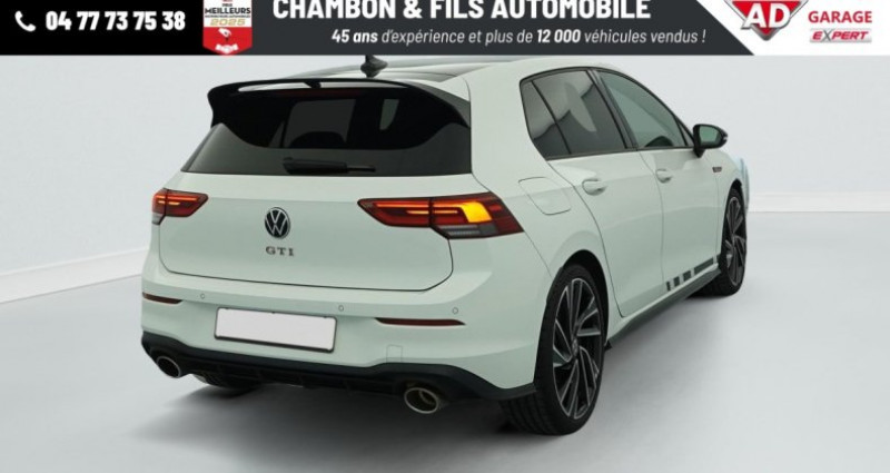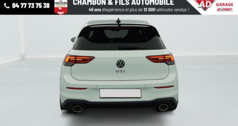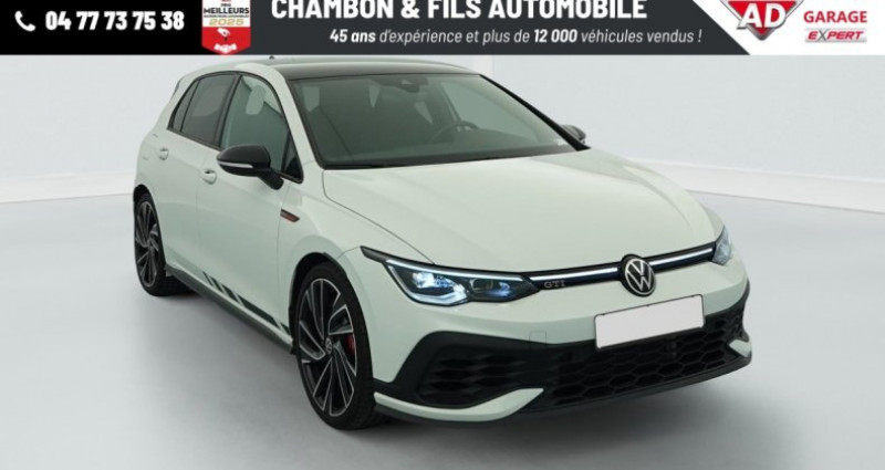Référence : 377018 Cylindrée : 1984 cm3 8 2.0 TSI 300 DSG7 GTI CLUBSPORT, essence, blanc, 01/12/2022, Climatiseur Air Care Climatronic 1 zone, Pack Black Style : Coques de rétroviseurs extérieurs noir brillant Projecteurs avec fond noir Diffuseur arrière noir y compris le dessin des sorties d'échappement : option incluse (valeur : 510 Eur TTC), Projecteurs LED Plus haute performance avec éclairage de jour à LED, Accoudoir central AV réglable en hauteur et en longueur avec compartiment de rangement, Fatigue Detection : système de détection de fatigue du conducteur qui analyse le comportement du conducteur et recommande un temps de repos par l'apparition d'un message visuel et sonore, Vitres AR et lunette AR surteintées à 65 %, Peinture unie Blanc Pur, Prise 12 V dans le coffre, Airbags latéraux AV, Système Start/Stop avec récupération d'énergie au freinage, Oeillets d'arrimage ISOFIX (dispositif pour fixation de 2 sièges-enfants sur la banquette AR), ParkPilot, aide au stationnement AV/AR, Interface téléphone Bluetooth, Sign Assist: Reconnaissance des panneaux de signalisation, Rétroviseur intérieur à réglage jour/nuit automatique, Sellerie sport spécifique en microfibre/tissu, Lane Assist: Assistant de maintien dans la voie, Interface pour téléphone mobile Comfort avec fonction de charge inductive : option incluse (valeur : 530 Eur TTC), App-Connect sans fil: affichage et contrôle via l'écran tactile de la voiture, du contenu, des fonctions et des applications compatibles présents sur le Smartphone (compatibilité avec les systèmes Apple CarPlay et Android Auto). Fonction sans fil uniquement disponible avec Apple CarPlay, Frein de stationnement électromécanique avec fonction d'immobilisation en pente Auto Hold et assistant de démarrage en côte, Régulateur de vitesse adaptatif et prédictif ACC avec limiteur de vitesse, Front Asisst avec détecteur des piétons, Accoudoir central AV et AR, Rangement et prise 12 V à l'AV, Banquette AR rabattable 2/3-1/3 avec trappe à skis, Réception radio numérique DAB+, Caméra de recul Rear View, Airbags frontaux AV conducteur et passager (Airbag passager désactivable), Eclairage d'ambiance 30 couleurs, 2 interfaces USB-C à l'AV, Baguette lumineuse entre les projecteurs, Ciel de pavillon Noir Soul, Digital Cockpit Pro : combiné d'instruments digital avec écran digital haute résolution de 10, 25, 2 prises de chargement USB-C derrière l'accoudoir pour les passagers AR, Volant sport multifonction en cuir spécifiqque GTI Clubsport palettes au volant, commandes tactiles et retour haptique, avec surpiqures rouges, Sièges AV sport spécifique GTI Clubsport, appui-tetes intégrés, appuis lombaires AV, Assistant de conduite Travel Assist, Jantes alliage léger Adelaide 7, 5 J x 19 avec pneu 235/35 R19, Pack Visibilité : Allumage automatique des feux avec fonctions Coming Home - Leaving Home Capteur de pluie avec essuie-glace automatique, Système de Navigation & Infotainment Discover Media avec écran tactile 10, Vitres AV/AR électriques, Volant réglable en hauteur et en profondeur, Alerte de perte de pression des pneus, Rétroviseurs extérieurs à réglage, rabattement et dégivrage électriques, avec fonction mémoire, Pack Hiver : Buses de lave-glace AV chauffantes Sièges AV chauffants Volant multifonctions en cuir chauffant : option incluse (valeur : 510 Eur TTC) OPTIONS/EQUIPEMENTS : - Jantes alliage, Pack Visibilité, Sièges Arr. Rabattables Vendeur à contacter : CHAMBON & FILS AUTOMOBILE Téléphone à contacter : 04 77 73 23 51