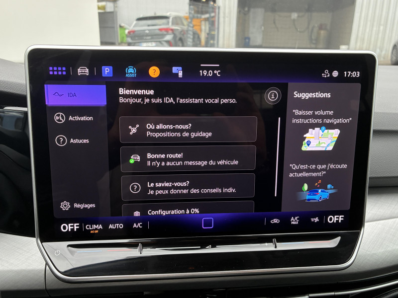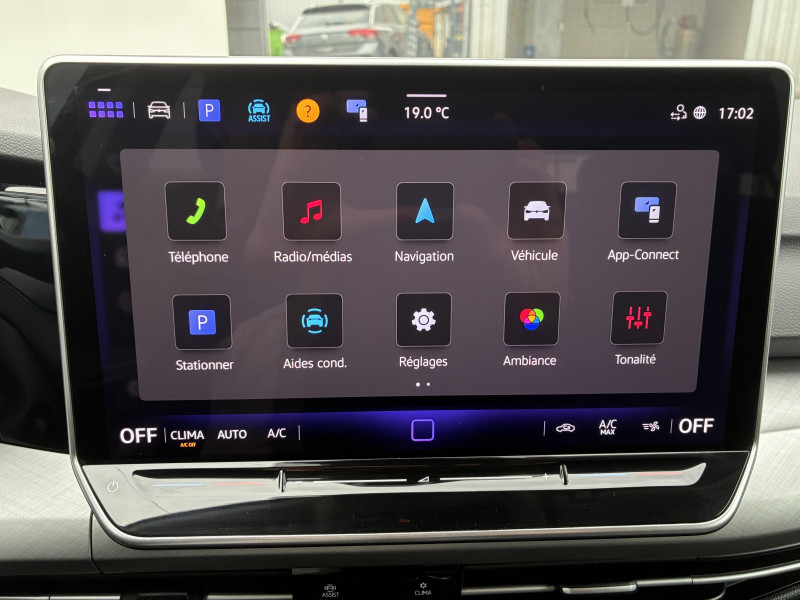 Activation automatique du signal de détresse en cas de freinage d'urgence / Assistant aux manoeuvres de stationnement "Park Assist" / Caméra de recul "Rear View" caméra de recul avec visualisation de la zone située AR du véhicule sur l'écran de la radio ou de la radionavigation / Ceintures de sécurité automatiques AV 3 points à enrouleur, réglables en hauteur, avec prétentionneurs / Climatisation "Air Care Climatronic" 3 zones et filtre anti-allergène et éléments de commandes à l'AR / Cross Traffic Alert?: assistant d?intersection qui détecte les véhicules circulant en sens perpendiculaire et vous avertit par un signal visuel et sonore. Il peut déclencher un freinage d?urgence pour atténuer l?impact d?une collision ou même mieux, l?éviter, (Les outils d?aide à la conduite automobile ne dispensent pas le conducteur d?être vigilant.) / eCall : Appel d'urgence manuel ou automatique / Eclairage à LED de la plaque d'immatriculation AR / Frein de stationnement électromécanique avec fonction d'immobilisation en pente "Auto Hold" et assistant de démarrage en côte / Front Assist - Système de surveillance périmétrique avec fonctions de freinage d'urgence en ville et détection des piétons. L?assistance au freinage d?urgence autonome (Front Assist) peut détecter des collisions frontales imminentes et avertir avant qu?elles ne surviennent. De plus, le système peut fournir au conducteur une assistance pendant le freinage et la manoeuvre d?évitement de l?obstacle, et freiner le véhicule de façon automatique. / Jantes en alliage léger 17" "Nottingham" avec pneumatiques 225/45 R17 94W XL à résistance au roulement optimisée / Park Pilot : Système d'aide au stationnement AV/AR avec signaux sonores et visualisation de la distance des obstacles sur l'écran / Pommeau du levier de vitesse cuir / Projecteurs 100% LED (projecteurs, feux de jour AV, feux AR) / Régulateur de vitesse adaptatif et prédictif ACC avec limiteur de vitesse détecte dans les limites du système et à l'aide d'un capteur radar les véhicules qui précèdent et maintient la distance en intervenant sur les freins et l'accélérateur (régulation active, de 30 à 210 km/h). Le conducteur peut calibrer la distance souhaitée par rapport aux autres automobilistes / Régulation automatique des feux de route "Light Assist" / Rétroviseur intérieur à réglage jour/nuit automatique / Sign Assist: Reconnaissance des panneaux de signalisation et affichage sur le 'Digital Cockpit' et l'écran du système de radionavigation / Système de freinage anti multicollision: ce dispositif freine automatiquement le véhicule après un premier choc afin de limiter le risque de multicollision / Système de Navigation & Infotainment "Discover" avec "Services de streaming et radio via Internet" via carte eSIM intégrée, Radio 7 HP et écran couleur tactile 12,9" avec projection de la cartographie dans l'écran du "Digital Cockpit Pro" / 2 interfaces USB-C à l'AV / 2 lampes de lecture à l'AV et à l'AR / 2 prises de chargement USB-C derrière l'accoudoir pour les passagers AR / Accoudoir central AR rabattable avec 2 portes-boissons / Accoudoir central AV réglable en hauteur et en profondeur avec compartiment de rangement / Airbags de tête pour passagers AV/AR / Airbags frontaux AV conducteur et passager (Airbag passager désactivable) / App-Connect sans fil affichage et contrôle via l'écran tactile du véhicule, du contenu, des fonctions et des applications compatibles présents sur le Smartphone (compatibilité avec les systèmes Apple CarPlay et Android Auto) / Application décorative "Nature Cross Brushed" pour tableau de bord et les revêtements de portes AV / Appuis lombaires réglables à l'AV / Assistant de changement de voie avec détecteurs d?angle mort 'Side Assist' / Avertisseur sonore et lumineux pour ceintures non attachées AV/AR / Boîte de vitesse manuelle 6 rapports / Cache-bagages amovible / Cerclage chromé des commandes des vitres, de réglage des rétroviseurs et des aérateurs / Commande vocale (IDA) avec amplificateur de voix électronique / Contrôle de la traction (TCS) / Correcteur électronique de trajectoire ESP, amplificateur de freinage d'urgence, antiblocage des roues ABS, blocage électronique de différentiel EDS, répartiteur électronique de freinage EBV, antipatinage électronique ASR, régulateur électronique de couple MSR et assistance au contrebraquage / Câble adaptateur USB-C vers USB-A / Digital Cockpit Pro : combiné d'instruments digital avec écran digital haute résolution de 10,25" / Eclairage d'ambiance 10 couleurs / Eclairage d'ambiance extérieur poignées de portes éclairées et éclairage périmétrique avec projection du logo / Ecrous antivol / Essuie-glace AR intermittent avec lave-glace / Fatigue Détection : système de détection de fatigue du conducteur qui analyse le comportement du conducteur et recommande un temps de repos par l'apparition d'un message visuel et sonore / Feu AR de brouillard d'un côté, feux de recul des 2 côtés / Indicateur de température extérieure avec avertisseur de gel / Interface téléphone Bluetooth / Lane Assist: Assistant de maintien dans la voie / Mesures de protection des piétons supplémentaires / Miroirs de courtoisie éclairés dans les pare-soleils / Oeillets d'arrimage ISOFIX (dispositif pour fixation de 2 sièges-enfants sur la banquette AR) / Pare-chocs, boîtiers de rétroviseurs extérieurs et poignées de portes dans la couleur carrosserie / Prise 12 V dans le coffre / Préparation pour "VW Connect" et "VW Connect Plus" / Revêtement de porte et latéral en feuille de mousse et tissu / Roue de secours à encombrement réduit avec cric / Réglage du site des phares / Rétroviseurs extérieurs à réglage, rabattement et dégivrage électriques, avec fonction mémoire / Service d'appel d'urgence (inclus 10 ans et disponible indépendamment de l'inscription dans le système d'infotainment) / Système Start/S