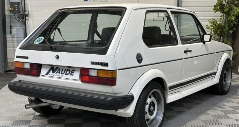 VOLKSWAGEN GOLF 1 GTI 1800 110ch - Kit BBS - Restaurée - Véhicule visible uniquement sur rendez-vous, du lundi au vendredi de 9h30 à 18h00 et le samedi de 10h00 à 16h00 - Les véhicules de plus de 20 ans ou de plus de 200 000 kms sont vendus sans garantie commerciale. Prix hors frais de formalités de 390 euros et carte grise en fonction du département. Reprise possible de votre ancien véhicule. - Contactez Matteo de l'agence NAUDE AUTOMOBILES CHAPONOST pour ce véhicule. - Les plus de ce véhicule : - Véhicule entièrement restauré en 2016 - Entretien à jour (Révision et contrôle technique de 2025) - Dossier disponible - Carte grise Véhicule de collection délivrée par la FFVE ======= EQUIPEMENTS DE SERIE ======= Jantes Alliage BBS 15 pouces Autoradio Pioneer avec Bluetooth Chauffage Ventilation Compte-tours avec instrumentation (pression température d'huile) Doubles optiques à l'avant Essuie-glace arrière Kit BBS Levier de vitesse type balle de golf Liseré rouge sur la calandre Logo GTI sur calandre et hayon Sièges sport Volant Sport GTI Nb. Vitesses : 5 Conso Mixte : l/100
