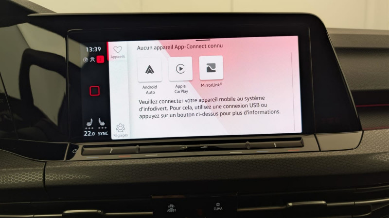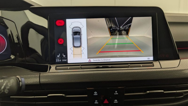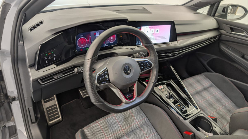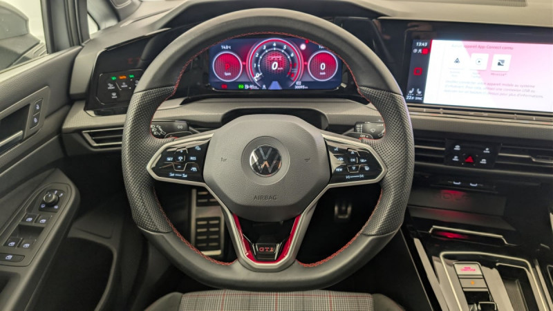 Projecteurs LED Plus haute performance avec éclairage de jour à LED / Fatigue Detection : système de détection de fatigue du conducteur qui analyse le comportement du conducteur et recommande un temps de repos par l'apparition d'un message visuel et sonore / Prise 12 V dans le coffre / Système Start/Stop avec récupération d'énergie au freinage / Oeillets d'arrimage ISOFIX (dispositif pour fixation de 2 sièges-enfants sur la banquette AR) / Sélection du profil de conduite / Interface téléphone Bluetooth / Lane Assist: Assistant de maintien dans la voie / App-Connect sans fil: affichage et contrôle via l'écran tactile de la voiture, du contenu, des fonctions et des applications compatibles présents sur le Smartphone (compatibilité avec les systèmes Apple CarPlay et Android Auto). Fonction sans fil uniquement disponible avec Apple CarPlay / Frein de stationnement électromécanique avec fonction d'immobilisation en pente "Auto Hold" et assistant de démarrage en côte / Régulateur de vitesse adaptatif et prédictif ACC avec limiteur de vitesse / Front Asisst avec détecteur des piétons / Cerclage chromé des commandes des vitres, de réglage des rétroviseurs et des aérateurs / Rangement et prise 12 V à l'AV / Climatiseur "Air Care Climatronic" 3 zones et filtre anti-allergène et éléments de commandes à l'AR / Airbags frontaux AV conducteur et passager (Airbag passager désactivable) / Eclairage d'ambiance 30 couleurs / 2 interfaces USB-C à l'AV / Sellerie en tissu "Scale paper" / Baguette lumineuse entre les projecteurs / Ciel de pavillon Noir Soul / Sièges AV sports specifique GTI, appui-tetes intégrés, appuis lombaires AV / Digital Cockpit Pro : combiné d'instruments digital avec écran digital haute résolution de 10,25" / Volant sport multifonction en cuir spécifiqque "GTI" palettes au volant, commades tactiles et retour haptique / 2 prises de chargement USB-C derrière l'accoudoir pour les passagers AR / Assistant de conduite "Travel Assist" avec "Emergency Assist" / Allumage automatique des feux avec fonctions "Coming Home - Leaving Home" / Système de Navigation & Infotainment "Discover Media" avec écran tactile 10" / Rétroviseurs extérieurs à réglage, rabattement et dégivrage électriques, avec fonction mémoire /