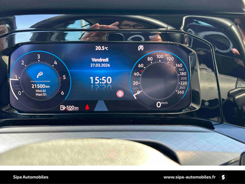 Activation automatique du signal de détresse en cas de freinage d'urgence / E-call service: Appel d'urgence manuel ou automatique / Eclairage à LED de la plaque d'immatriculation AR / Frein de stationnement électromécanique avec fonction d'immobilisation en pente "Auto Hold" et assistant de démarrage en côte / Jantes alliage léger "Norfolk" 7Jx16" avec pneumatiques 205/55 R16 avec écrous antivol / Pommeau du levier de vitesse cuir / Projecteurs AV à LED avec feux de jour à LED / Rétroviseur intérieur à réglage jour/nuit automatique / Système de freinage anti multicollision: ce dispositif freine automatiquement le véhicule après un premier choc afin de limiter le risque de multicollision / Système de navigation "Discover Media Pro" y compris "Streaming & Internet" Radionavigation 7 HP (4x20 W) / 2 interfaces USB-C à l'AV et 2 prises de chargement USB-C derrière laccoudoir pour les passagers AR / Accoudoir central AR rabattable avec 2 portes-boissons / Accoudoir central AV réglable en hauteur et en longueur avec compartiment de rangement / Airbags de tête pour passagers AV/AR / Airbags frontaux AV conducteur et passager (Airbag passager désactivable) / App-Connect sans fil: affichage et contrôle via l'écran tactile de la voiture, du contenu, des fonctions et des applications compatibles présents sur le Smartphone (compatibilité avec les systèmes Apple CarPlay et Android Auto). Fonction sans fil uniquement disponible avec Apple CarPlay / Applications décoratives "Nature Crossed Brushed" sur tableau de bord et revêtements de portes / Appuis lombaires réglables à l'AV / Avertisseur sonore et témoin d'oubli du port de la ceinture de sécuritéà l'AV et à l'AR / Cache-bagages amovible / Ceintures de sécurité AV 3 points à enrouleur, réglables en hauteur, avec prétentionneurs / Cerclage chromé des commandes des vitres, de réglage des rétroviseurs et des aérateurs / Climatiseur "Air Care Climatronic" 3 zones et filtre anti-allergène et éléments de commandes à l'AR / Contrôle vocal intuitif / Correcteur électronique de trajectoire ESP, amplificateur de freinage d'urgence, antiblocage des roues ABS, blocage électronique de différentiel EDS, répartiteur électronique de freinage EBV, antipatinage électronique ASR, régulateur électronique de couple MSR et assistance au contrebraquage / Digital Cockpit : combiné d'instruments digital avec écran digital haute résolution de 10" / Eclairage d'ambiance - 10 couleurs / Eclairage d'ambiance extérieur poignées de portes éclairées et éclairage périmétrique avec projection du logo / Ecran couleur tactile 10" haute résolution (1560 x 700 pixels) / Essuie-glace AR intermittent avec lave-glace / Fatigue Detection : système de détection de fatigue du conducteur qui analyse le comportement du conducteur et recommande un temps de repos par l'apparition d'un message visuel et sonore / Feu AR de brouillard d'un côté, feux de recul des 2 côtés / Front Asisst avec détecteur des piétons / Indicateur de température extérieure avec avertisseur de gel / Interface téléphone Bluetooth / Interface téléphonique avec fonction de charge inductive / Kit de dépannage : compresseur 12 V et produit d'étanchéité de pneu / Lane Assist: Assistant de maintien dans la voie / Mesures supplémentaires de protection des piétons / Miroirs de courtoisie éclairés dans les pare-soleils / Oeillets d'arrimage ISOFIX (dispositif pour fixation de 2 sièges-enfants sur la banquette AR) / Pare-chocs, boîtiers de rétroviseurs extérieurs et poignées de portes dans la couleur carrosserie / Pre Safe Assist - Système proactif de protection des passagers / Prise 12 V dans le coffre / Rangement et prise 12 V à l'AV / Revêtement de porte et latéral en feuille de mousse et tissu / Réglage du site des phares, manuel / Régulateur de vitesse adaptatif et prédictif ACC avec limiteur de vitesse / Rétroviseurs extérieurs à réglage, rabattement et dégivrage électriques, avec fonction mémoire / Service d'appel d'urgence (inclus 10 ans et disponible indépendamment de l?inscription dans le système d?infotainment) / Services "We Connect Plus" 36 mois pour "Discover Pro" / Side Assist (assistance de changement de voie) / Spots de lecture (2) à l'AV / Système Start/Stop avec récupération d'énergie au freinage / Tapis de sol AV/AR / Technologie Car2X Technologie de communication entre véhicules et avec les infrastructures routières / Verrouillage centralisé avec télécommande à fréquence radio par clé rétractable / Vitres athermiques teintées vertes / XDS : Système agissant comme un différentiel autobloquant électronique permettant une meilleure motricité en courbe grâce à une répartition optimale de la puissance et du couple sur les roues AV