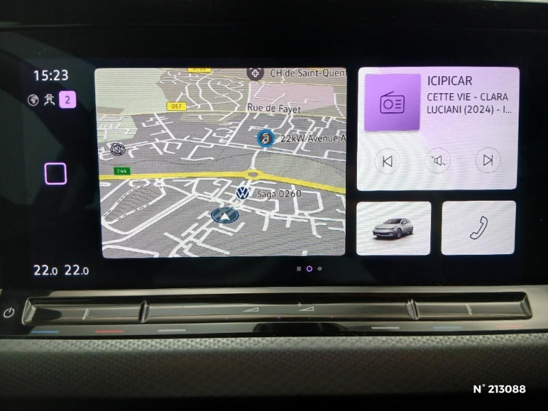Accoudoir central AR rabattable avec 2 portes-boissons / Accoudoir central AV réglable en hauteur et en longueur avec compartiment de rangement / Accoudoir central AV réglable en hauteur et en profondeur avec compartiment de rangement / Activation automatique du signal de détresse en cas de freinage d'urgence / Airbag central entre les sièges AV / Airbags de tête pour passagers AV/AR / Airbags frontaux AV conducteur et passager (Airbag passager désactivable) / App-Connect sans fil: affichage et contrôle via l'écran tactile de la voiture, du contenu, des fonctions et des applications compatibles présents sur le Smartphone (compatibilité avec les systèmes Apple CarPlay et Android Auto). Fonction sans fil uniquement disponible avec Apple CarPlay / Applications décoratives spécifiques pour le tableau de bord et les revêtements de porte AV / Appuis lombaires réglables à l'AV / Avertisseur sonore et lumineux pour ceintures non attachées AV et AR / Avertisseur sonore et témoin d'oubli du port de la ceinture de sécuritéà l'AV et à l'AR / Badges et seuils de porte spécifiques "ACTIVE" / Badges spécifiques "ACTIVE" / Câble adaptateur USB-C vers USB-A / Cache-bagages amovible / Ceintures de sécurité automatiques AV 3 points à enrouleur, réglables en hauteur, avec prétentionneurs / Cerclage chromé des commandes des vitres, de réglage des rétroviseurs et des aérateurs / Chrome sur le bouclier AV et le pare-choc AR / Climatiseur "Air Care Climatronic" 3 zones et filtre anti-allergène et éléments de commandes à l'AR / Correcteur électronique de trajectoire ESP, amplificateur de freinage d'urgence, antiblocage des roues ABS, blocage électronique de différentiel EDS, répartiteur électronique de freinage EBV, antipatinage électronique ASR, régulateur électronique de couple MSR et assistance au contrebraquage / Digital Cockpit Pro : combiné d'instruments digital avec écran digital haute résolution de 10,25" / E-call service: Appel d'urgence manuel ou automatique / Eclairage à LED de la plaque d'immatriculation AR / Eclairage d'ambiance extérieur poignées de portes éclairées et éclairage périmétrique avec projection du logo / Eclairage d'ambiance 30 couleurs / Eclairage de plancher à LED à l'AV avec possibilité de sélectionner la couleur d'éclairage / Mesures supplémentaires de protection des piétons / Miroirs de courtoisie éclairés dans les pare-soleils / Oeillets d'arrimage ISOFIX (dispositif pour fixation de 2 sièges-enfants sur la banquette AR) / Pack Visibilité / Pare-chocs, boîtiers de rétroviseurs extérieurs et poignées de portes dans la couleur carrosserie / Pédalier et repose-pied en acier inoxydable brossé / Peinture unie Gris Urano / Pommeau du levier de vitesse cuir / Préparation pour "VW Connect" et "VW Connect Plus" vous permet d'obtenir des informations sur votre véhicule directement sur votre smartphone. Application totalement gratuite et facile à utiliser. Produit 100% compatible avec votre Volkswagen et garantie constructeur préservée. Aperçu de toutes les données de votre véhicule et des prochaines maintenances à effectuer. Sécurité totale des données grâce à un cryptage / Prise 12 V dans le coffre / Projecteurs LED Plus avec fonction antibrouillard intégrée et éclairage statique d'intersection / Rangement et prise 12 V à l'AV / Réglage du site des phares, manuel / Régulateur de vitesse adaptatif et prédictif ACC avec limiteur de vitesse / Rétroviseur intérieur à réglage jour/nuit automatique / Rétroviseurs extérieurs à réglage, rabattement et dégivrage électriques, avec fonction mémoire / Revêtement de porte et latéral en feuille de mousse et tissu / Sellerie en tissu "Waveform" / Service d'appel d'urgence / Service d'appel d'urgence (inclus 10 ans et disponible indépendamment de l¿inscription dans le système d¿infotainment) / Side Assist (assistance changement de voie et de sortie de stationnement) / Système de freinage anti multicollision: ce dispositif freine automatiquement le véhicule après un premier choc afin de limiter le risque de multicollision / Système de Navigation & Infotainment "Discover Media" avec écran tactile 10" / Système de verrouillage et de démarrage sans clé Keyless Access Advanced / Système Start/Stop avec dispositif de récupération de l'énergie au freinage / Système Start/Stop avec récupération d'énergie au freinage / Tapis de sol AV/AR / Technologie Car2X Technologie de communication entre véhicules et avec les infrastructures routières / Verrouillage centralisé avec télécommande à fréquence radio par clé rétractable / Vitres athermiques teintées vertes / XDS : Système agissant comme un différentiel autobloquant électronique permettant une meilleure motricité en courbe grâce à une répartition optimale de la puissance et du couple sur les roues AV / 2 interfaces USB-C à l'AV / 2 prises de chargement USB-C derrière l'accoudoir pour les passagers AR / 2 spots de lecture AV et 2 spots AR / Essuie-glace AR intermittent avec lave-glace / Fatigue Detection : système de détection de fatigue du conducteur qui analyse le comportement du conducteur et recommande un temps de repos par l'apparition d'un message visuel et sonore / Feu AR de brouillard d'un côté, feux de recul des 2 côtés / Frein de stationnement électromécanique avec fonction d'immobilisation en pente "Auto Hold" et assistant de démarrage en côte / Front Asisst avec détecteur des piétons / Indicateur de température extérieure avec avertisseur de gel / Interface téléphone Bluetooth / Jantes alliage léger "Galway" 7Jx16" avec pneumatiques 205/55 R16 avec écrous antivol / Jantes alliage léger "Galway" 7Jx16" avec pneumatiques 205/55 R16 avec écrous antivol / Keyless Access Advanced sans alarme : Système de verrouillage/déverrouillage et de démarrage sans clé / Kit de dépannage : compresseur 12 V et produit d'étanchéité de pneu / Lane Assis