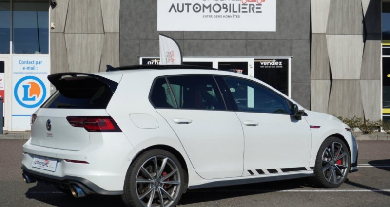 VISITE ET ESSAI SUR RENDEZ-VOUS L'Agence Automobilière d'Héricourt 6 Faubourg de Belfort 70400 Héricourt Cette Golf GTI Clubsport profite d'un pack option généreux qui nous donne une configuration très attrayante: Blanc Oryx avec toit ouvrant à l'extérieur, cuir Vienna à l'intérieur et les options essentielles pour un usage polyvalent. Le véhicule est livré avec les roues d'origine en pneus été et un second pack en pneus hiver visible sur les photos. Entretien complet chez Volkswagen. Blanc Oryx, Pack Cuir Vienna, Pack option généreux, Admission R600, Echappement Miltek (origine fourni), Entretien à jour Volkswagen, Disponible immédiatement, Frais de mise en main: 299€ (détails en agence) tags: 300ch 300cv club sport dsg dsg7 golf8 golf 8 ==================== EQUIPEMENTS ==================== - ABS - Accoudoir - Admission R600 - Affichage tête haute - Aide au démarrage en côte - Airbag(s) - Alarme - Alerte collision - Allumage automatique des feux - Android auto - Anti-brouillards - Apple CarPlay - Avertisseur franchissement de ligne - Banquette rabattable 1/3-2/3 - Blanc Oryx - Bluetooth - Caméra de recul - Chargeur téléphone induction - Châssis sport - Climatisation - Climatisation automatique - Commande vocale - Compteur numérique - Direction assistée - Démarrage sans clé - Détecteur d'angles mort - Détecteur de pluie - Détecteur de somnolence - Détecteur pression des pneus - ESP - Fermeture centralisée à distance - Feux de jour - Fixation Isofix - Freinage actif d'urgence - Frein à main électrique - GPS - Hifi Harman-Kardon - Intérieur cuir - IQ Drive - IQ Light - Jantes aluminium - Jantes en alliage léger 19 'Adelaide' - Lecteur de signalisation routière - Ligne Miltek - Limiteur de vitesse - Mode Nürburgring - Ordinateur de bord - Ouverture à distance sans clé - Pack Cuir Vienna - Palettes au volant - Park Assist - Peinture nacrée - Phares Full LED - Prise USB - Radar de stationnement avant et arrière - Réglage lombaires électriques - Régulateur adaptatif - Régulateur de vitesse - Rétroviseur intérieur jour nuit - Rétroviseurs dégivrants - Rétroviseurs rabattables électriquement - Sièges chauffants - Sièges sport - Sièges ventilés - Sièges à mémoire - Sièges électriques - Stop and start - Suspension active - Toit Ouvrant Panoramique - Toit ouvrant électrique - Toit panoramique - Virtual cockpit - Vitres surteintées - Vitres électriques avant et arrière - Volant chauffant - Volant cuir - Volant multifonctions - Volant sport - Éclairage d'ambiance - Écran tactile Nb. Places : 5
