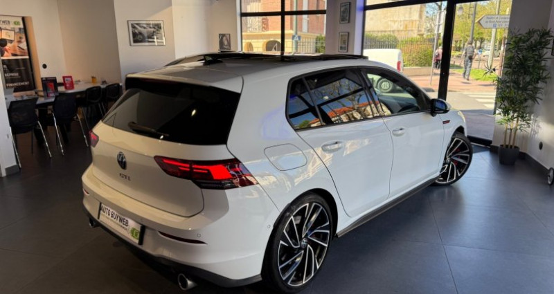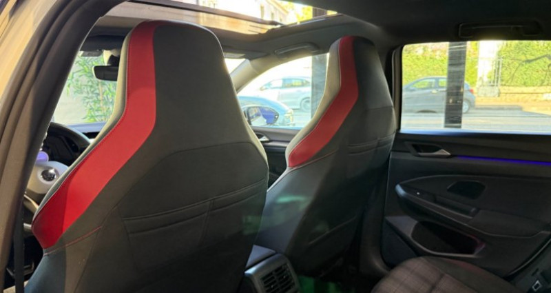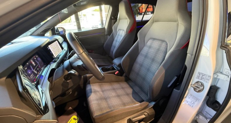 Cylindrée : 1984 cm3 EQUIPEMENTS DE SERIE ========================= 2 interfaces USB-C a l'AV 2 interfaces USB-C a l'AV et 2 prises de chargement USB-C derriere laccoudoir pour les passagers AR 2 prise USB a l'AR de l'accoudoirs central 2 prises de chargement USB-C derriere l'accoudoir pour les passagers AR 2 spots de lecture AV et 2 spots AR Accoudoir central AR rabattable avec 2 portes-boissons Accoudoir central AV reglable en hauteur et en longueur avec compartiment de rangement Activation automatique du signal de detresse en cas de freinage d'urgence Airbags de tete pour passagers AV/AR Airbags frontaux AV conducteur et passager (Airbag passager desactivable) Airbags lateraux AV Alerte de perte de pression des pneus App-Connect sans fil: affichage et controle via l'ecran tactile de la voiture, du contenu, Application decorative Black Metal Chrome pour tableau de bord Application decorative Black Metal Chrome pour tableau de bord et les revetements de porte a l'AV Appuis lombaires AV, reglable electriquement avec fonction massage du cote conducteur Appuis-tete AR reglables en hauteur Appuis-tete reglables en hauteur sur les sieges AV et AR Assistant de conduite Travel Assist avec Emergency Assist Assistant de conduite ?Travel Assist avec ?Emergency Assist Avertisseur sonore et temoin d'oubli du port de la ceinture de securite a l'AV et a l'AR Badges GTI Badges GTI sur les ailes AV et inscription GTI sur le hayon Baguette chromee sur les vitres laterales Baguette LED Baguette lumineuse entre les projecteurs Banquette AR rabattable 2/3-1/3 avec trappe a skis Blocage de differentiel dessieu AV VAQ Cable adaptateur USB-C vers USB-A Cache-bagages amovible Camera de recul Rear View Ceintures de securite automatiques AV 3 points a enrouleur avec pretensionneurs Ceintures de securite automatiques AV 3 points a enrouleur, reglables en hauteur, Ceintures de securite AV 3 points a enrouleur, reglables en hauteur, avec pretentionneurs Cerclage chrome des commandes des vitres, de reglage des retroviseurs et des aerateurs Chargeur induction Chrome sur le bouclier AV et le pare-choc AR Ciel de pavillon Noir Ciel de pavillon Noir Soul Climatiseur Air Care Climatronic 3 zones et filtre anti-allergene et elements de commandes a l'AR Commade vocale intuitive Controle vocal intuitif Correcteur electronique de trajectoire ESP, amplificateur de freinage d'urgence, antiblocage des Digital Cockpit : combine d'instruments digital avec ecran digital haute resolution de 10 Digital Cockpit Pro : combine d'instruments digital avec ecran digital haute resolution de 10,25 Direction progressive Disques de frein 17 a l'AV et a l'AR E-call service: Appel d'urgence manuel ou automatique Eclairage a LED de la plaque d'immatriculation AR Eclairage d'ambiance - 30 couleurs et eclairage de plancher a l'AV Eclairage d'ambiance 30 couleurs Eclairage d'ambiance exterieur Eclairage de plancher a LED a l'AV avec possibilite de selectionner la couleur d'eclairage Ecran couleur tactile 10 haute resolution (1560 x 700 pixels) Ecrous antivol Elements de carrosserie specifiques GTI Essuie-glace AR intermittent avec lave-glace Etriers de frein rouge a l'AV et a l'AR Fatigue Detection : systeme de detection de fatigue du conducteur qui analyse le comportement du Feu AR de brouillard d'un cote, feux de recul des 2 cotes Frein de stationnement electromecanique avec fonction d'immobilisation en pente Auto Hold et Front Asisst avec detecteur des pietons Indicateur de temperature exterieure avec avertisseur de gel Interface telephone Bluetooth Interface telephonique avec fonction de charge inductive Jantes alliage leger Richmond 7,5 J x 17 avec ecrous antivol et pneu sport 225/45 R17 Keyless Access Advanced sans alarme : Systeme de verrouillage/deverrouillage et de demarrage sans Keyless Access avec alarme : Systeme de verrouillage/deverrouillage et de demarrage sans cle Kit de depannage : compresseur 12 V et produit d'etancheite de pneu Lane Assist: Assistant de maintien dans la voie Light Assist : Activation ou desactivation des feux de route en fonction des sources lumineuses Lisere bleu dans la calandre et les phares Lisere rouge dans la calandre et les phares Mesures supplementaires de protection des pietons Miroirs de courtoisie eclaires dans les pare-soleils Oeillets d'arrimage ISOFIX (dispositif pour fixation de 2 sieges-enfants sur la banquette AR) Pack Assistance Pack Travel Assist Pack Travel Assist avec Emergency Assist Pack Visibilite Pare chocs AR specifiques GTI, prise d'air en structure nid d'abeilles a l'AV Pare-chocs, boitiers de retroviseurs exterieurs et poignees de portes dans la couleur carrosserie Park Assist: Systeme d'assistance au stationnement en creneau et en bataille Park Assist: Systeme d'assistance au stationnement en creneauet et en bataille ParkPilot, aide au stationnement AV/AR Pedalier et repose-pied en acier inoxydable brosse Peinture unie Blanc Pur Peinture unie Blanc Pur/Toit Noir Pommeau de levier de vitesse en style aluminium Preparation pour VW Connect et VW Connect Plus Prise 12 V dans le coffre Projecteurs antibrouillard AV avec eclairage statique d'intersection Projecteurs antibrouillard avec feux de braquage Projecteurs IQ.Light - Matrix LED Protection antidemarrage Radio Composition, 7 HP et ecran 8 Rangement et prise 12 V a l'AV Rear Assist: Camera de recul avec visualisation de la zone situee a l'AR du vehicule Reception radio numerique DAB+ Reconnaissance des panneaux de signalisation Reglage du site des phares, manuel Regulateur de vitesse adaptatif et predictif ACC avec limiteur de vitesse Retroviseur interieur a reglage jour/nuit automatique Retroviseurs exterieurs a reglage, rabattement et degivrage electriques, avec fonction memoire Retroviseurs exterieurs avec degivrage separe Retroviseurs exterieurs rabattables et reglables electriquement Revetement de porte et lateral en feuille de mousse et tissu Selection du profil de conduite Sellerie en tissu Scale paper Service d'appel d'urgenc