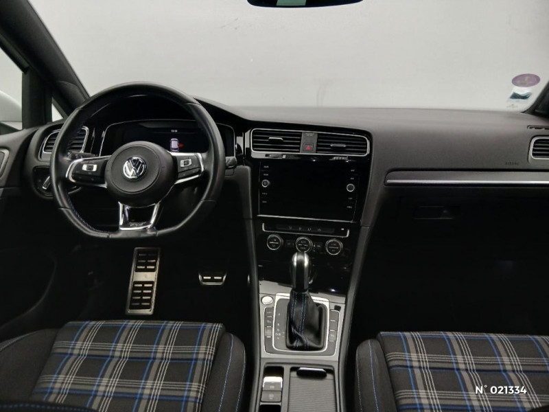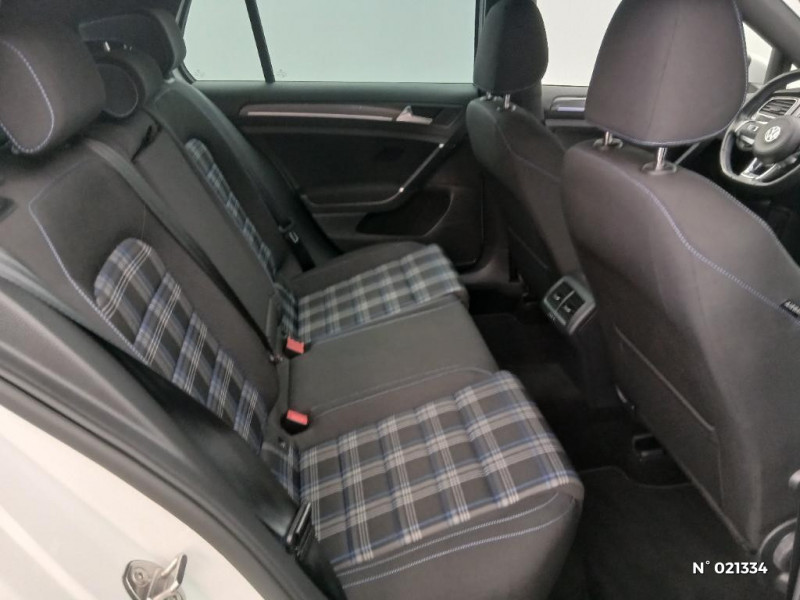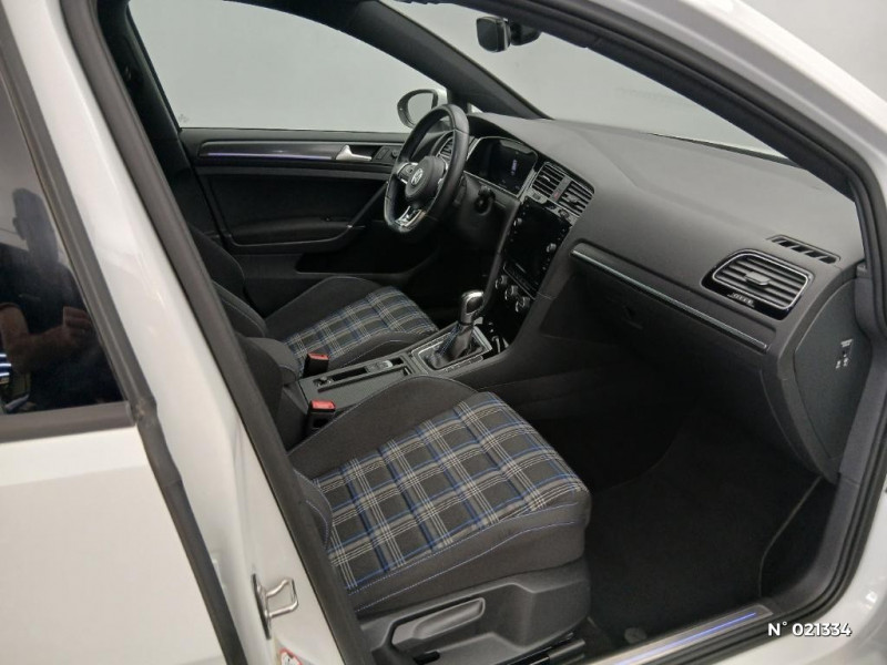 Système Navigation & Infotainment "Discover Media" / Système Start/Stop automatique et dispositif de récupération de l'énergie de freinage / Tapis de sol AV/AR / Verrouillage centralisé avec télécommande à fréquence radio par clé rétractable / Vitres athermiques teintées vertes / Active Info Display : combiné d'instruments entièrement digital haute résolution couleur / Aide au stationnement AV/AR avec signaux sonores et visualisation de la distance des obstacles sur l'écran, incluant fonction mémoire pour le rétroviseur extérieur droit / Airbags frontaux conducteur et passager (Airbag passager désactivable par clé) / Antenne AR de toit intégrée / App-Connect En combinaison avec Discover Media / Applications décoratives "Honeycombed Black" pour tableau de bord du côté passager AV ainsi que pour revêtement de portes / Applications décoratives "Piano noir laqué" pour tableau de bord du côté conducteur ainsi que pour console centrale / Appuis-tête à sécurité optimisée réglables en hauteur sur les sièges conducteur et passager AV / Appuis-tête AR (3) et ceintures de sécurité AR (3) à 3 points d'ancrage / "ATTENTION" - Equipements en cours de saisie / Avertisseur sonore 2 tons et témoin de non bouclage des ceintures de sécurité (conducteur et passager AV) / Badge GTE sur les ailes AV / Banquette AR rabattable 2/3-1/3 avec accoudoir central et trappe à skis / Boutons d'allumage des phares avec filet chromé / Boutons de lève-glace et de réglage de rétroviseurs avec filet chromé / Câble de recharge pour borne domestique Wallbox ou borne publique compatible (3,6 kW) (mode 3, type 2/type 2) / Câble de recharge pour prise de courant domestique (2,3 kW) (mode 2, type 2) / Cache-bagages amovible / Caméra de recul avec visualisation de la zone située à l'AR du véhicule sur l'écran de la radio ou de la radionavigation / Carte de recharge Volkswagen e-Pass avec 1 an d¿abonnement et 50 ¿ de crédit offerts / Volant Sport cuir multifonction avec applications aluminium / Volant 3 branches en cuir et pommeau de levier de vitesses cuir / Volkswagen e-Pass / XDS : Système agissant comme un différentiel autobloquant électronique permettant une meilleure motricité en courbe grâce à une répartition optimale de la puissance et du couple sur les roues AV / Service "Car-Net Security and Service" / Seuils de porte AV éclairés / Catadioptre dans la partie inférieure des portières / Ceintures de sécurité AV 3 points à enrouleur réglables en hauteur avec prétensionneurs / Cerclage chromé des instruments de bord et des aérateurs / Ciel de pavillon Noir / Climatisation automatique Climatronic bi-zone avec filtre anti-allergène, réglable séparément pour conducteur et passager AV / Compartiment de rangement au centre des 2 sièges / Compartiment de rangement dans le coffre / Console de pavillon avec 1 compartiment de rangement fermé / Abonnement aux Services Mobiles en ligne Car-Net "Guide & Inform" 36 mois pour Discover Media / Accoudoir central AV avec compartiment de rangement, 2 porte-gobelets intégrés et 2 bouches d'aération derrière l'accoudoir pour les passagers AR / Correcteur électronique de trajectoire ESP, amplificateur de freinage d'urgence, antiblocage des roues ABS, blocage électronique de différentiel EDS, répartiteur électronique de freinage EBV, antipatinage électronique ASR, régulateur électronique de couple MSR et assistance au contrebraquage / Direction électromécanique à assistance variable en fonction de la vitesse / Disques de frein 16" à l'AV et 15" à l'AR / Double sortie d'échappement chromée à gauche / Eclairage à LED de la plaque / Eclairage d'ambiance bleu dans les portières AV / Eclairage diurne à LED / Essuie-glace AR intermittent avec lave-glace / Fatigue Detection : système de détection de fatigue du conducteur qui analyse le comportement du conducteur et recommande un temps de repos par l'apparition d'un message visuel et sonore / Feux AR sombres à LED avec clignotants défilants / Filtre anti pollen à charbon actif / Frein de stationnement électromécanique avec fonction d'immobilisation en pente "Auto Hold" Le véhicule se maintien automatiquement en pente et une simple action qur l'accélérateur suffit à désactiver le frein / Front Assist avec detecteur de piétons système de freinage automatique en cas de détection d¿obstacle / Générateur de son (haut-parleur derrière le pare-brise) / Interface téléphone Bluetooth / Jantes en alliage léger "Astana" 6.5Jx16" avec écrous antivol et pneumatiques 205/55 R16 / Keyless Access: Système de verrouillage/déverrouillage sans clé et démarrage avec bouton start/stop / Kit de dépannage : compresseur 12 V et produit d'étanchéité de pneu / Liseré bleu dans la calandre et les phares. / Logo VW sur fond bleu AV et AR / Miroir de courtoisie éclairé sur les pare-soleil / Oeillets d'arrimage ISOFIX (dispositif pour fixation de 2 sièges-enfants sur la banquette AR) / Ordinateur de bord couleur avec affichage multifonction / Pack Visibilité / Pare-chocs AV et AR spécifiques GTE / Pédalier et repose-pied en acier inoxydable brossé / Peinture unie Blanc Pur / Poignées de portes et rétroviseurs extérieurs dans la teinte de la carrosserie / Porte-boissons (2) à l'AV avec volet et porte-boissons (2) à l'AR escamotables / Pre Safe Assist - Système proactif de protection des passagers / Prise USB compatible Apple / Prise 12 V dans le coffre / Projecteurs LED à liseré bleu et feux de jours LED à signature en C / Rétroviseur extérieur côté conducteur avec mémoire / Rétroviseur extérieur côté passager avec mémoire / Rétroviseurs extérieurs électriques, dégivrants et asphérique côté conducteur / Sélection du profil de conduite / Sellerie spécifique tissu Clark / Surpiqûres bleues sur le cuir du volant et sur le soufflet du levier de vitesse / Système de freinage anti multicollision: ce dispositif freine