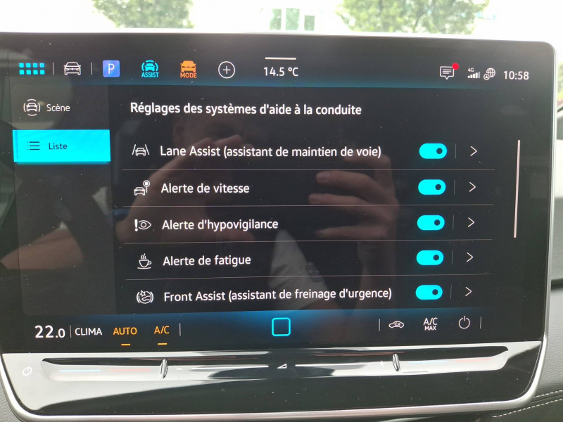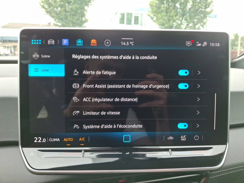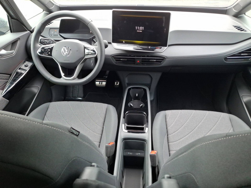 Activation automatique du signal de détresse en cas de freinage d'urgence / Allumage automatique des feux, capteurs de pluie avec essuie-glace automatique / Boîte de vitesse automatique à variation continue / Buses à dégivrage automatique à l'AV / Climatisation stationnaire: permet de réfrigérer, de ventiler ou de chauffer l'habitacle du véhicule à l'arrêt. Elle permet également de dégivrer le pare-brise, de le désembuer et de le débarrasser d'une fine couche de neige en hiver. La climatisation stationnaire est alimentée par la prise de courant ou par la batterie haute tension du véhicule / Eclairage à LED de la plaque d'immatriculation AR / Frein de stationnement électromécanique avec fonction d'immobilisation en pente "Auto Hold" La fonction Auto Hold garantit une immobilisation du véhicule sans déplacement intempestif, la pédale de frein ne devant pour cela pas être maintenue actionnée / ID. Display de 5,3'': L'ID. Display est un combiné d'instruments numérique doté d'un afficheur couleur TFT à haute résolution. En plus du tachymètre numérique, il est possible d'afficher des informations supplémentaires provenant des systèmes d'aide à la conduite, par la sélection de divers profils d'information / Intervention de freinage automatique lors des manoevres: L'intervention de freinage automatique d'un système de stationnement est utilisée pour réduire le risque de collision si un obstacle est détecté pendant le processus de stationnement / Jantes en acier 18'' avec enjoliveurs Pneumatiques 215/55 R18 / Park Pilot - Aide au stationnement AV et AR / Projecteurs LED et feux AR à LED / Préparation pour activation ultérieure de la Navigation via Upgrades / Rétroviseur intérieur à réglage jour/nuit automatique / Sign Assist - Système de détection de la signalisation routière Le système de détection de la signalisation routière détecte les panneaux de signalisation standard à l'aide d'une caméra située dans le pied du rétroviseur intérieur et vous informe des limitations de vitesse, interdictions de dépasser et panneaux de danger identifiés / Système d'aide à l'éco-conduite - Eco Assistance / Système d'appel d'urgence - eCall Appel d'urgence manuel ou automatique / Système de Freinage anti-multi collision Ce dispositif freine automatiquement le véhicule après un premier choc afin de limiter le risque de multicollision / Sélecteur de vitesse situéà droite derrière le volant avec frein de stationnement électronique Il dispose d'une marche AV (D/B), du neutre (N) et d'une marche AR (R). En position (D), la récupération d'énergie au freinage est en mode normal. En position (B), le système d'aide à l'éco-conduite est activé et la récupération d'énergie est plus élevée / 2 port USB-C à l'AV (recharge et data) et 2 à l'AR (recharge) / 7 Airbags Airbags frontaux AV conducteur et passager (Airbag passager désactivable par clé), Airbags latéraux à l'AV, airbags interactif à l'AV et avec airbags de tête AV/AR, Airbag central situé sur le côté droit du siège conducteur, permet la protection des chocs entre les occupants des sièges AV en cas de collision latérale ou de retournement / ACC: Régulateur de vitesse adaptatif avec limiteur de vitesse adapte la vitesse en fonction des limitations de vitesse détectées / Accoudoirs pour les sièges AV / App-Connect sans fil (en fonction du téléphone compatible) pour Apple CarPlay, Android Auto et Mirror Link (avec fil) / Avertissement de distance avec le véhicule précédent / Avertisseur sonore 1 ton / Avertisseur sonore et lumineux pour ceintures non attachées AV et AR / Banquette AR 2/3 1/3 avec accoudoir central et trappe de chargement (3 personnes) / Capacité de batterie nette - 59 kWh / Capacité de puissance de recharge maximale sur prise CCS : 165 kW DC / Capacité de puissance maximale du chargeur embarqué pour prise Type 2 : 11 kW AC / Car2X La fonction Car2X utilise les informations des autres véhicules présents dans un périmètre pouvant s'étendre jusqu'à 800 mètres, ainsi que les signaux des infrastructures de transport pour avertir le conducteur et transmettre ces avertissements à d'autres véhicules équipés de la fonction Car2X / Carrosserie bicolore - Toit et hayon noir / Clignotants confort : (1) touche = (3) clignotements / Climatiseur 1-Zone "Climatronic" avec mode recyclage de l'air ambiant / Commande vocale intuitive -"Bonjour ID." - Certaines fonctions peuvent être exécutées grâce à la commande vocale / Console centrale rétroéclairée avec rangements, volet occultant, 2 porte-gobelets / Contrôle de la traction (TCS) / Correcteur électronique de trajectoire ESP, Amplificateur de freinage d'urgence AFU, Servofrein électromécanique eBKV, Freinage mixte BKU, système d'antiblocage des roues ABS, blocage électronique de différentiel EDS,répartiteur électronique de freinage EBV,anti patinage électronique ASR, régulateur électronique de couple MSR et assistance au contre-braquage, Programme électronique de stabilisation ESC,Système agissant comme un différenti.autobloquant électronique permettant une meilleure motricité en courbe grâce à une répartition optimale de la puissance et du couple sur les roues AR XDS / Câble de recharge Mode 3 - Type 2 pour borne de recharge (32A) / Direction électromécanique à assistance variable en fonction de la vitesse / Détection de fatigue Système de détection de fatigue du conducteur qui analyse le comportement du conducteur et recommande un temps de repos par l'apparition d'un message visuel et sonore / E-sound - son spécifique ID: L'e-Sound est un bruit électronique de moteur signalant l'approche de véhicules électriques aux autres usagers de la route. Plus le véhicule roule vite, plus le volume sonore de l'e-Sound diminue lentement / Eclairage d'ambiance personnalisable (10 couleurs) / Ecran central tactile de 12,9'' personnalisable / Freins à disques AV et frei