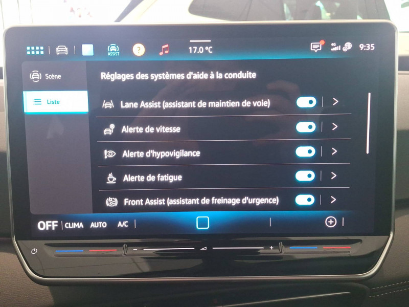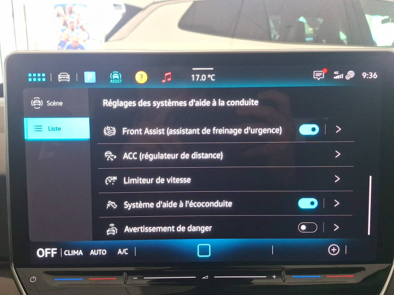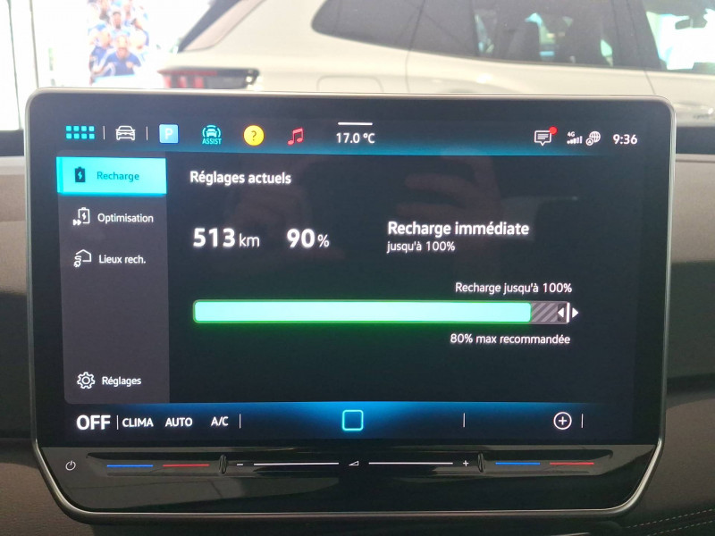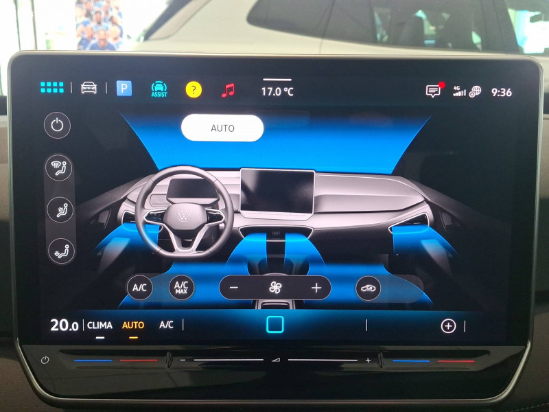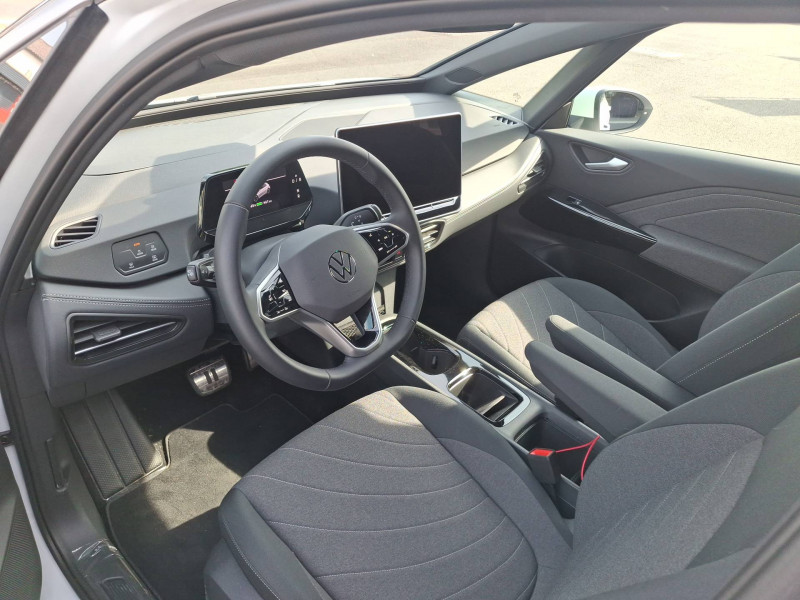 Activation automatique du signal de détresse en cas de freinage d'urgence / Allumage automatique des feux, capteurs de pluie avec essuie-glace automatique / Buses à dégivrage automatique à l'AV / Climatisation stationnaire permet de réfrigérer, de ventiler ou de chauffer l'habitacle du véhicule à l'arrêt. Elle permet également de dégivrer le pare-brise, de le désembuer et de le débarrasser d'une fine couche de neige en hiver. La climatisation stationnaire est alimentée par la prise de courant ou par la batterie haute tension du véhicule / Eclairage à LED de la plaque d'immatriculation AR / Frein de stationnement électromécanique avec fonction d'immobilisation en pente "Auto Hold" La fonction Auto Hold garantit une immobilisation du véhicule sans déplacement intempestif, la pédale de frein ne devant pour cela pas être maintenue actionnée / ID. Display de 5,3'' L'ID. Display est un combiné d'instruments numérique doté d'un afficheur couleur TFT à haute résolution. En plus du tachymètre numérique, il est possible d'afficher des informations supplémentaires provenant des systèmes d'aide à la conduite, par la sélection de divers profils d'information / Intervention de freinage automatique lors des manoevres / Jantes en alliage 20" 'Sanya' bicolore Argent Pneumatiques AirStop 215/45 R20 / Park Pilot - Aide au stationnement AV et AR / Projecteurs LED et feux AR à LED / Préparation pour activation ultérieure de la Navigation via Upgrades / Rétroviseur intérieur à réglage jour/nuit automatique / Système d'aide à l'éco-conduite - Eco Assistance / Système d'appel d'urgence - eCall Appel d'urgence manuel ou automatique / Système de Freinage anti-multi collision Ce dispositif freine automatiquement le véhicule après un premier choc afin de limiter le risque de multicollision / Sélecteur de vitesse situéà droite derrière le volant avec frein de stationnement électronique Il dispose d'une marche AV (D/B), du neutre (N) et d'une marche AR (R). En position (D), la récupération d'énergie au freinage est en mode normal. En position (B), le système d'aide à l'éco-conduite est activé et la récupération d'énergie est plus élevée / 2 port USB-C à l'AV (recharge et data) et 2 à l'AR (recharge) / 7 Airbags Airbags frontaux AV conducteur et passager (Airbag passager désactivable par clé), Airbags latéraux à l'AV, airbags interactif à l'AV et avec airbags de tête AV/AR, Airbag central situé sur le côté droit du siège conducteur, permet la protection des chocs entre les occupants des sièges AV en cas de collision latérale ou de retournement / ACC: Régulateur de vitesse adaptatif avec limiteur de vitesse adapte la vitesse en fonction des limitations de vitesse détectées / Accoudoirs pour les sièges AV / App-Connect sans fil (en fonction du téléphone compatible) pour Apple CarPlay, Android Auto et Mirror Link (avec fil) / Avertissement de distance avec le véhicule précédent / Avertisseur sonore 1 ton / Avertisseur sonore et lumineux pour ceintures non attachées AV et AR / Banquette AR 3 places rabattable (2/3 - 1/3) avec trappe à skis / Capacité de batterie nette - 77 kWh / Capacité de puissance de recharge maximale sur prise CCS : 175 kW DC / Capacité de puissance maximale du chargeur embarqué pour prise Type 2 : 11 kW AC / Car2X La fonction Car2X utilise les informations des autres véhicules présents dans un périmètre pouvant s'étendre jusqu'à 800 mètres, ainsi que les signaux des infrastructures de transport pour avertir le conducteur et transmettre ces avertissements à d'autres véhicules équipés de la fonction Car2X / Carrosserie bicolore - Toit et hayon noir / Clignotants confort : (1) touche = (3) clignotements / Climatiseur 1-Zone "Climatronic" avec mode recyclage de l'air ambiant / Commande vocale intuitive -"Bonjour ID." - Certaines fonctions peuvent être exécutées grâce à la commande vocale / Console centrale rétroéclairée avec rangements, volet occultant, 2 porte-gobelets / Correcteur électronique de trajectoire ESP, Amplificateur de freinage d'urgence AFU, Servofrein électromécanique eBKV, Freinage mixte BKU, système d'antiblocage des roues ABS, blocage électronique de différentiel EDS,répartiteur électronique de freinage EBV,anti patinage électronique ASR, régulateur électronique de couple MSR et assistance au contre-braquage, Programme électronique de stabilisation ESC,Système agissant comme un différenti.autobloquant électronique permettant une meilleure motricité en courbe grâce à une répartition optimale de la puissance et du couple sur les roues AR XDS / Câble de recharge Mode 3 - Type 2 pour borne de recharge (32 A) / Direction électromécanique à assistance variable en fonction de la vitesse / Détection de fatigue Système de détection de fatigue du conducteur qui analyse le comportement du conducteur et recommande un temps de repos par l'apparition d'un message visuel et sonore / E-sound - son spécifique ID L'e-Sound est un bruit électronique de moteur signalant l'approche de véhicules électriques aux autres usagers de la route. Plus le véhicule roule vite, plus le volume sonore de l'e-Sound diminue lentement / Eclairage d'ambiance personnalisable (10 couleurs) / Eclairage des poignées de portes avec éclairage de bienvenue 'Welcome Light' / Ecran central tactile de 12,9'' personnalisable / Freins à disques à l'AV et freins à tambours à l' AR / Front Assist - Système de surveillance périmétrique avec fonctions de freinage d'urgence en ville et détection des piétons / Gestion des paramètres de confidentialité liés à la eSIM et à VW Connect / Indicateur de température extérieure avec avertisseur de gel / Interface téléphone Bluetooth / Kit de dépannage : compresseur 12 V et produit d'étanchéité de pneu / Lane Assist - Assistant au maintien dans la voie avec correction de trajectoire / Oeillets d'arrimage ISOFIX (dispositif pour fixation