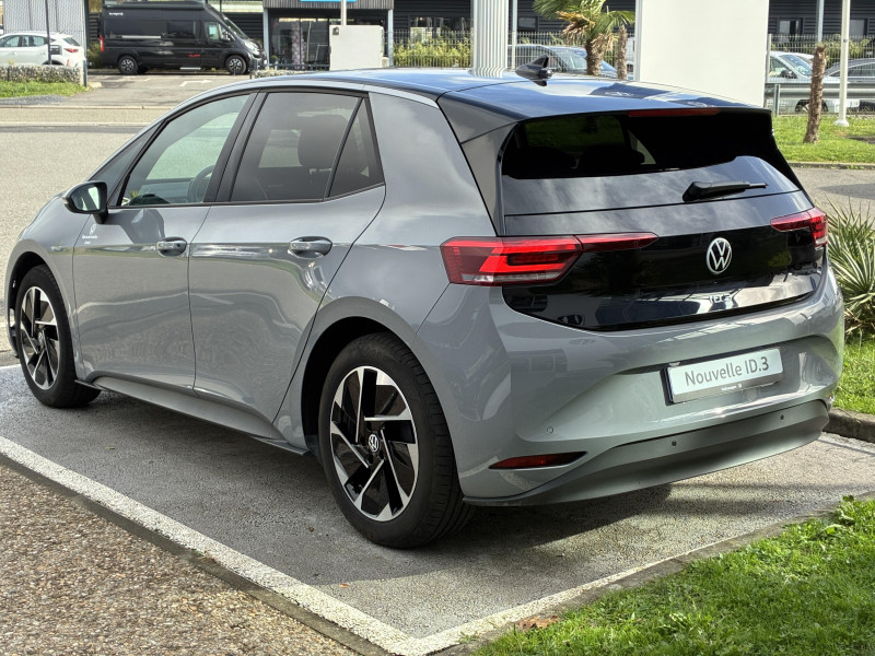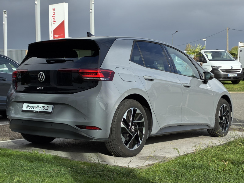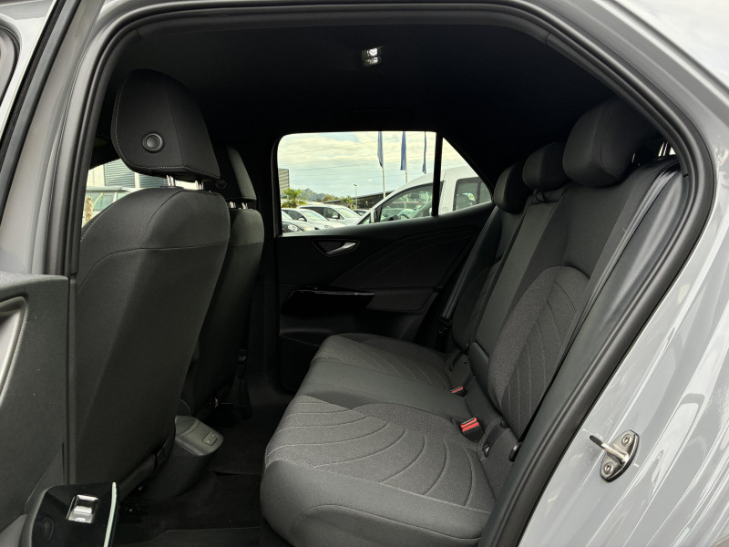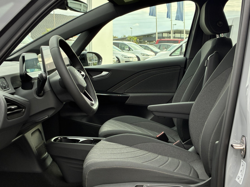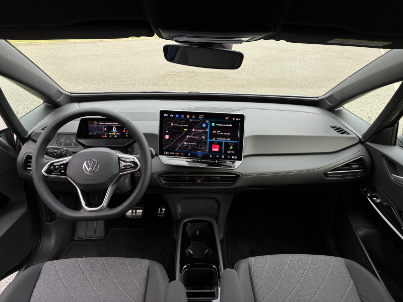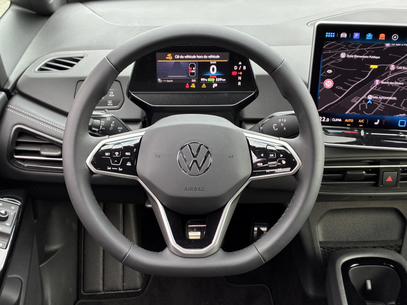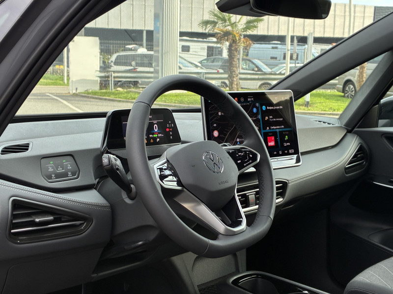 Activation automatique du signal de détresse en cas de freinage d'urgence / Allumage automatique des feux, capteurs de pluie avec essuie-glace automatique / Buses à dégivrage automatique à l'AV / Climatisation stationnaire permet de réfrigérer, de ventiler ou de chauffer l'habitacle du véhicule à l'arrêt. Elle permet également de dégivrer le pare-brise, de le désembuer et de le débarrasser d'une fine couche de neige en hiver. La climatisation stationnaire est alimentée par la prise de courant ou par la batterie haute tension du véhicule / Eclairage à LED de la plaque d'immatriculation AR / Frein de stationnement électromécanique avec fonction d'immobilisation en pente "Auto Hold" La fonction Auto Hold garantit une immobilisation du véhicule sans déplacement intempestif, la pédale de frein ne devant pour cela pas être maintenue actionnée / ID. Display de 5,3'' L'ID. Display est un combiné d'instruments numérique doté d'un afficheur couleur TFT à haute résolution. En plus du tachymètre numérique, il est possible d'afficher des informations supplémentaires provenant des systèmes d'aide à la conduite, par la sélection de divers profils d'information / Intervention de freinage automatique lors des manoevres / Jantes 18'' "East Derry" bicolore Argent Pneumatiques 215/55 R18 / Pack confort - Volant multifonction, chauffant, avec commande tactile et capacitif - Climatiseur 2-Zones 'Air Care Climatronic' avec filtre à charbon actif - Sièges AV chauffants - Système de navigation & infotainment Discover Pro avec Services de streaming et radio via Internet, fonction planificateur d'itinéraire - Interface téléphonique "Confort" avec fonction de chargement inductive / Park Pilot - Aide au stationnement AV et AR / Projecteurs LED et feux AR à LED / Préparation pour activation ultérieure de la Navigation via Upgrades / Rétroviseur intérieur à réglage jour/nuit automatique / Système d'aide à l'éco-conduite - Eco Assistance / Système d'appel d'urgence - eCall Appel d'urgence manuel ou automatique / Système de Freinage anti-multi collision Ce dispositif freine automatiquement le véhicule après un premier choc afin de limiter le risque de multicollision / Sélecteur de vitesse situéà droite derrière le volant avec frein de stationnement électronique Il dispose d'une marche AV (D/B), du neutre (N) et d'une marche AR (R). En position (D), la récupération d'énergie au freinage est en mode normal. En position (B), le système d'aide à l'éco-conduite est activé et la récupération d'énergie est plus élevée / 2 port USB-C à l'AV (recharge et data) et 2 à l'AR (recharge) / 7 Airbags Airbags frontaux AV conducteur et passager (Airbag passager désactivable par clé), Airbags latéraux à l'AV, airbags interactif à l'AV et avec airbags de tête AV/AR, Airbag central situé sur le côté droit du siège conducteur, permet la protection des chocs entre les occupants des sièges AV en cas de collision latérale ou de retournement / ACC: Régulateur de vitesse adaptatif avec limiteur de vitesse adapte la vitesse en fonction des limitations de vitesse détectées / Accoudoirs pour les sièges AV / App-Connect sans fil (en fonction du téléphone compatible) pour Apple CarPlay, Android Auto et Mirror Link (avec fil) / Avertissement de distance avec le véhicule précédent / Avertisseur sonore 1 ton / Avertisseur sonore et lumineux pour ceintures non attachées AV et AR / Banquette AR 3 places rabattable (2/3 - 1/3) avec trappe à skis / Caméra de recul "Rear View" située dans le logo Volkswagen / Capacité de batterie nette - 52 kWh / Capacité de puissance de recharge maximale sur prise CCS : 145 kW DC / Capacité de puissance maximale du chargeur embarqué pour prise Type 2 : 7,2 kW AC / Car2X La fonction Car2X utilise les informations des autres véhicules présents dans un périmètre pouvant s'étendre jusqu'à 800 mètres, ainsi que les signaux des infrastructures de transport pour avertir le conducteur et transmettre ces avertissements à d'autres véhicules équipés de la fonction Car2X / Carrosserie bicolore - Toit et hayon noir / Clignotants confort : (1) touche = (3) clignotements / Commande vocale intuitive -"Bonjour ID." - Certaines fonctions peuvent être exécutées grâce à la commande vocale / Console centrale rétroéclairée avec rangements, volet occultant, 2 porte-gobelets / Correcteur électronique de trajectoire ESP, Amplificateur de freinage d'urgence AFU, Servofrein électromécanique eBKV, Freinage mixte BKU, système d'antiblocage des roues ABS, blocage électronique de différentiel EDS,répartiteur électronique de freinage EBV,anti patinage électronique ASR, régulateur électronique de couple MSR et assistance au contre-braquage, Programme électronique de stabilisation ESC,Système agissant comme un différenti.autobloquant électronique permettant une meilleure motricité en courbe grâce à une répartition optimale de la puissance et du couple sur les roues AR XDS / Câble de recharge Mode 3 - Type 2 pour borne de recharge (32 A) / Direction électromécanique à assistance variable en fonction de la vitesse / Détection de fatigue Système de détection de fatigue du conducteur qui analyse le comportement du conducteur et recommande un temps de repos par l'apparition d'un message visuel et sonore / E-sound - son spécifique ID L'e-Sound est un bruit électronique de moteur signalant l'approche de véhicules électriques aux autres usagers de la route. Plus le véhicule roule vite, plus le volume sonore de l'e-Sound diminue lentement / Eclairage d'ambiance personnalisable (10 couleurs) / Eclairage des poignées de portes avec éclairage de bienvenue 'Welcome Light' / Ecran central tactile de 12,9'' personnalisable / Freins à disques à l'AV et freins à tambours à l' AR / Front Assist - Système de surveillance périmétrique avec fonctions de freinage d'urgence en ville et détection des piétons / Gestion de