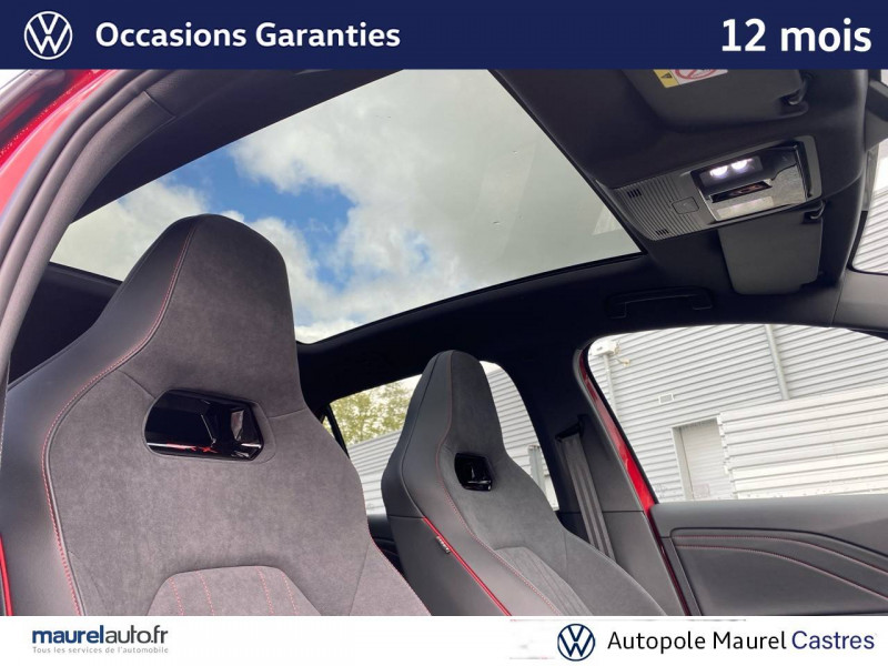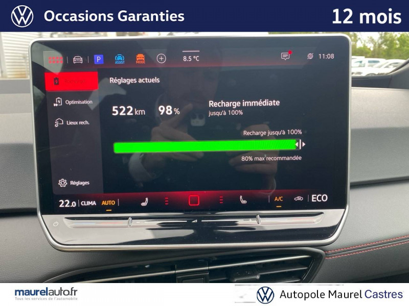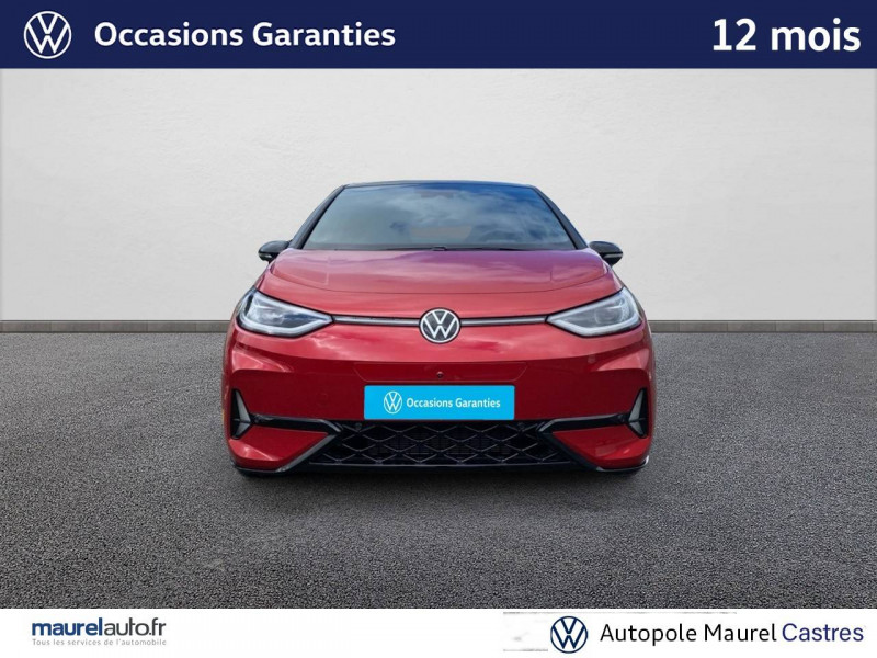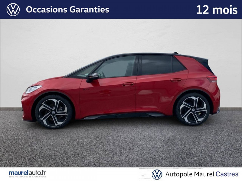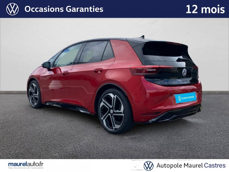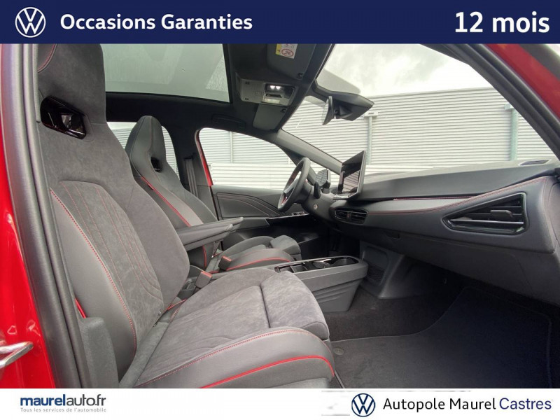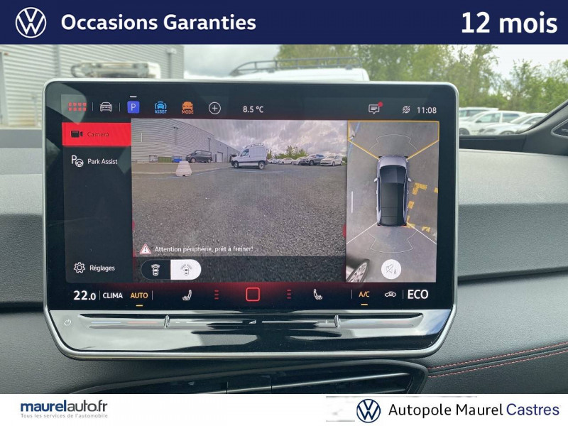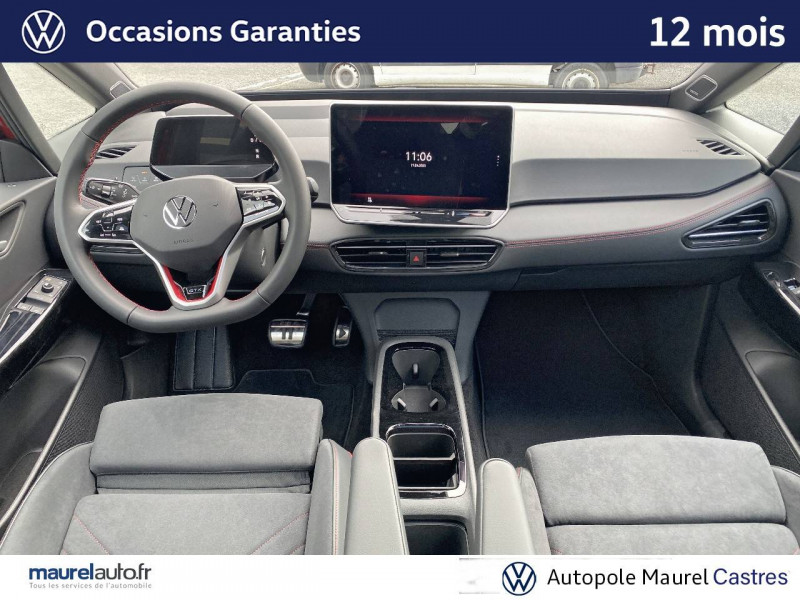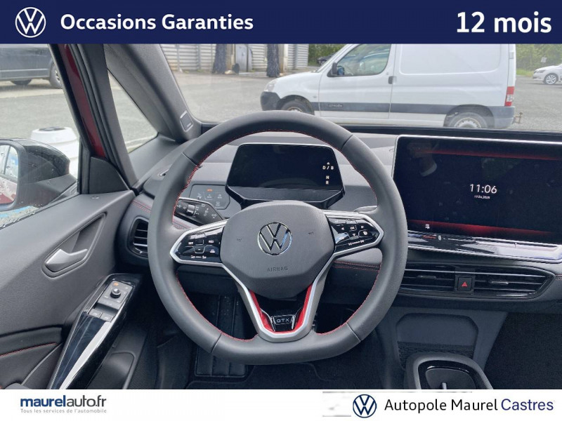 Activation automatique du signal de détresse en cas de freinage d'urgence / Allumage automatique des feux, capteurs de pluie avec essuie-glace automatique / Buses à dégivrage automatique à l'AV / Carrosserie spécifique 'GTX' AV/AR avec LED de jour à l'AV / Climatisation stationnaire permet de réfrigérer, de ventiler ou de chauffer l'habitacle du véhicule à l'arrêt. Elle permet également de dégivrer le pare-brise, de le désembuer et de le débarrasser d'une fine couche de neige en hiver. La climatisation stationnaire est alimentée par la prise de courant ou par la batterie haute tension du véhicule / Eclairage à LED de la plaque d'immatriculation AR / Frein de stationnement électromécanique avec fonction d'immobilisation en pente "Auto Hold" La fonction Auto Hold garantit une immobilisation du véhicule sans déplacement intempestif, la pédale de frein ne devant pour cela pas être maintenue actionnée / ID. Display de 5,3'' L'ID. Display est un combiné d'instruments numérique doté d'un afficheur couleur TFT à haute résolution. En plus du tachymètre numérique, il est possible d'afficher des informations supplémentaires provenant des systèmes d'aide à la conduite, par la sélection de divers profils d'information / Intervention de freinage automatique lors des manoevres / Jantes en alliage léger 20'' 'Skagen' Noires Pneumatiques 215/45 R20 / Pack Assistance Système d'ouverture et de fermeture sans cléà distance 'Keyless Access Advanced', Caméra de recul 'Rear View' située dans le logo Volkswagen, Intelligent Park Assist Plus : Système d'aide au stationnement AV et AR, Système proactif de protection des occupants - Pre Safe Assist, Alarme antivol - Protection volumétrique et anti-soulèvement, Éclairage des poignées de portes / Pack Extérieur Projecteurs IQ. Light Matrix LED avec commutation automatique des feux de route, éclairage de mauvais temps et fonction de bienvenue, Régulation dynamique des feux de route "Dynamic Light Assist, Bande lumineuse entre les projecteurs et le logo, Feux AR à LED avec clignotants séquentiels, Vitres AR sur-teintées / Pack Sport DCC Régulation adaptative des trains roulants DCC avec amortisseurs AR sport et sélection du profil de conduite / Park Pilot - Aide au stationnement AV et AR / Projecteurs LED et feux AR à LED / Rétroviseur intérieur à réglage jour/nuit automatique / Système d'aide à l'éco-conduite - Eco Assistance / Système d'appel d'urgence - eCall Appel d'urgence manuel ou automatique / Système de Freinage anti-multi collision Ce dispositif freine automatiquement le véhicule après un premier choc afin de limiter le risque de multicollision / Sélecteur de vitesse situéà droite derrière le volant avec frein de stationnement électronique Il dispose d'une marche AV (D/B), du neutre (N) et d'une marche AR (R). En position (D), la récupération d'énergie au freinage est en mode normal. En position (B), le système d'aide à l'éco-conduite est activé et la récupération d'énergie est plus élevée / 2 port USB-C à l'AV (recharge et data) et 2 à l'AR (recharge) / 7 Airbags Airbags frontaux AV conducteur et passager (Airbag passager désactivable par clé), Airbags latéraux à l'AV, airbags interactif à l'AV et avec airbags de tête AV/AR, Airbag central situé sur le côté droit du siège conducteur, permet la protection des chocs entre les occupants des sièges AV en cas de collision latérale ou de retournement / ACC: Régulateur de vitesse adaptatif avec limiteur de vitesse adapte la vitesse en fonction des limitations de vitesse détectées / Accoudoirs pour les sièges AV / App-Connect sans fil (en fonction du téléphone compatible) pour Apple CarPlay, Android Auto et Mirror Link (avec fil) / Avertissement de distance avec le véhicule précédent / Avertisseur sonore 1 ton / Avertisseur sonore et lumineux pour ceintures non attachées AV et AR / Banquette AR 3 places rabattable (2/3 - 1/3) avec trappe à skis / Capacité de batterie nette - 79 kWh / Capacité de puissance de recharge maximale sur prise CCS : 185 kW DC / Capacité de puissance maximale du chargeur embarqué pour prise Type 2 : 11 kW AC / Car2X La fonction Car2X utilise les informations des autres véhicules présents dans un périmètre pouvant s'étendre jusqu'à 800 mètres, ainsi que les signaux des infrastructures de transport pour avertir le conducteur et transmettre ces avertissements à d'autres véhicules équipés de la fonction Car2X / Carrosserie bicolore - Toit et hayon noir / Clignotants confort : (1) touche = (3) clignotements / Commande vocale intuitive -"Bonjour ID." - Certaines fonctions peuvent être exécutées grâce à la commande vocale / Console centrale rétroéclairée avec rangements, volet occultant, 2 porte-gobelets / Coques de rétroviseurs extérieurs Noires / Correcteur électronique de trajectoire ESP, Amplificateur de freinage d'urgence AFU, Servofrein électromécanique eBKV, Freinage mixte BKU, système d'antiblocage des roues ABS, blocage électronique de différentiel EDS,répartiteur électronique de freinage EBV,anti patinage électronique ASR, régulateur électronique de couple MSR et assistance au contre-braquage, Programme électronique de stabilisation ESC,Système agissant comme un différenti.autobloquant électronique permettant une meilleure motricité en courbe grâce à une répartition optimale de la puissance et du couple sur les roues AR XDS / Câble de recharge Mode 3 - Type 2 pour borne de recharge (32 A) / Direction électromécanique à assistance variable en fonction de la vitesse / Détection de fatigue Système de détection de fatigue du conducteur qui analyse le comportement du conducteur et recommande un temps de repos par l'apparition d'un message visuel et sonore / E-sound - son spécifique ID L'e-Sound est un bruit électronique de moteur signalant l'approche de véhicules électriques aux autres usagers de la route. Plus le véhicule roule 