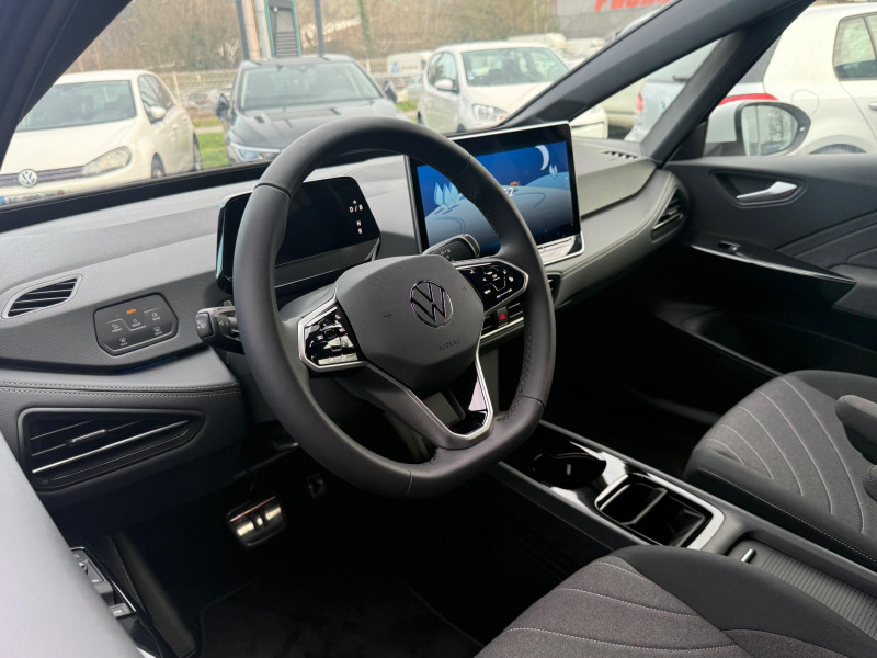 Activation automatique du signal de détresse en cas de freinage d'urgence / Allumage automatique des feux, capteurs de pluie avec essuie-glace automatique / Buses à dégivrage automatique à l'AV / Climatisation stationnaire permet de réfrigérer, de ventiler ou de chauffer l'habitacle du véhicule à l'arrêt. Elle permet également de dégivrer le pare-brise, de le désembuer et de le débarrasser d'une fine couche de neige en hiver. La climatisation stationnaire est alimentée par la prise de courant ou par la batterie haute tension du véhicule / Eclairage à LED de la plaque d'immatriculation AR / Frein de stationnement électromécanique avec fonction d'immobilisation en pente "Auto Hold" La fonction Auto Hold garantit une immobilisation du véhicule sans déplacement intempestif, la pédale de frein ne devant pour cela pas être maintenue actionnée / ID. Display de 5,3'' L'ID. Display est un combiné d'instruments numérique doté d'un afficheur couleur TFT à haute résolution. En plus du tachymètre numérique, il est possible d'afficher des informations supplémentaires provenant des systèmes d'aide à la conduite, par la sélection de divers profils d'information / Intervention de freinage automatique lors des manoevres / Jantes 18'' "East Derry" bicolore Argent Pneumatiques 215/55 R18 / Pack Assistance Système d'ouverture et de fermeture sans cléà distance 'Keyless Access Advanced', Caméra de recul 'Rear View' située dans le logo Volkswagen, Intelligent Park Assist Plus : Système d'aide au stationnement AV et AR, Système proactif de protection des occupants - Pre Safe Assist, Alarme antivol - Protection volumétrique et anti-soulèvement, Éclairage des poignées de portes / Pack confort - Volant multifonction, chauffant, avec commande tactile et capacitif - Climatiseur 2-Zones 'Air Care Climatronic' avec filtre à charbon actif - Sièges AV chauffants - Système de navigation & infotainment Discover Pro avec Services de streaming et radio via Internet, fonction planificateur d'itinéraire - Interface téléphonique "Confort" avec fonction de chargement inductive / Pack Extérieur Projecteurs IQ. Light Matrix LED avec commutation automatique des feux de route, éclairage de mauvais temps et fonction de bienvenue, Régulation dynamique des feux de route "Dynamic Light Assist, Bande lumineuse entre les projecteurs et le logo, Feux AR à LED avec clignotants séquentiels, Vitres AR sur-teintées / Park Pilot - Aide au stationnement AV et AR / Projecteurs LED et feux AR à LED / Rétroviseur intérieur à réglage jour/nuit automatique / Système d'aide à l'éco-conduite - Eco Assistance / Système d'appel d'urgence - eCall Appel d'urgence manuel ou automatique / Système de Freinage anti-multi collision Ce dispositif freine automatiquement le véhicule après un premier choc afin de limiter le risque de multicollision / Sélecteur de vitesse situéà droite derrière le volant avec frein de stationnement électronique Il dispose d'une marche AV (D/B), du neutre (N) et d'une marche AR (R). En position (D), la récupération d'énergie au freinage est en mode normal. En position (B), le système d'aide à l'éco-conduite est activé et la récupération d'énergie est plus élevée / 2 port USB-C à l'AV (recharge et data) et 2 à l'AR (recharge) / 7 Airbags Airbags frontaux AV conducteur et passager (Airbag passager désactivable par clé), Airbags latéraux à l'AV, airbags interactif à l'AV et avec airbags de tête AV/AR, Airbag central situé sur le côté droit du siège conducteur, permet la protection des chocs entre les occupants des sièges AV en cas de collision latérale ou de retournement / ACC: Régulateur de vitesse adaptatif avec limiteur de vitesse adapte la vitesse en fonction des limitations de vitesse détectées / Accoudoirs pour les sièges AV / App-Connect sans fil (en fonction du téléphone compatible) pour Apple CarPlay, Android Auto et Mirror Link (avec fil) / Avertissement de distance avec le véhicule précédent / Avertisseur sonore 1 ton / Avertisseur sonore et lumineux pour ceintures non attachées AV et AR / Banquette AR 3 places rabattable (2/3 - 1/3) avec trappe à skis / Capacité de batterie nette - 59 kWh / Capacité de puissance de recharge maximale sur prise CCS : 165 kW DC / Capacité de puissance maximale du chargeur embarqué pour prise Type 2 : 11 kW AC / Car2X La fonction Car2X utilise les informations des autres véhicules présents dans un périmètre pouvant s'étendre jusqu'à 800 mètres, ainsi que les signaux des infrastructures de transport pour avertir le conducteur et transmettre ces avertissements à d'autres véhicules équipés de la fonction Car2X / Carrosserie bicolore - Toit et hayon noir / Clignotants confort : (1) touche = (3) clignotements / Commande vocale intuitive -"Bonjour ID." - Certaines fonctions peuvent être exécutées grâce à la commande vocale / Console centrale rétroéclairée avec rangements, volet occultant, 2 porte-gobelets / Correcteur électronique de trajectoire ESP, Amplificateur de freinage d'urgence AFU, Servofrein électromécanique eBKV, Freinage mixte BKU, système d'antiblocage des roues ABS, blocage électronique de différentiel EDS,répartiteur électronique de freinage EBV,anti patinage électronique ASR, régulateur électronique de couple MSR et assistance au contre-braquage, Programme électronique de stabilisation ESC,Système agissant comme un différenti.autobloquant électronique permettant une meilleure motricité en courbe grâce à une répartition optimale de la puissance et du couple sur les roues AR XDS / Câble de recharge Mode 3 - Type 2 pour borne de recharge (32 A) / Direction électromécanique à assistance variable en fonction de la vitesse / Détection de fatigue Système de détection de fatigue du conducteur qui analyse le comportement du conducteur et recommande un temps de repos par l'apparition d'un message visuel et sonore / E-sound - son spécifi
