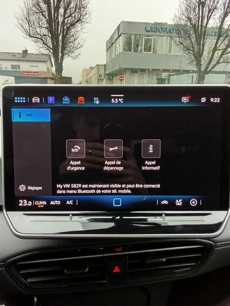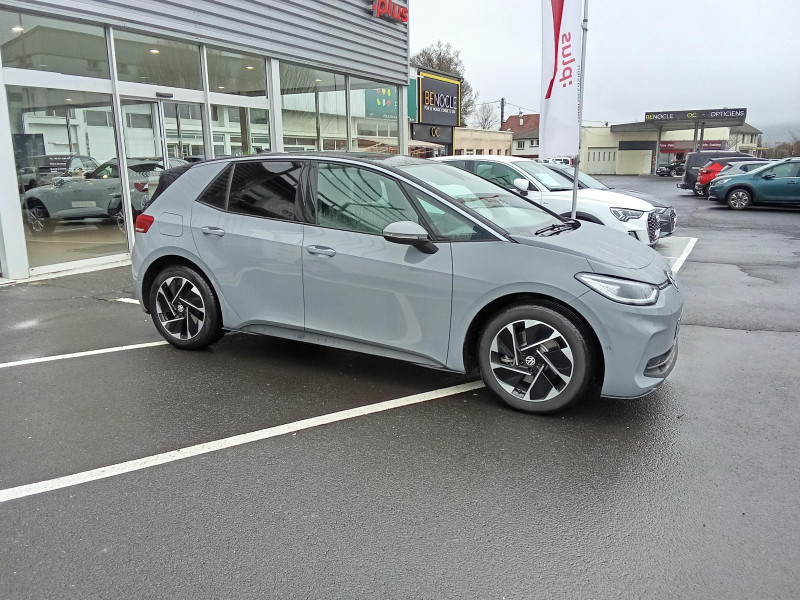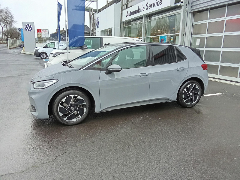 Activation automatique du signal de détresse en cas de freinage d'urgence / Allumage automatique des feux, capteurs de pluie avec essuie-glace automatique / Boîte de vitesse automatique à variation continue / Buses à dégivrage automatique à l'AV / Climatisation stationnaire permet de réfrigérer, de ventiler ou de chauffer l'habitacle du véhicule à l'arrêt. Elle permet également de dégivrer le pare-brise, de le désembuer et de le débarrasser d'une fine couche de neige en hiver. La climatisation stationnaire est alimentée par la prise de courant ou par la batterie haute tension du véhicule / Eclairage à LED de la plaque d'immatriculation AR / Frein de stationnement électromécanique avec fonction d'immobilisation en pente "Auto Hold" La fonction Auto Hold garantit une immobilisation du véhicule sans déplacement intempestif, la pédale de frein ne devant pour cela pas être maintenue actionnée / ID. Display de 5,3'' L'ID. Display est un combiné d'instruments numérique doté d'un afficheur couleur TFT à haute résolution. En plus du tachymètre numérique, il est possible d'afficher des informations supplémentaires provenant des systèmes d'aide à la conduite, par la sélection de divers profils d'information / Intervention de freinage automatique lors des manoevres / Jantes 18'' "East Derry" bicolore Argent Pneumatiques 215/55 R18 / Jantes 18'' "East Derry" bicolore Argent Pneumatiques 215/55 R18 / Pack Assistance Système d'ouverture et de fermeture sans cléà distance 'Keyless Access Advanced', Caméra de recul 'Rear View' située dans le logo Volkswagen, Intelligent Park Assist Plus : Système d'aide au stationnement AV et AR, Système proactif de protection des occupants - Pre Safe Assist, Alarme antivol - Protection volumétrique et anti-soulèvement, Éclairage des poignées de portes / Pack confort - Volant multifonction, chauffant, avec commande tactile et capacitif - Climatiseur 2-Zones 'Air Care Climatronic' avec filtre à charbon actif - Sièges AV chauffants - Système de navigation & infotainment Discover Pro avec Services de streaming et radio via Internet, fonction planificateur d'itinéraire - Interface téléphonique "Confort" avec fonction de chargement inductive / Pack Extérieur Projecteurs IQ. Light Matrix LED avec commutation automatique des feux de route, éclairage de mauvais temps et fonction de bienvenue, Régulation dynamique des feux de route "Dynamic Light Assist, Bande lumineuse entre les projecteurs et le logo, Feux AR à LED avec clignotants séquentiels, Vitres AR sur-teintées / Park Pilot - Aide au stationnement AV et AR / Rétroviseur intérieur à réglage jour/nuit automatique / Système d'aide à l'éco-conduite - Eco Assistance / Système d'appel d'urgence - eCall Appel d'urgence manuel ou automatique / Système de Freinage anti-multi collision Ce dispositif freine automatiquement le véhicule après un premier choc afin de limiter le risque de multicollision / Sélecteur de vitesse situéà droite derrière le volant avec frein de stationnement électronique Il dispose d'une marche AV (D/B), du neutre (N) et d'une marche AR (R). En position (D), la récupération d'énergie au freinage est en mode normal. En position (B), le système d'aide à l'éco-conduite est activé et la récupération d'énergie est plus élevée / 2 port USB-C à l'AV (recharge et data) et 2 à l'AR (recharge) / 7 Airbags Airbags frontaux AV conducteur et passager (Airbag passager désactivable par clé), Airbags latéraux à l'AV, airbags interactif à l'AV et avec airbags de tête AV/AR, Airbag central situé sur le côté droit du siège conducteur, permet la protection des chocs entre les occupants des sièges AV en cas de collision latérale ou de retournement / ACC: Régulateur de vitesse adaptatif avec limiteur de vitesse adapte la vitesse en fonction des limitations de vitesse détectées / Accoudoirs pour les sièges AV / App-Connect sans fil (en fonction du téléphone compatible) pour Apple CarPlay, Android Auto et Mirror Link (avec fil) / Avertissement de distance avec le véhicule précédent / Avertisseur sonore 1 ton / Avertisseur sonore et lumineux pour ceintures non attachées AV et AR / Banquette AR 2/3 1/3 avec accoudoir central et trappe de chargement (3 personnes) / Capacité de batterie nette - 59 kWh / Capacité de puissance de recharge maximale sur prise CCS : 165 kW DC / Capacité de puissance maximale du chargeur embarqué pour prise Type 2 : 11 kW AC / Car2X La fonction Car2X utilise les informations des autres véhicules présents dans un périmètre pouvant s'étendre jusqu'à 800 mètres, ainsi que les signaux des infrastructures de transport pour avertir le conducteur et transmettre ces avertissements à d'autres véhicules équipés de la fonction Car2X / Carrosserie bicolore - Toit et hayon noir / Clignotants confort : (1) touche = (3) clignotements / Commande vocale intuitive -"Bonjour ID." - Certaines fonctions peuvent être exécutées grâce à la commande vocale / Console centrale rétroéclairée avec rangements, volet occultant, 2 porte-gobelets / Contrôle de la traction (TCS) / Correcteur électronique de trajectoire ESP, Amplificateur de freinage d'urgence AFU, Servofrein électromécanique eBKV, Freinage mixte BKU, système d'antiblocage des roues ABS, blocage électronique de différentiel EDS,répartiteur électronique de freinage EBV,anti patinage électronique ASR, régulateur électronique de couple MSR et assistance au contre-braquage, Programme électronique de stabilisation ESC,Système agissant comme un différenti.autobloquant électronique permettant une meilleure motricité en courbe grâce à une répartition optimale de la puissance et du couple sur les roues AR XDS / Câble de recharge Mode 3 - Type 2 pour borne de recharge (32 A) / Direction électromécanique à assistance variable en fonction de la vitesse / Détection de fatigue Système de détection de fatigue du conducteur qui analys