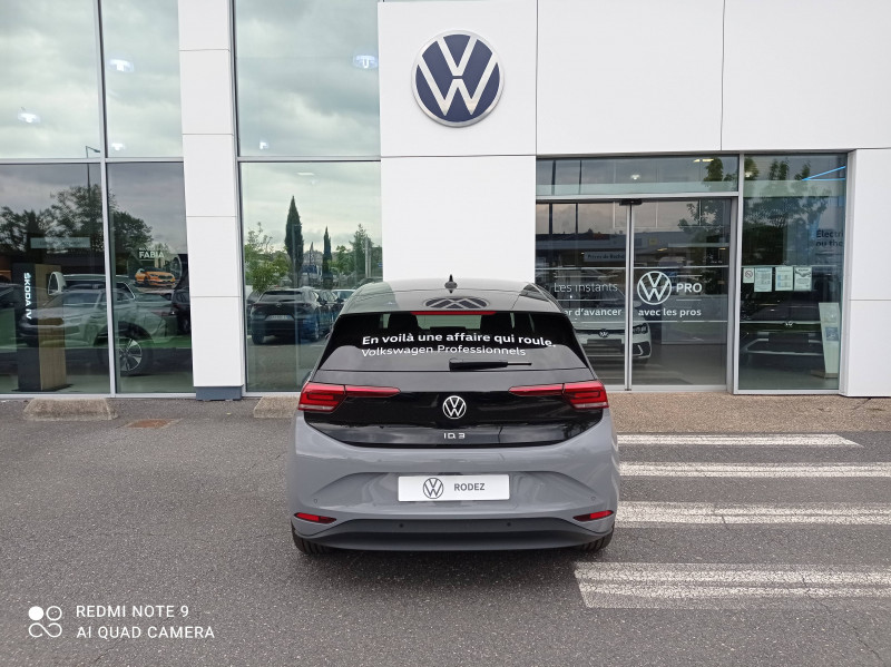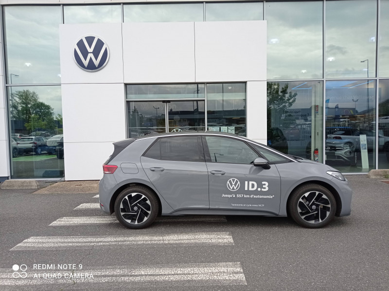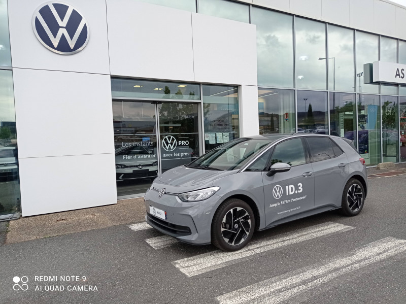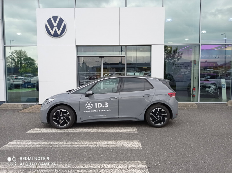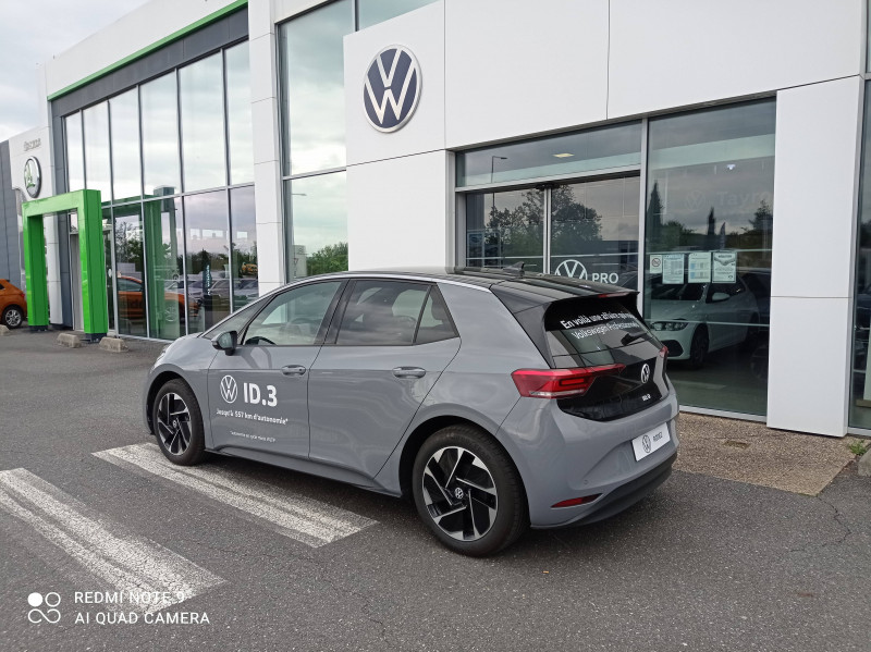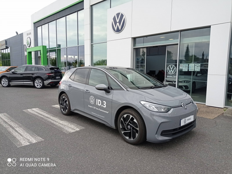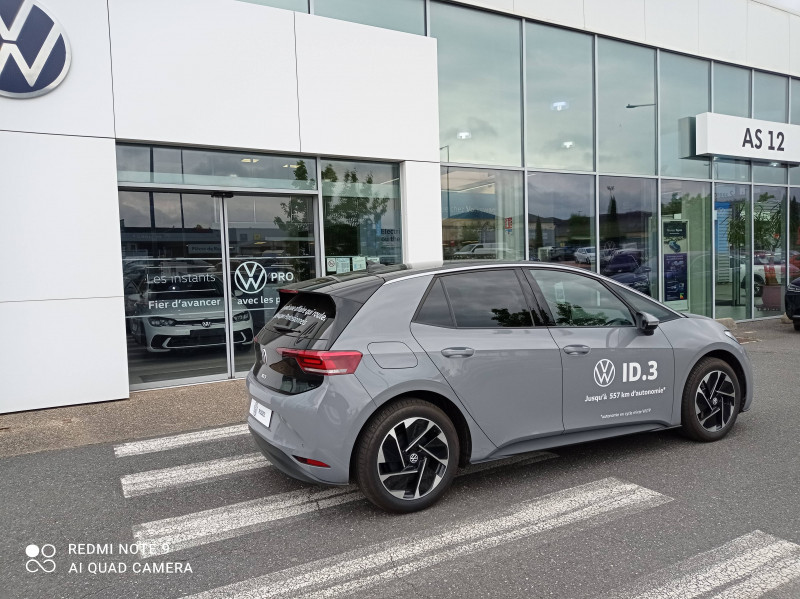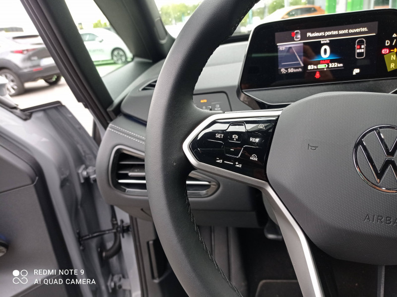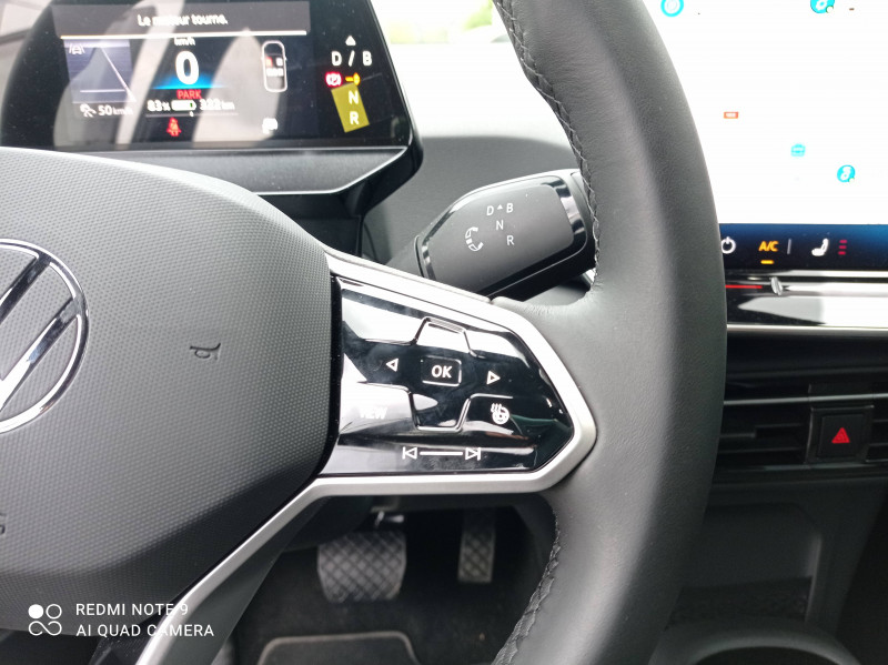 Activation automatique du signal de détresse en cas de freinage d'urgence / Allumage automatique des feux, capteurs de pluie avec essuie-glace automatique / Buses à dégivrage automatique à l'AV / Climatisation stationnaire permet de réfrigérer, de ventiler ou de chauffer l'habitacle du véhicule à l'arrêt. Elle permet également de dégivrer le pare-brise, de le désembuer et de le débarrasser d'une fine couche de neige en hiver. La climatisation stationnaire est alimentée par la prise de courant ou par la batterie haute tension du véhicule / Eclairage à LED de la plaque d'immatriculation AR / Frein de stationnement électromécanique avec fonction d'immobilisation en pente "Auto Hold" La fonction Auto Hold garantit une immobilisation du véhicule sans déplacement intempestif, la pédale de frein ne devant pour cela pas être maintenue actionnée / ID. Display de 5,3'' L'ID. Display est un combiné d'instruments numérique doté d'un afficheur couleur TFT à haute résolution. En plus du tachymètre numérique, il est possible d'afficher des informations supplémentaires provenant des systèmes d'aide à la conduite, par la sélection de divers profils d'information / Intervention de freinage automatique lors des manoevres / Jantes 18'' "East Derry" bicolore Argent Pneumatiques 215/55 R18 / Pack confort - Volant multifonction, chauffant, avec commande tactile et capacitif - Climatiseur 2-Zones 'Air Care Climatronic' avec filtre à charbon actif - Sièges AV chauffants - Système de navigation & infotainment Discover Pro avec Services de streaming et radio via Internet, fonction planificateur d'itinéraire - Interface téléphonique "Confort" avec fonction de chargement inductive / Park Pilot - Aide au stationnement AV et AR / Projecteurs LED et feux AR à LED / Préparation pour activation ultérieure de la Navigation via Upgrades / Rétroviseur intérieur à réglage jour/nuit automatique / Système d'aide à l'éco-conduite - Eco Assistance / Système d'appel d'urgence - eCall Appel d'urgence manuel ou automatique / Système de Freinage anti-multi collision Ce dispositif freine automatiquement le véhicule après un premier choc afin de limiter le risque de multicollision / Sélecteur de vitesse situéà droite derrière le volant avec frein de stationnement électronique Il dispose d'une marche AV (D/B), du neutre (N) et d'une marche AR (R). En position (D), la récupération d'énergie au freinage est en mode normal. En position (B), le système d'aide à l'éco-conduite est activé et la récupération d'énergie est plus élevée / 2 port USB-C à l'AV (recharge et data) et 2 à l'AR (recharge) / 7 Airbags Airbags frontaux AV conducteur et passager (Airbag passager désactivable par clé), Airbags latéraux à l'AV, airbags interactif à l'AV et avec airbags de tête AV/AR, Airbag central situé sur le côté droit du siège conducteur, permet la protection des chocs entre les occupants des sièges AV en cas de collision latérale ou de retournement / ACC: Régulateur de vitesse adaptatif avec limiteur de vitesse adapte la vitesse en fonction des limitations de vitesse détectées / Accoudoirs pour les sièges AV / App-Connect sans fil (en fonction du téléphone compatible) pour Apple CarPlay, Android Auto et Mirror Link (avec fil) / Avertissement de distance avec le véhicule précédent / Avertisseur sonore 1 ton / Avertisseur sonore et lumineux pour ceintures non attachées AV et AR / Banquette AR 3 places rabattable (2/3 - 1/3) avec trappe à skis / Caméra de recul "Rear View" située dans le logo Volkswagen / Capacité de batterie nette - 52 kWh / Capacité de puissance de recharge maximale sur prise CCS : 145 kW DC / Capacité de puissance maximale du chargeur embarqué pour prise Type 2 : 7,2 kW AC / Car2X La fonction Car2X utilise les informations des autres véhicules présents dans un périmètre pouvant s'étendre jusqu'à 800 mètres, ainsi que les signaux des infrastructures de transport pour avertir le conducteur et transmettre ces avertissements à d'autres véhicules équipés de la fonction Car2X / Carrosserie bicolore - Toit et hayon noir / Clignotants confort : (1) touche = (3) clignotements / Commande vocale intuitive -"Bonjour ID." - Certaines fonctions peuvent être exécutées grâce à la commande vocale / Console centrale rétroéclairée avec rangements, volet occultant, 2 porte-gobelets / Correcteur électronique de trajectoire ESP, Amplificateur de freinage d'urgence AFU, Servofrein électromécanique eBKV, Freinage mixte BKU, système d'antiblocage des roues ABS, blocage électronique de différentiel EDS,répartiteur électronique de freinage EBV,anti patinage électronique ASR, régulateur électronique de couple MSR et assistance au contre-braquage, Programme électronique de stabilisation ESC,Système agissant comme un différenti.autobloquant électronique permettant une meilleure motricité en courbe grâce à une répartition optimale de la puissance et du couple sur les roues AR XDS / Câble de recharge Mode 3 - Type 2 pour borne de recharge (32 A) / Direction électromécanique à assistance variable en fonction de la vitesse / Détection de fatigue Système de détection de fatigue du conducteur qui analyse le comportement du conducteur et recommande un temps de repos par l'apparition d'un message visuel et sonore / E-sound - son spécifique ID L'e-Sound est un bruit électronique de moteur signalant l'approche de véhicules électriques aux autres usagers de la route. Plus le véhicule roule vite, plus le volume sonore de l'e-Sound diminue lentement / Eclairage d'ambiance personnalisable (10 couleurs) / Eclairage des poignées de portes avec éclairage de bienvenue 'Welcome Light' / Ecran central tactile de 12,9'' personnalisable / Freins à disques à l'AV et freins à tambours à l' AR / Front Assist - Système de surveillance périmétrique avec fonctions de freinage d'urgence en ville et détection des piétons / Gestion de