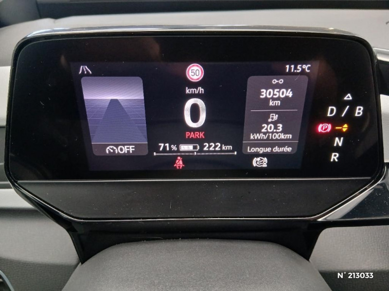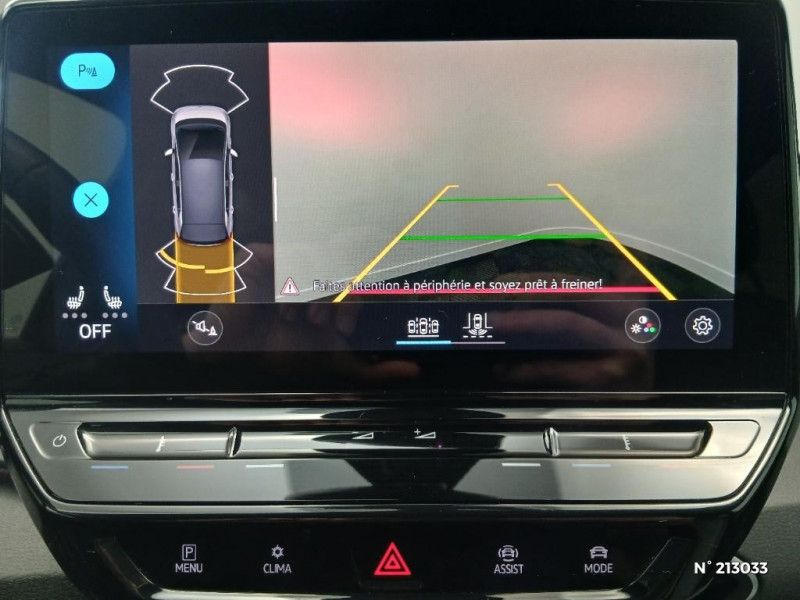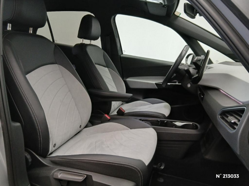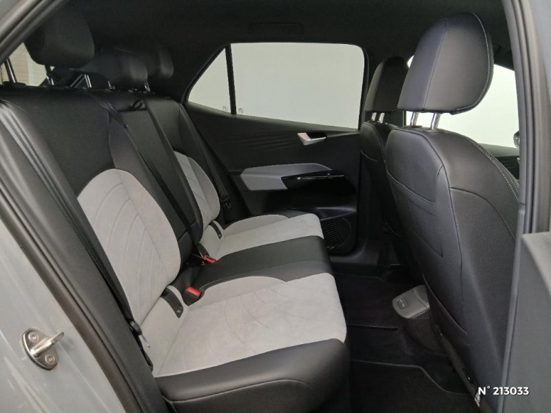 Jantes en alliage 18 "East Derry" / Système de Navigation & Infotainment Discover Pro avec écran central tactile de 10'' personnalisable / Système de Navigation & Infotainment "Discover Pro" avec "Services de streaming et radio via Internet" / Système de récupération d'énergie au freinage et à la décélération / Système de refroidissement liquide / Système de son 4+1 HP AV / Système d'ouverture et de fermeture sans cléà discance Keyless Access Advanced / Système d'ouverture et de fermeture sans clé dans un périmètre de détection Keyless Access Advanced / Système proactif de protection des occupants - Pre Safe Assist / Tableau de bord personnalisable (3 coloris) / Tapis de sol AV/AR / Turn Assist : Freinage d'urgence d'intersection - Le freinage d'urgence au braquage peut empêcher votre véhicule d'entrer en collision avec un véhicule arrivant en sens inverse lorsque vous changez de direction / Verrouillage centralisé avec télécommande à fréquence radio / Vitres AV/AR électriques avec dispositif anti-pincement / Volant capacitif multifonction et chauffant / Volant multifonction à réglage mécanique en hauteur et en longueur / Volant multifonction, chauffant et capacitif / Volant multifonction en cuir, chauffant et capacitif permet de vérifier que le conducteur a les mains sur le volant. / 2 port USB-C à l'AV (recharge et data) et 2 à l'AR (recharge) / ACC : Le Régulateur de vitesse adaptatif avec limiteur de vitesse (ACC) / ACC : Régulateur de vitesse adaptatif et prédictif (avec limiteur de vitesse) / Accoudoirs pour les sièges AV / Activation automatique des feux de détresse lors d'un freinage d'urgence / Activation automatique du signal de détresse en cas de freinage d'urgence / Alarme antivol - Protection volumétrique et anti-soulévement / App-Connect sans fil - affichage et contrôle via l¿écran tactile de la voiture, du contenu, des fonctions et des applications compatibles présents sur le Smartphone (compatibilité avec les systèmes Apple CarPlay, Apple CarPlay sans fil, Android Auto, MirrorLink) / Appui-tête réglables en hauteur sur les sièges AV et AR / Avertissement de distance avec le véhicule précédent / Avertisseur sonore et lumineux pour ceintures non attachées AV/AR / Avertisseur sonore 1 ton / Banquette AR 2/3 1/3 avec accoudoir central et trappe à skis (3 personnes) / Boîte à gants verrouillable et éclairée / Buses à dégivrage automatique à l'AV / Câble de recharge domestique 8 A / Câble de recharge domestique 8 A / Câble de recharge Mode 3 - Type 2 pour borne de recharge (32A) / Caméra de recul "Rear View" située dans le logo Volkswagen sur le hayon / Capacité de puissance de recharge maximale sur prise CCS : 165 kW DC / Capacité de puissance maximale du chargeur embarqué pour prise Type 2 : 7,2 kW AC / Carrosserie bicolore - Toit et hayon noir / Car2X / Chargeur embarqué pour prise Type 2 : 11 kW AC / Clignotants confort (1 impulsion = 3 clignotements) / Climatiseur 1-Zone "Air Care Climatronic" avec mode recyclage de l'air ambiant / Climatiseur 1-Zone "Climatronic" avec mode recyclage de l'air ambiant / Commande vocale intuitive / Commande vocale intuitive avec ID.Light / Commande vocale intuitive -"Bonjour ID." - Certaines fonctions peuvent être exécutées grâce à la commande vocale / Console centrale rétro éclairée avec volet occultant et 2 porte-gobelets / Console centrale rétroéclairée avec rangements, volet occultant, 2 porte-gobelets / Correcteur électronique de trajectoire ESP, Amplificateur de freinage d'urgence AFU, Servofrein électromécanique eBKV, Freinage mixte BKU, système d'antiblocage des roues ABS, blocage électronique de différentiel EDS, répartiteur électronique de freinage EBV, antipatinage électronique ASR, régulateur électronique de couple MSR, assistance au contrebraquage, Programme électronique de stabilisation ESC, Système agissant comme un différentiel autobloquant électronique permettant meilleure motricité en courbe grâce à la répartition optimale de la puissance et du couple sur les roues AR XDS / Détection de fatigue / Direction électromécanique à assistance variable en fonction de la vitesse / 2 ports USB-C à l'AV (data et recharge) et 2 ports USB-C à l'AR (recharge uniquement) / 2 ports USB-C à l'AV (recharge et data) / 7 Airbags - Airbags frontaux AV conducteur et passager (Airbag passager désactivable par clé) - Airbags latéraux AV, airbags interactif à l'AV et avec airbags de tête AV/AR - Airbag central situé sur le côté droit du siège conducteur, permet la protection des chocs entre les occupants des sièges AV en cas de collision latérale ou de retournement / Eclairage à LED de la plaque d'immatriculation AR / Eclairage d'ambiance personnalisable (30 couleurs) / Eclairage de bienvenue (Welcome Light) / Eclairage des poignées de portes / Ecran central tactile de 10'' personnalisable / E-sound - son spécifique ID / Extension de garantie 1 an / max 30 000 km / Frein de stationnement électromécanique avec fonction d'immobilisation en pente Auto-Hold / Freins à disque à l'AV / Freins à tambour à l' AR / Front Assist - Système de surveillance périmétrique avec fonctions de freinage d'urgence en ville et détection des piétons. L¿assistance au freinage d¿urgence autonome (Front Assist) peut détecter des collisions frontales imminentes et avertir avant qu¿elles ne surviennent. De plus, le système peut fournir au conducteur une assistance pendant le freinage et la manoeuvre d¿évitement de l¿obstacle, et freiner le véhicule de façon automatique. / Galerie porte-bagages / Gestion des paramètres de confidentialité liés à la eSIM et à We Connect / ID. Display de 5,3" / ID.Light / Indicateur de température extérieure avec avertisseur de gel / Dispositif électronique de démarrage sans clé "Keyless-Go": Démarrage possible avec une simple pression sur la pédale de frein / Intelligent Park Assist Systè