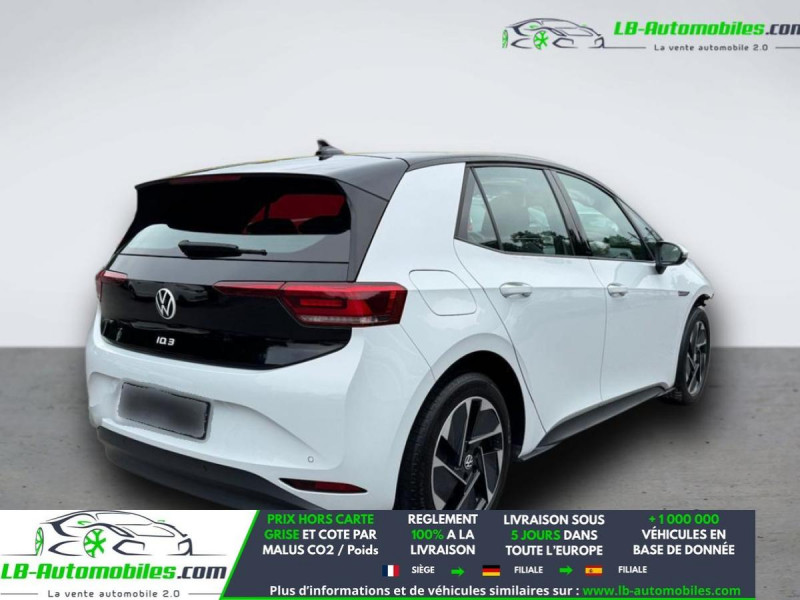 Référence : 1150420 Vos Avantages chez LB-AUTOMOBILES.com / Prix affiché TTC Livré hors carte grise / Livraison sous 10 jours dans toute la France hors 31 / Pas d?avance de frais paiement du véhicule 100% à la livraison par virement. Volkswagen ID. 3 Neuf remisée, Volkswagen ID. 3 Occasion Toulouse Beaupuy 31850, Volkswagen ID. 3 Véhicule sorti de réseau collaborateur, Volkswagen ID. 3 import, Volkswagen ID. 3 importateur, Volkswagen ID. 3 Livraison possible dans toute la France sous 5 jours, Volkswagen ID. 3, Volkswagen ID. 3 Location Option Achat, Volkswagen ID. 3 LLD, Volkswagen ID. 3 Longue Durée, Volkswagen ID. 3 TVA récupérable. Possibilité d'extension de garantie 12, 24,36 mois, Pour tout autres voitures import neufs ou occasions collaborateur fortement remisée, Mandataire Audi, Mandataire BMW, Mandataire Volkswagen, Mandataire Mercedes, Mandataire Peugeot Espagne, Mandataire Renault Espagne, Porsche import, Mandataire Citroën Espagne, Mandataire Seat Espagne, n'hésitez pas à nous contacter. « Sous réserve de vente préalable et erreur de saisie » Principaux équipements : - ABS - Accoudoir - Android Auto - Antidémarrage - Apple CarPlay - Assistance au freinage d'urgence - Assistance de démarrage en côte - Assistant d'angle mort - Assistant feux de route - Avertisseur de franchissement de ligne - Bluetooth - Capteur de lumière - Capteur de pluie - Carnet d'entretien - Chargement par induction pour smartphones - Cockpit numérique - Commande vocale - Contrôle de la pression des pneus - Direction assistée - Éclairage adaptatif de virage - Éclairage d'ambiance - Éclairage route non éblouissant - Écran tactile - ESP - Fermeture centralisée - Feux de jour LED - GPS - Isofix - Jantes alliage - Kit mains libres - Lecteur CD - Ordinateur de bord - Package hiver - Phares LED - Port USB - Radio DAB - Régulateur de vitesse adaptatif - Rétroviseur extérieur électrique - Rétroviseur intérieur anti-éblouissement automatique - Sièges chauffants - Système antipatinage - Système d'appel d'urgence - Système d'avertissement de la distance - Système de détection de la fatigue - Système de limitation de la vitesse - Système de reconnaissance des panneaux de signalisation - Système de sonorisation - Système Stop & Start - Verrouillage centralisé sans clé - Vitre chauffante - Vitres électriques - Volant chauffant - Volant en cuir - Volant multifonction