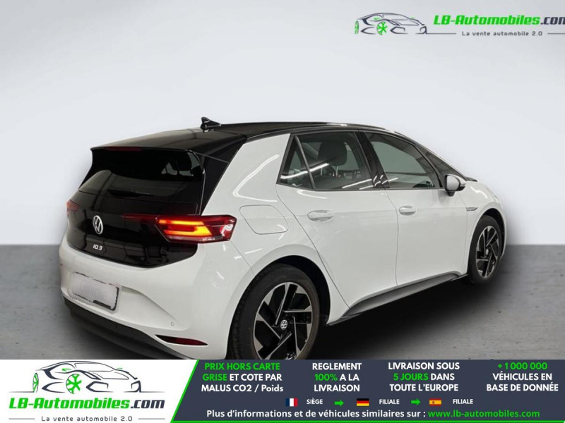 Référence : 1167996 Vos Avantages chez LB-AUTOMOBILES.com / Prix affiché TTC Livré hors carte grise / Livraison sous 10 jours dans toute la France hors 31 / Pas d?avance de frais paiement du véhicule 100% à la livraison par virement. Volkswagen ID. 3 Neuf remisée, Volkswagen ID. 3 Occasion Toulouse Beaupuy 31850, Volkswagen ID. 3 Véhicule sorti de réseau collaborateur, Volkswagen ID. 3 import, Volkswagen ID. 3 importateur, Volkswagen ID. 3 Livraison possible dans toute la France sous 5 jours, Volkswagen ID. 3, Volkswagen ID. 3 Location Option Achat, Volkswagen ID. 3 LLD, Volkswagen ID. 3 Longue Durée, Volkswagen ID. 3 TVA récupérable. Possibilité d'extension de garantie 12, 24,36 mois, Pour tout autres voitures import neufs ou occasions collaborateur fortement remisée, Mandataire Audi, Mandataire BMW, Mandataire Volkswagen, Mandataire Mercedes, Mandataire Peugeot Espagne, Mandataire Renault Espagne, Porsche import, Mandataire Citroën Espagne, Mandataire Seat Espagne, n'hésitez pas à nous contacter. « Sous réserve de vente préalable et erreur de saisie » Principaux équipements : - ABS - Accoudoir - Android Auto - Antidémarrage - Apple CarPlay - Assistance au freinage d'urgence - Avertisseur de franchissement de ligne - Bluetooth - Capteur de lumière - Carnet d'entretien - Certificat de batterie - Chargement par induction pour smartphones - Commande vocale - Contrôle de la pression des pneus - Direction assistée - Éclairage d'ambiance - Écran tactile - ESP - Fermeture centralisée - Feux de jour LED - Garantie - GPS - Isofix - Jantes alliage - Kit mains libres - Ordinateur de bord - Phares LED - Pneus été - Point Isofix siège passager - Port USB - Propulsion - Radio DAB - Rétroviseur extérieur électrique - Streaming musical intégré - Système antipatinage - Système d'appel d'urgence - Système d'avertissement de la distance - Système de détection de la fatigue - Système de limitation de la vitesse - Système de reconnaissance des panneaux de signalisation - Tuner/radio - Véhicule non-fumeur - Vitres électriques - Volant multifonction