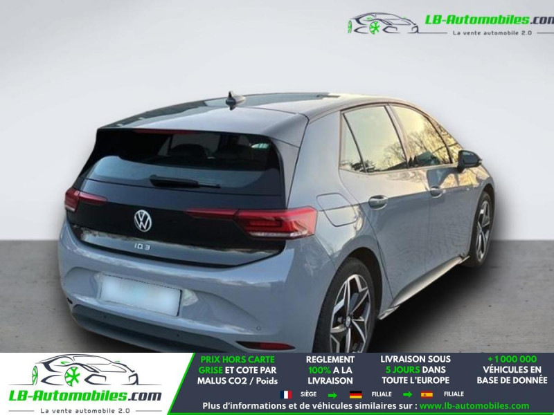 Référence : 1168003 Vos Avantages chez LB-AUTOMOBILES.com / Prix affiché TTC Livré hors carte grise / Livraison sous 10 jours dans toute la France hors 31 / Pas d?avance de frais paiement du véhicule 100% à la livraison par virement. Volkswagen ID. 3 Neuf remisée, Volkswagen ID. 3 Occasion Toulouse Beaupuy 31850, Volkswagen ID. 3 Véhicule sorti de réseau collaborateur, Volkswagen ID. 3 import, Volkswagen ID. 3 importateur, Volkswagen ID. 3 Livraison possible dans toute la France sous 5 jours, Volkswagen ID. 3, Volkswagen ID. 3 Location Option Achat, Volkswagen ID. 3 LLD, Volkswagen ID. 3 Longue Durée, Volkswagen ID. 3 TVA récupérable. Possibilité d'extension de garantie 12, 24,36 mois, Pour tout autres voitures import neufs ou occasions collaborateur fortement remisée, Mandataire Audi, Mandataire BMW, Mandataire Volkswagen, Mandataire Mercedes, Mandataire Peugeot Espagne, Mandataire Renault Espagne, Porsche import, Mandataire Citroën Espagne, Mandataire Seat Espagne, n'hésitez pas à nous contacter. « Sous réserve de vente préalable et erreur de saisie » Principaux équipements : - ABS - Accoudoir - Android Auto - Antidémarrage - Apple CarPlay - Assistance au freinage d'urgence - Avertisseur de franchissement de ligne - Bluetooth - Capteur de lumière - Capteur de pluie - Chargement par induction pour smartphones - Cockpit numérique - Commande vocale - Contrôle de la pression des pneus - Direction assistée - Éclairage d'ambiance - Écran tactile - ESP - Feux de jour LED - GPS - Isofix - Jantes alliage - Kit de réparation d'urgence des pneus - Kit mains libres - Ordinateur de bord - Phares LED - Pneus toutes saisons - Point Isofix siège passager - Port USB - Propulsion - Radio DAB - Régulateur de vitesse adaptatif - Rétroviseur extérieur électrique - Rétroviseur intérieur anti-éblouissement automatique - Rétroviseurs extérieurs rabattables électriquement - Sièges chauffants - Système antipatinage - Système d'appel d'urgence - Système d'avertissement de la distance - Système de détection de la fatigue - Système de limitation de la vitesse - Système de reconnaissance des panneaux de signalisation - Tuner/radio - Vitres électriques - Volant chauffant - Volant en cuir - Volant multifonction