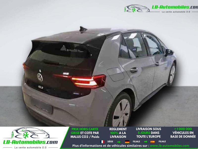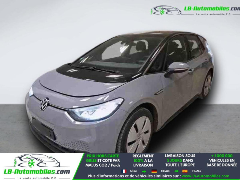 Référence : 1167968 Vos Avantages chez LB-AUTOMOBILES.com / Prix affiché TTC Livré hors carte grise / Livraison sous 10 jours dans toute la France hors 31 / Pas d?avance de frais paiement du véhicule 100% à la livraison par virement. Volkswagen ID. 3 Neuf remisée, Volkswagen ID. 3 Occasion Toulouse Beaupuy 31850, Volkswagen ID. 3 Véhicule sorti de réseau collaborateur, Volkswagen ID. 3 import, Volkswagen ID. 3 importateur, Volkswagen ID. 3 Livraison possible dans toute la France sous 5 jours, Volkswagen ID. 3, Volkswagen ID. 3 Location Option Achat, Volkswagen ID. 3 LLD, Volkswagen ID. 3 Longue Durée, Volkswagen ID. 3 TVA récupérable. Possibilité d'extension de garantie 12, 24,36 mois, Pour tout autres voitures import neufs ou occasions collaborateur fortement remisée, Mandataire Audi, Mandataire BMW, Mandataire Volkswagen, Mandataire Mercedes, Mandataire Peugeot Espagne, Mandataire Renault Espagne, Porsche import, Mandataire Citroën Espagne, Mandataire Seat Espagne, n'hésitez pas à nous contacter. « Sous réserve de vente préalable et erreur de saisie » Principaux équipements : - ABS - Accoudoir - Android Auto - Antidémarrage - Apple CarPlay - Assistance au freinage d'urgence - Assistance de démarrage en côte - Avertisseur de franchissement de ligne - Bluetooth - Capteur de lumière - Capteur de pluie - Carnet d'entretien - Commande vocale - Contrôle de la pression des pneus - Direction assistée - Éclairage d'ambiance - Écran tactile - ESP - Fermeture centralisée - Feux de jour LED - Garantie - GPS - Isofix - Kit de réparation d'urgence des pneus - Kit mains libres - Ordinateur de bord - Phares LED - Pneus été - Point Isofix siège passager - Port USB - Propulsion - Radio DAB - Rétroviseur extérieur électrique - Rétroviseur intérieur anti-éblouissement automatique - Système antipatinage - Système de détection de la fatigue - Système de limitation de la vitesse - Système de reconnaissance des panneaux de signalisation - Véhicule non-fumeur - Vitres électriques - Volant multifonction