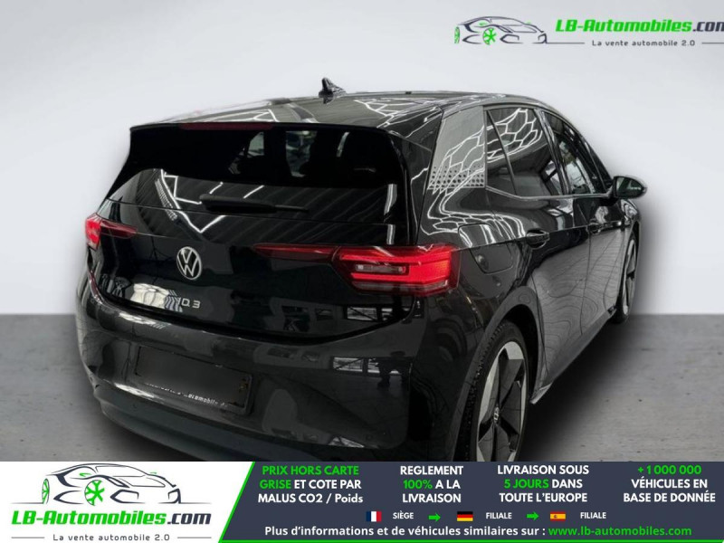 Référence : 1176491 Vos Avantages chez LB-AUTOMOBILES.com / Prix affiché TTC Livré hors carte grise / Livraison sous 10 jours dans toute la France hors 31 / Pas d?avance de frais paiement du véhicule 100% à la livraison par virement. Volkswagen ID. 3 Neuf remisée, Volkswagen ID. 3 Occasion Toulouse Beaupuy 31850, Volkswagen ID. 3 Véhicule sorti de réseau collaborateur, Volkswagen ID. 3 import, Volkswagen ID. 3 importateur, Volkswagen ID. 3 Livraison possible dans toute la France sous 5 jours, Volkswagen ID. 3, Volkswagen ID. 3 Location Option Achat, Volkswagen ID. 3 LLD, Volkswagen ID. 3 Longue Durée, Volkswagen ID. 3 TVA récupérable. Possibilité d'extension de garantie 12, 24,36 mois, Pour tout autres voitures import neufs ou occasions collaborateur fortement remisée, Mandataire Audi, Mandataire BMW, Mandataire Volkswagen, Mandataire Mercedes, Mandataire Peugeot Espagne, Mandataire Renault Espagne, Porsche import, Mandataire Citroën Espagne, Mandataire Seat Espagne, n'hésitez pas à nous contacter. « Sous réserve de vente préalable et erreur de saisie » Principaux équipements : - ABS - Accoudoir - Affichage tête haute - Android Auto - Antidémarrage - Apple CarPlay - Assistance au freinage d'urgence - Assistant d'angle mort - Assistant feux de route - Avertisseur de franchissement de ligne - Bluetooth - Capteur de lumière - Capteur de pluie - Carnet d'entretien - Cockpit numérique - Commande vocale - Contrôle de la pression des pneus - Direction assistée - Éclairage adaptatif de virage - Éclairage d'ambiance - Écran tactile - ESP - Fermeture centralisée - Feux de jour LED - Garantie - GPS - Isofix - Jantes alliage - Kit de réparation d'urgence des pneus - Kit mains libres - Ordinateur de bord - Phares LED - Pneus toutes saisons - Pompe à chaleur - Port USB - Propulsion - Radio DAB - Régulateur de vitesse adaptatif - Rétroviseur extérieur électrique - Rétroviseur intérieur anti-éblouissement automatique - Rétroviseurs extérieurs rabattables électriquement - Sièges chauffants - Sièges massants - Streaming musical intégré - Support lombaire - Système d'alarme - Système d'appel d'urgence - Système de détection de la fatigue - Système de limitation de la vitesse - Système de reconnaissance des panneaux de signalisation - Toit ouvrant - Toit panoramique - Véhicule non-fumeur - Verrouillage centralisé sans clé - Vitres électriques - Vitres teintées - Volant chauffant - Volant en cuir - Volant multifonction