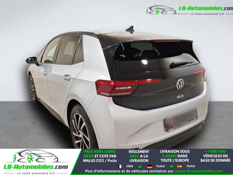 Référence : 1195384 Vos Avantages chez LB-AUTOMOBILES.com / Prix affiché TTC Livré hors carte grise / Livraison sous 10 jours dans toute la France hors 31 / Pas d?avance de frais paiement du véhicule 100% à la livraison par virement. Volkswagen ID. 3 Neuf remisée, Volkswagen ID. 3 Occasion Toulouse Beaupuy 31850, Volkswagen ID. 3 Véhicule sorti de réseau collaborateur, Volkswagen ID. 3 import, Volkswagen ID. 3 importateur, Volkswagen ID. 3 Livraison possible dans toute la France sous 5 jours, Volkswagen ID. 3, Volkswagen ID. 3 Location Option Achat, Volkswagen ID. 3 LLD, Volkswagen ID. 3 Longue Durée, Volkswagen ID. 3 TVA récupérable. Possibilité d'extension de garantie 12, 24,36 mois, Pour tout autres voitures import neufs ou occasions collaborateur fortement remisée, Mandataire Audi, Mandataire BMW, Mandataire Volkswagen, Mandataire Mercedes, Mandataire Peugeot Espagne, Mandataire Renault Espagne, Porsche import, Mandataire Citroën Espagne, Mandataire Seat Espagne, n'hésitez pas à nous contacter. « Sous réserve de vente préalable et erreur de saisie » Principaux équipements : - ABS - Accoudoir - Android Auto - Antidémarrage - Apple CarPlay - Assistance au freinage d'urgence - Assistant feux de route - Avertisseur de franchissement de ligne - Bluetooth - Capteur de pluie - Certificat de batterie - Chargement par induction pour smartphones - Cockpit numérique - Commande vocale - Contrôle de la pression des pneus - Direction assistée - Éclairage d'ambiance - Éclairage route non éblouissant - Écran tactile - ESP - Fermeture centralisée - GPS - Isofix - Jantes alliage - Kit mains libres - Phares LED - Pneus toutes saisons - Point Isofix siège passager - Port USB - Propulsion - Radio DAB - Régulateur de vitesse adaptatif - Rétroviseur extérieur électrique - Rétroviseur intérieur anti-éblouissement automatique - Rétroviseurs extérieurs rabattables électriquement - Sièges chauffants - Streaming musical intégré - Système antipatinage - Système d'alarme - Système d'appel d'urgence - Système de détection de la fatigue - Système de limitation de la vitesse - Tuner/radio - Verrouillage centralisé sans clé - Vitres électriques - Vitres teintées - Volant en cuir - Volant multifonction