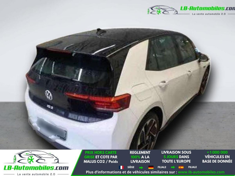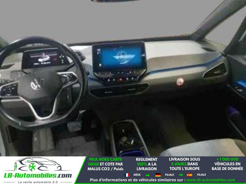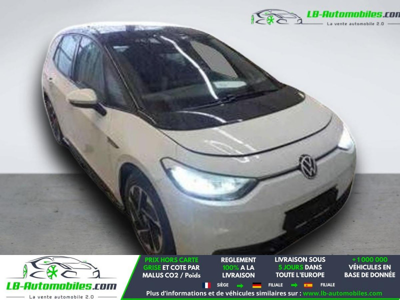 Référence : 1202683 Vos Avantages chez LB-AUTOMOBILES.com / Prix affiché TTC Livré hors carte grise / Livraison sous 10 jours dans toute la France hors 31 / Pas d?avance de frais paiement du véhicule 100% à la livraison par virement. Volkswagen ID. 3 Neuf remisée, Volkswagen ID. 3 Occasion Toulouse Beaupuy 31850, Volkswagen ID. 3 Véhicule sorti de réseau collaborateur, Volkswagen ID. 3 import, Volkswagen ID. 3 importateur, Volkswagen ID. 3 Livraison possible dans toute la France sous 5 jours, Volkswagen ID. 3, Volkswagen ID. 3 Location Option Achat, Volkswagen ID. 3 LLD, Volkswagen ID. 3 Longue Durée, Volkswagen ID. 3 TVA récupérable. Possibilité d'extension de garantie 12, 24,36 mois, Pour tout autres voitures import neufs ou occasions collaborateur fortement remisée, Mandataire Audi, Mandataire BMW, Mandataire Volkswagen, Mandataire Mercedes, Mandataire Peugeot Espagne, Mandataire Renault Espagne, Porsche import, Mandataire Citroën Espagne, Mandataire Seat Espagne, n'hésitez pas à nous contacter. « Sous réserve de vente préalable et erreur de saisie » Principaux équipements : - ABS - Accoudoir - Android Auto - Antidémarrage - Apple CarPlay - Assistance au freinage d'urgence - Assistance de démarrage en côte - Avertisseur de franchissement de ligne - Bluetooth - Capteur de lumière - Capteur de pluie - Carnet d'entretien - Chargement par induction pour smartphones - Cockpit numérique - Commande vocale - Contrôle de la pression des pneus - Direction assistée - Éclairage d'ambiance - Écran tactile - ESP - Fermeture centralisée - Feux de jour LED - Garantie - GPS - Grille de protection pour coffre - Isofix - Jantes alliage - Kit de réparation d'urgence des pneus - Kit mains libres - Ordinateur de bord - Phares LED - Pneus été - Point Isofix siège passager - Pompe à chaleur - Port USB - Propulsion - Radio DAB - Régulateur de vitesse adaptatif - Rétroviseur extérieur électrique - Rétroviseur intérieur anti-éblouissement automatique - Rétroviseurs extérieurs rabattables électriquement - Sièges chauffants - Streaming musical intégré - Système antipatinage - Système d'appel d'urgence - Système d'avertissement de la distance - Système de détection de la fatigue - Système de limitation de la vitesse - Système de reconnaissance des panneaux de signalisation - Système Stop & Start - Tuner/radio - Véhicule non-fumeur - Vitres électriques - Vitres teintées - Volant chauffant - Volant en cuir - Volant multifonction