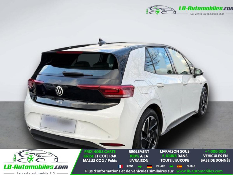 Référence : 1202676 Vos Avantages chez LB-AUTOMOBILES.com / Prix affiché TTC Livré hors carte grise / Livraison sous 10 jours dans toute la France hors 31 / Pas d?avance de frais paiement du véhicule 100% à la livraison par virement. Volkswagen ID. 3 Neuf remisée, Volkswagen ID. 3 Occasion Toulouse Beaupuy 31850, Volkswagen ID. 3 Véhicule sorti de réseau collaborateur, Volkswagen ID. 3 import, Volkswagen ID. 3 importateur, Volkswagen ID. 3 Livraison possible dans toute la France sous 5 jours, Volkswagen ID. 3, Volkswagen ID. 3 Location Option Achat, Volkswagen ID. 3 LLD, Volkswagen ID. 3 Longue Durée, Volkswagen ID. 3 TVA récupérable. Possibilité d'extension de garantie 12, 24,36 mois, Pour tout autres voitures import neufs ou occasions collaborateur fortement remisée, Mandataire Audi, Mandataire BMW, Mandataire Volkswagen, Mandataire Mercedes, Mandataire Peugeot Espagne, Mandataire Renault Espagne, Porsche import, Mandataire Citroën Espagne, Mandataire Seat Espagne, n'hésitez pas à nous contacter. « Sous réserve de vente préalable et erreur de saisie » Principaux équipements : - ABS - Accoudoir - Antidémarrage - Assistant de vision nocturne - Avertisseur de franchissement de ligne - Bluetooth - Capteur de pluie - Cockpit numérique - Commande vocale - Direction assistée - Éclairage d'ambiance - Écran tactile - ESP - Fermeture centralisée - Feux de jour LED - Garantie - GPS - Isofix - Jantes alliage - Kit mains libres - Ordinateur de bord - Phares LED - Pneus été - Pompe à chaleur - Port USB - Propulsion - Radio DAB - Régulateur de vitesse adaptatif - Rétroviseur latéral virtuel - Sièges chauffants - Système antipatinage - Système d'appel d'urgence - Système d'avertissement de la distance - Système de limitation de la vitesse - Système de nettoyage des phares - Système de reconnaissance des panneaux de signalisation - Système Stop & Start - Vitres électriques - Volant en cuir - Volant multifonction