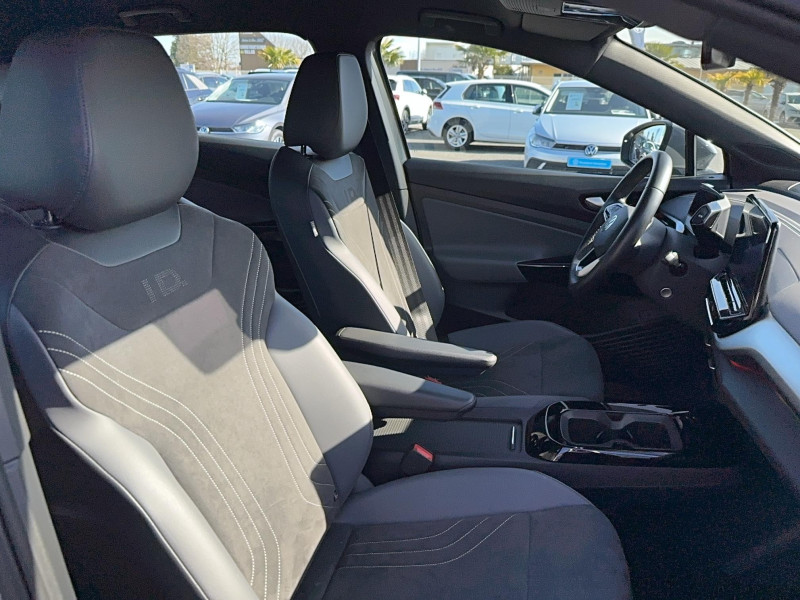 Activation automatique du signal de détresse en cas de freinage d'urgence / Ceintures de sécurité automatiques AV 3 points à enrouleur avec prétensionneurs et AR 3 points à enrouleur / Eclairage à LED de la plaque d'immatriculation AR / Frein de stationnement électromécanique avec fonction d'immobilisation "Auto-Hold" / Front Assist - Système de surveillance périmétrique avec fonctions de freinage d'urgence en ville et détection des piétons. L?assistance au freinage d?urgence autonome (Front Assist) peut détecter des collisions frontales imminentes et avertir avant qu?elles ne surviennent. De plus, le système peut fournir au conducteur une assistance pendant le freinage et la manoeuvre d?évitement de l?obstacle, et freiner le véhicule de façon automatique. / Intervention de freinage automatique lors des manoeuvres: L'intervention de freinage automatique d'un système de stationnement est utilisée pour réduire le risque de collision si un obstacle est détecté pendant le processus de stationnement / Jantes en alliage 8J x 19" Hamar bi-colore argent/noir, pneumatiques 235/55 R19 à l'AV et 255/50 R19 à l'AR avec écrous antivol / Mode "Battery Care": Préserve la batterie et accroître sa longévité. Si le mode "Battery Care" est activé, la limite supérieure de charge est fixée à 80%. Le mode "Battery Care" paramètre le niveau de recharge cible automatique réglé sur 80% / Park Pilot: Système d'aide au stationnement AV/AR avec signaux sonores et visualisation de la distance des obstacles sur l'écran / Projecteurs LED et feux AR à LED / Sign Assist - Système de détection de la signalisation routière Le système de détection de la signalisation routière détecte les panneaux de signalisation standard à l'aide d'une caméra située dans le pied du rétroviseur intérieur et vous informe des limitations de vitesse, interdictions de dépasser et panneaux de danger identifiés / Système d'aide à l'éco-conduite - Eco Assistance / Système de Freinage anti-multi collision Ce dispositif freine automatiquement le véhicule après un premier choc afin de limiter le risque de multi collision / Sélecteur de vitesse derrière le volant avec la touche de frein de stationnement électronique / 2 ports USB-C à l'AV (recharge et data) / ACC : Le Régulateur de vitesse adaptatif et prédictif avec limiteur de vitesse (ACC) adapte la vitesse en fonction des limitations de vitesse detectées et du parcours / Accoudoir pour les sièges AV / App-Connect sans fil (en fonction du téléphone compatible) pour Apple CarPlay, Android Auto et Mirror Link (avec fil). / Appui-tête réglables en hauteur sur les sièges AV et AR / Avertissement de distance avec le véhicule précédent / Avertisseur sonore 1 ton / Avertisseur sonore et lumineux pour ceintures non attachées AV/AR / Banquette AR 2/3 1/3 avec accoudoir central et trappe à skis (3 personnes) / Car2X / Chargeur embarqué pour prise Type 2 : 11 kW AC / Clignotants confort (1 impulsion = 3 clignotements) / Commande vocale intuitive -"Bonjour ID." - Certaines fonctions peuvent être exécutées grâce à la commande vocale / Correcteur électronique de trajectoire ESP, Amplificateur de freinage d'urgence AFU, Servofrein électromécanique eBKV, Freinage mixte BKU, système d'antiblocage des roues ABS, blocage électronique de différentiel EDS, répartiteur électronique de freinage EBV, antipatinage électronique ASR, régulateur électronique de couple MSR, assistance au contrebraquage, Programme électronique de stabilisation ESC,Système agissant comme un différentiel autobloquant électronique permettant une meilleure motricité en courbe grâce à une répartition optimale de la puissance et du couple sur les roues AR XDS / Câble de recharge Mode 3 - Type 2 pour borne de recharge (32A) / Direction électromécanique à assistance variable en fonction de la vitesse / Dispositif électronique de démarrage sans clé "Keyless-Go": Démarrage possible avec une simple pression sur la pédale de frein / Détection de fatigue / E-sound - son spécifique ID / Eclairage d'ambiance personnalisable (30 couleurs) / Ecran central tactile de 10'' personnalisable / Freins à disques AV et freins à tambours AR / Gestion des paramètres de confidentialité liés à la eSIM et à We Connect / ID. Display de 5,3" / ID.Light / Indicateur de température extérieure avec avertisseur de gel / Lampes de lecture tactiles avec réglage manuel de l'intensité lumineuse / Lane Assist - Assistant au maintien dans la voie avec correction de trajectoire / Oeillets d'arrimage ISOFIX (dispositif pour fixation de 2 sièges-enfants sur la banquette AR) / Pare-soleils AV avec miroir de courtoisie éclairé / Portes AR avec sécurité enfants / Prise 12 V dans le coffre / Pédalier en acier inoxydable avec symboles "Play & Pause" / Revêtement du tableau de bord et des portes soft-touch / Réglage des phares tactile / Réglages de la charge via le système d?infodivertissement ou l'application We Connect ID / Services connectés "We Connect ID." 36 mois / Sièges AV réglables manuellement en profondeur et inclinables / Système d'appel d'urgence - eCall Système d'appel de dépannage et Système d'appel informatif / Système de refroidissement liquide / Système de récupération d'énergie au freinage et à la décélération / Système de son 6+1 HP / Tableau de bord personnalisable (2 coloris) / Tapis de sol AV/AR / Turn Assist : Freinage d'urgence d'intersection - Le freinage d'urgence au braquage peut empêcher votre véhicule d'entrer en collision avec un véhicule arrivant en sens inverse lorsque vous changez de direction / Verrouillage centralisé avec télécommande à fréquence radio / Vitres AV/AR électriques avec dispositif anti-pincement / Volant capacitif multifonction noir avec préparation pour volant chauffant via Upgrades / Volant multifonction à réglage mécanique en hauteur et en longueur