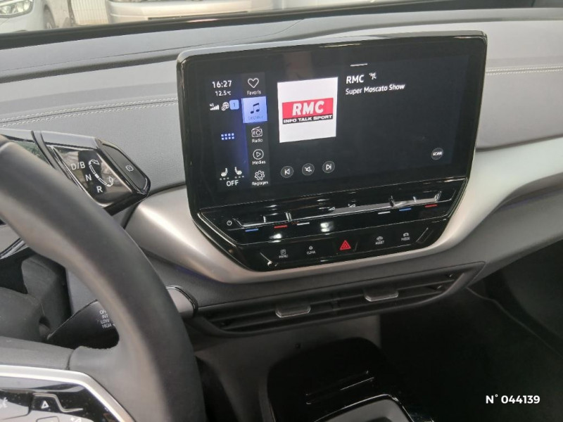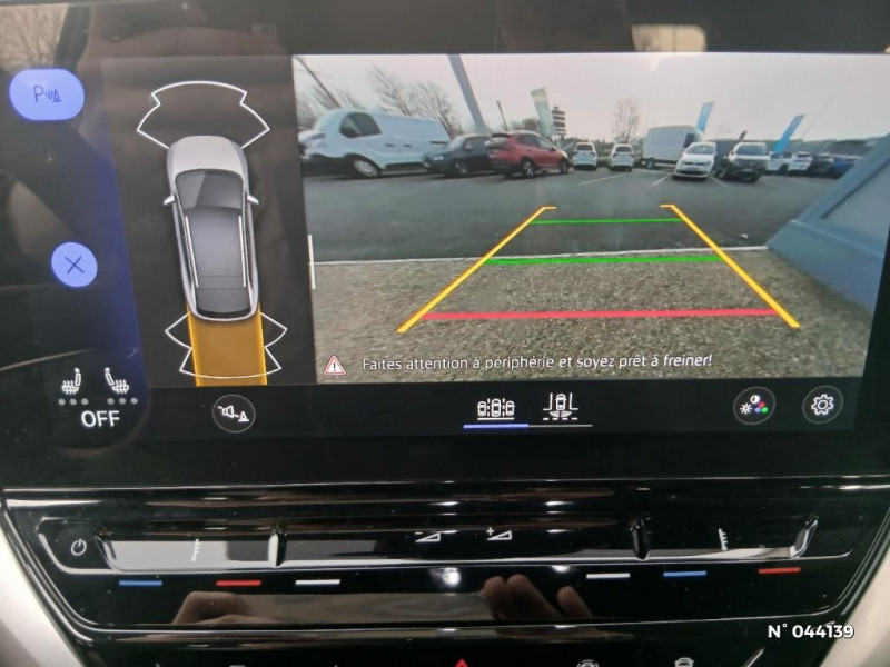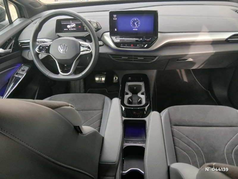 Banquette AR 2/3 1/3 avec accoudoir central et trappe à skis (3 personnes) / Boîte à gants verrouillable et éclairée / Câble de recharge Mode 2 - Type 2 (8A) pour prise domestique / Câble de recharge Mode 3 - Type 2 pour borne de recharge (32A) / Carrosserie unie et rampes de pavillon noires / Car2X / Car2X La fonction Car2X utilise les informations des autres véhicules présents dans un périmètre pouvant s'étendre jusqu'à 800 mètres, ainsi que les signaux des infrastructures de transport pour avertir le conducteur et transmettre ces avertissements à d'autres véhicules équipés de la fonction Car2X / Ceintures de sécurité automatiques AV 3 points à enrouleur avec prétensionneurs et AR 3 points à enrouleur / Chargeur embarqué pour prise Type 2 : 11 kW AC / Clignotants confort (1 impulsion = 3 clignotements) / Climatisation stationnaire: permet de réfrigérer, de ventiler ou de chauffer l'habitacle du véhicule à l'arrêt. Elle permet également de dégivrer le pare-brise, de le désembuer et de le débarrasser d'une fine couche de neige en hiver. La climatisation stationnaire est alimentée par la prise de courant ou par la batterie haute tension du véhicule / Commande vocale intuitive -"Bonjour ID." - Certaines fonctions peuvent être exécutées grâce à la commande vocale / Correcteur électronique de trajectoire ESP, Amplificateur de freinage d'urgence AFU, Servofrein électromécanique eBKV, Freinage mixte BKU, système d'antiblocage des roues ABS, blocage électronique de différentiel EDS, répartiteur électronique de freinage EBV, antipatinage électronique ASR, régulateur électronique de couple MSR, assistance au contrebraquage, Programme électronique de stabilisation ESC,Système agissant comme un différentiel autobloquant électronique permettant une meilleure motricité en courbe grâce à une répartition optimale de la puissance et du couple sur les roues AR XDS / Détection de fatigue / Direction électromécanique à assistance variable en fonction de la vitesse / Dispositif électronique de démarrage sans clé "Keyless-Go": Démarrage possible avec une simple pression sur la pédale de frein / Eclairage à LED de la plaque d'immatriculation AR / Eclairage d'ambiance personnalisable (30 couleurs) / Eclairage de bienvenue projeté au sol / Ecran central tactile de 10'' personnalisable / E-sound - son spécifique ID / E-sound - son spécifique ID: L'e-Sound est un bruit électronique de moteur signalant l'approche de véhicules électriques aux autres usagers de la route. Plus le véhicule roule vite, plus le volume sonore de l'e-Sound diminue lentement / Frein de stationnement électromécanique avec fonction d'immobilisation "Auto-Hold" / Freins à disques AV et freins à tambours AR / ACC : Le Régulateur de vitesse adaptatif et prédictif avec limiteur de vitesse (ACC) adapte la vitesse en fonction des limitations de vitesse detectées et du parcours / Accoudoir pour les sièges AV / Activation automatique du signal de détresse en cas de freinage d'urgence / App-Connect sans fil (en fonction du téléphone compatible) pour Apple CarPlay, Android Auto et Mirror Link (avec fil). / Appui-tête réglables en hauteur sur les sièges AV et AR / ID. Display de 5,3" / Front Assist - Système de surveillance périmétrique avec fonctions de freinage d'urgence en ville et détection des piétons. L¿assistance au freinage d¿urgence autonome (Front Assist) peut détecter des collisions frontales imminentes et avertir avant qu¿elles ne surviennent. De plus, le système peut fournir au conducteur une assistance pendant le freinage et la manoeuvre d¿évitement de l¿obstacle, et freiner le véhicule de façon automatique. / Gestion des paramètres de confidentialité liés à la eSIM et à We Connect / ID. Display de 5,3'': L'ID. Display est un combiné d'instruments numérique doté d'un afficheur couleur TFT à haute résolution. En plus du tachymètre numérique, il est possible d'afficher des informations supplémentaires provenant des systèmes d'aide à la conduite, par la sélection de divers profils d'information / ID.Light / ID.Light: L'ID. Light est un concept d'éclairage intelligent qui vous fournit des informations complémentaires sur l'état du véhicule et sur la situation de conduite / Indicateur de température extérieure avec avertisseur de gel / Intérieur Style Gris Platinium avec habillage et volant Noir avec sellerie en ArtVelours et similicuir, tableau de bord personnalisable, revêtement du tableau de bord et des portes soft-touch, éclairage d¿ambiance personnalisable, pédalier en acier inoxydable avec symboles Play et Pause, banquette AR 3 places rabattable (2/3 - 1/3) avec trappe à skis, sièges AV réglables en hauteur / Intervention de freinage automatique lors des manoeuvres: L'intervention de freinage automatique d'un système de stationnement est utilisée pour réduire le risque de collision si un obstacle est détecté pendant le processus de stationnement / Jantes en alliage 8J x 19" Hamar bi-colore argent/noir, pneumatiques 235/55 R19 à l'AV et 255/50 R19 à l'AR avec écrous antivol / Lampes de lecture tactiles avec réglage manuel de l'intensité lumineuse / Lane Assist - Assistant au maintien dans la voie avec correction de trajectoire / Mode "Battery Care": Préserve la batterie et accroître sa longévité. Si le mode "Battery Care" est activé, la limite supérieure de charge est fixée à 80%. Le mode "Battery Care" paramètre le niveau de recharge cible automatique réglé sur 80% / Mode "Battery Care" Préserver la batterie et accroitre sa longévité. Si le mode "Battery Care" est activé, la limite supérieure de charge est fixée à 80%. Le mode "Battery Care" paramètre le niveau de recharge cible automatique réglé sur 80% / Oeillets d'arrimage ISOFIX (dispositif pour fixation de 2 sièges-enfants sur la banquette AR) / Pack Assistance / Pack Assistance / Pack Infotainment / Pack Visibilité /